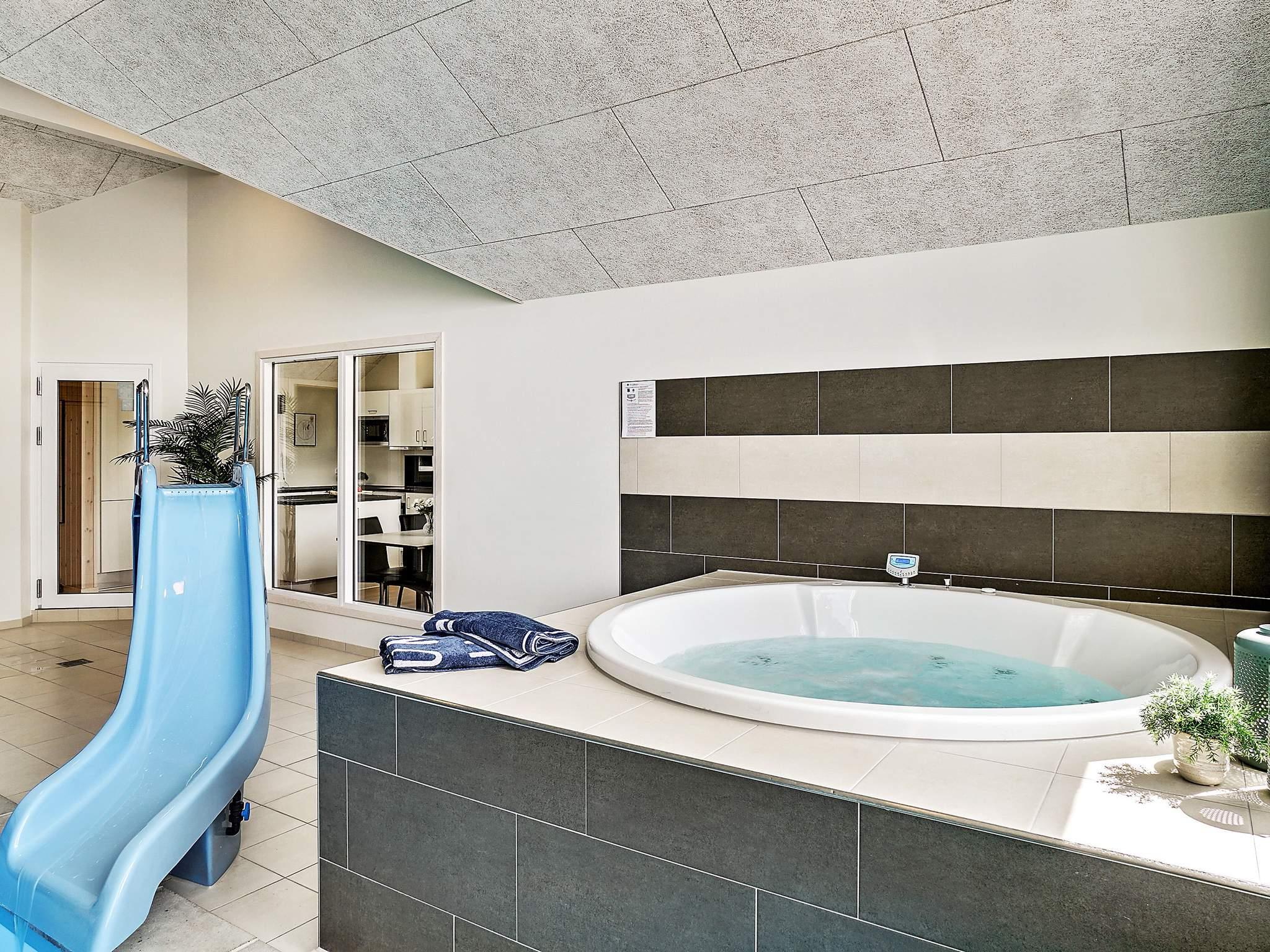 Velindrettet sommerhus ved Vejby Strand med stor poolafdeling med stor swimmingpool med vandrutschebane og svømmetræner, sauna, bruseniche og spabad med plads til 4-6 personer. Efter en god og oplevelsesrig dag er det skønt at lade sig glide ned i husets store spabad eller lade sig varme igennem i husets sauna.