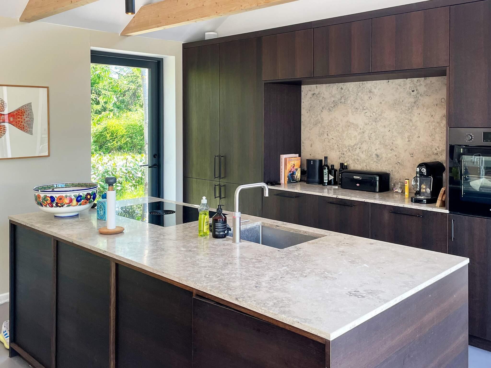 Køkken: Ovn, køle-frys, mikroovn, induktionskomfur, kaffemaskine, opvaskemask.