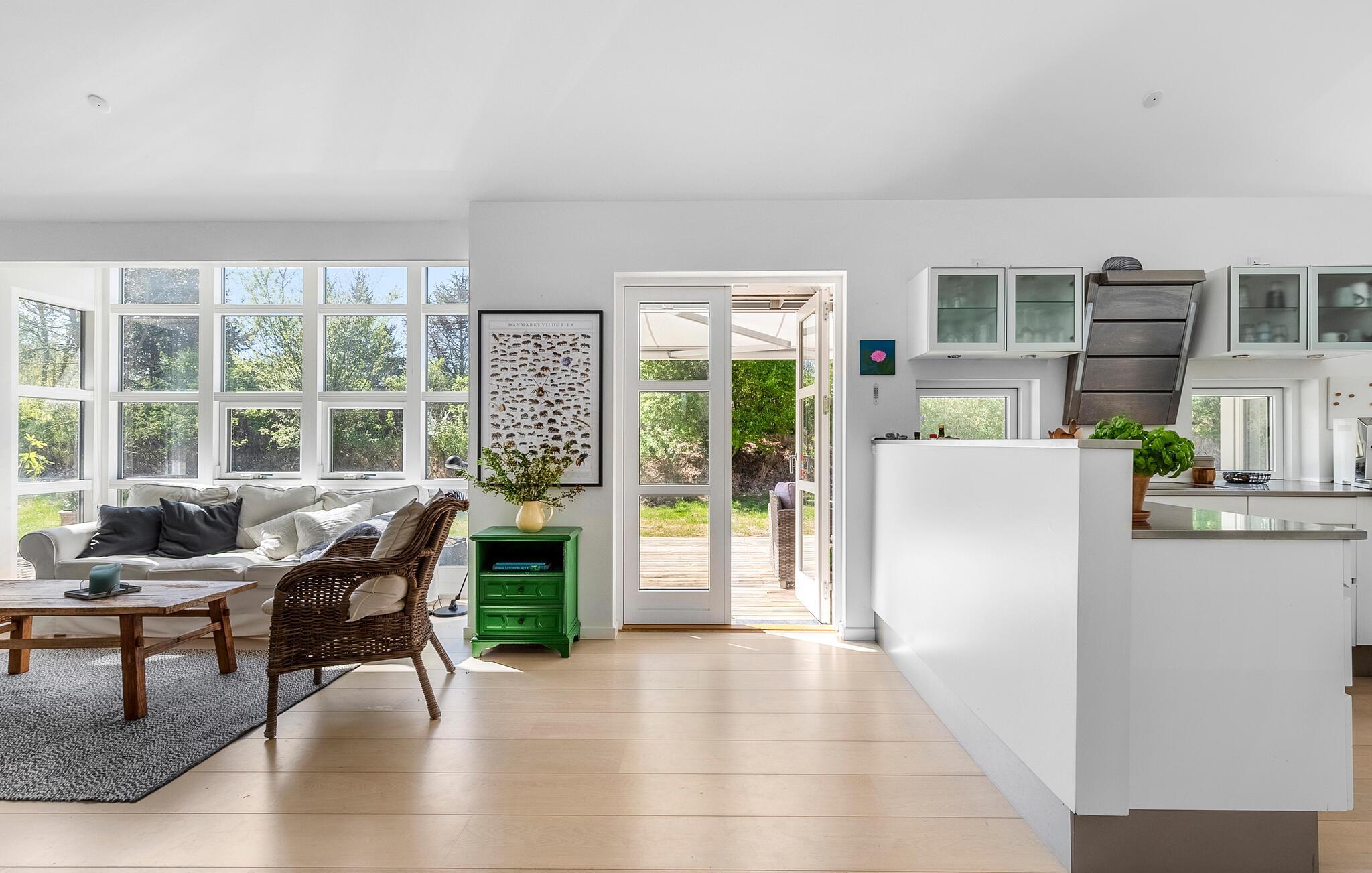 Begynd dagene med at tilberede en afslappet morgenmad i det åbne køkken, og nyd stilheden i de tidlige timer. Den lyse opholdsstue med dens venlige indretning lægger op til at tilbringe sociale stunder på de komfortable sofaer. Læs en fængslende bog, eller brug tid sammen med familien ved at spille et spil bræt- eller kortspil. Grundplanet sikrer, at to familier kan have hver sin ende af huset med fællesarealer I midten. På kølige dage giver byder brændeovnen på hyggelig varme og giver rummet en særlig hyggelig atmosfære. Slap af i saunaen, så tit I har lyst.