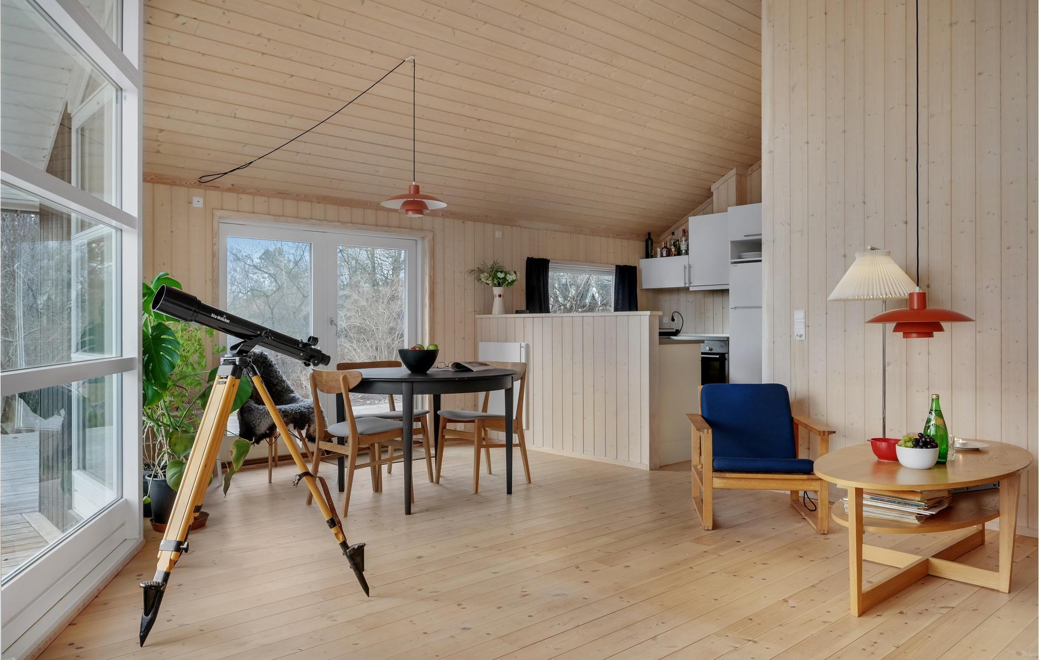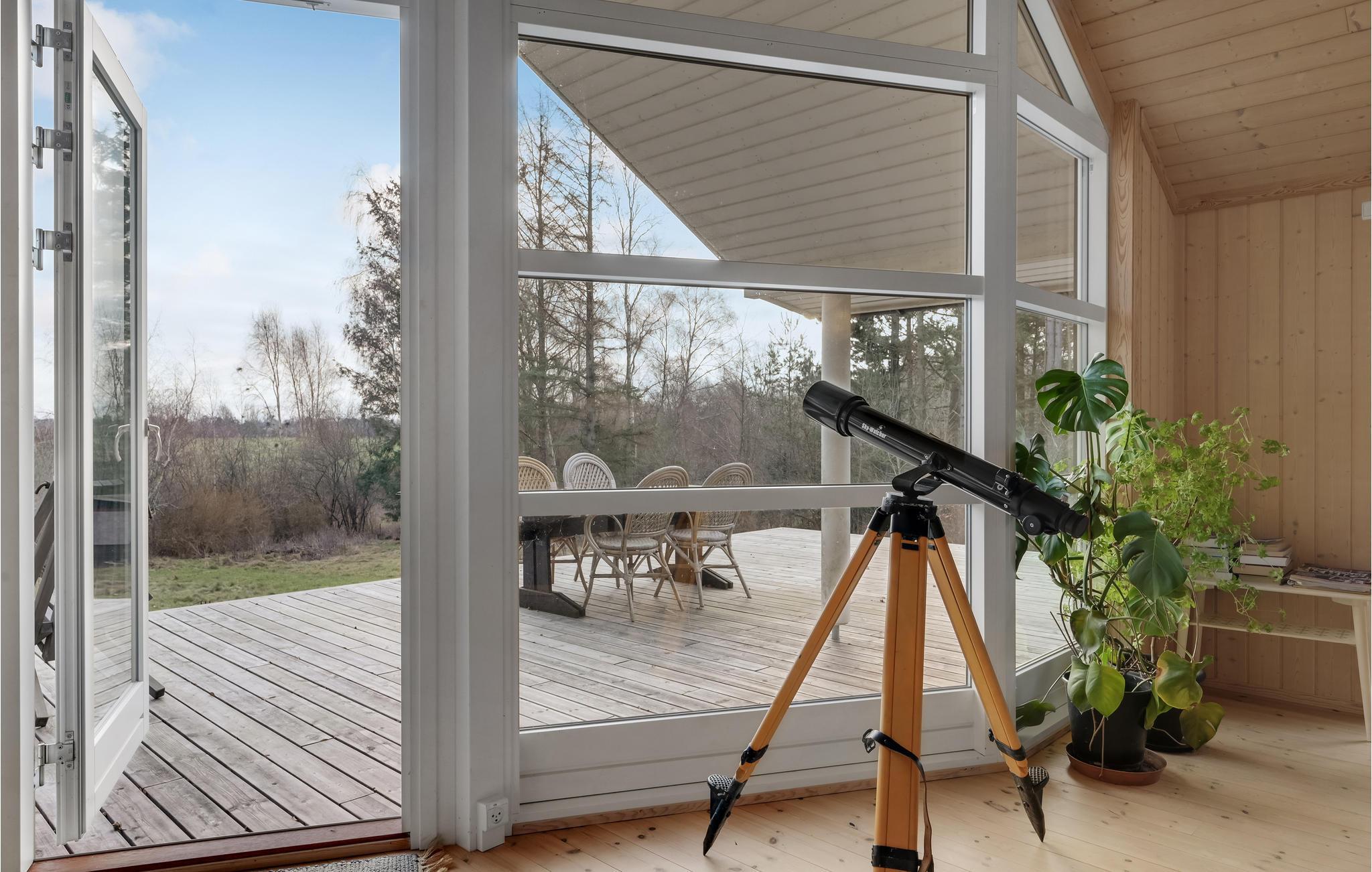 Dette hyggelige feriehus byder velkommen med udsigt over landskabet. Føl jer godt tilpas her med jeres kære og tag en pause fra jeres hektiske hverdag. I huset finder I alt hvad I behøver for at føle jer hjemme og slappe af lige fra starten. Hyg jer i sofaen på kølige dage med en god bog og en knitrende ild i brændeovnen. Tilbered jeres yndlingsretter på grillen på de lune sommerdage og nyd middagen på jeres terrasse med en fantastisk udsigt over landskabet. Terrassen er i åbent plan, hvilket giver jer et dejligt sted til fuglekiggeri eller stjernekiggeri om natten.