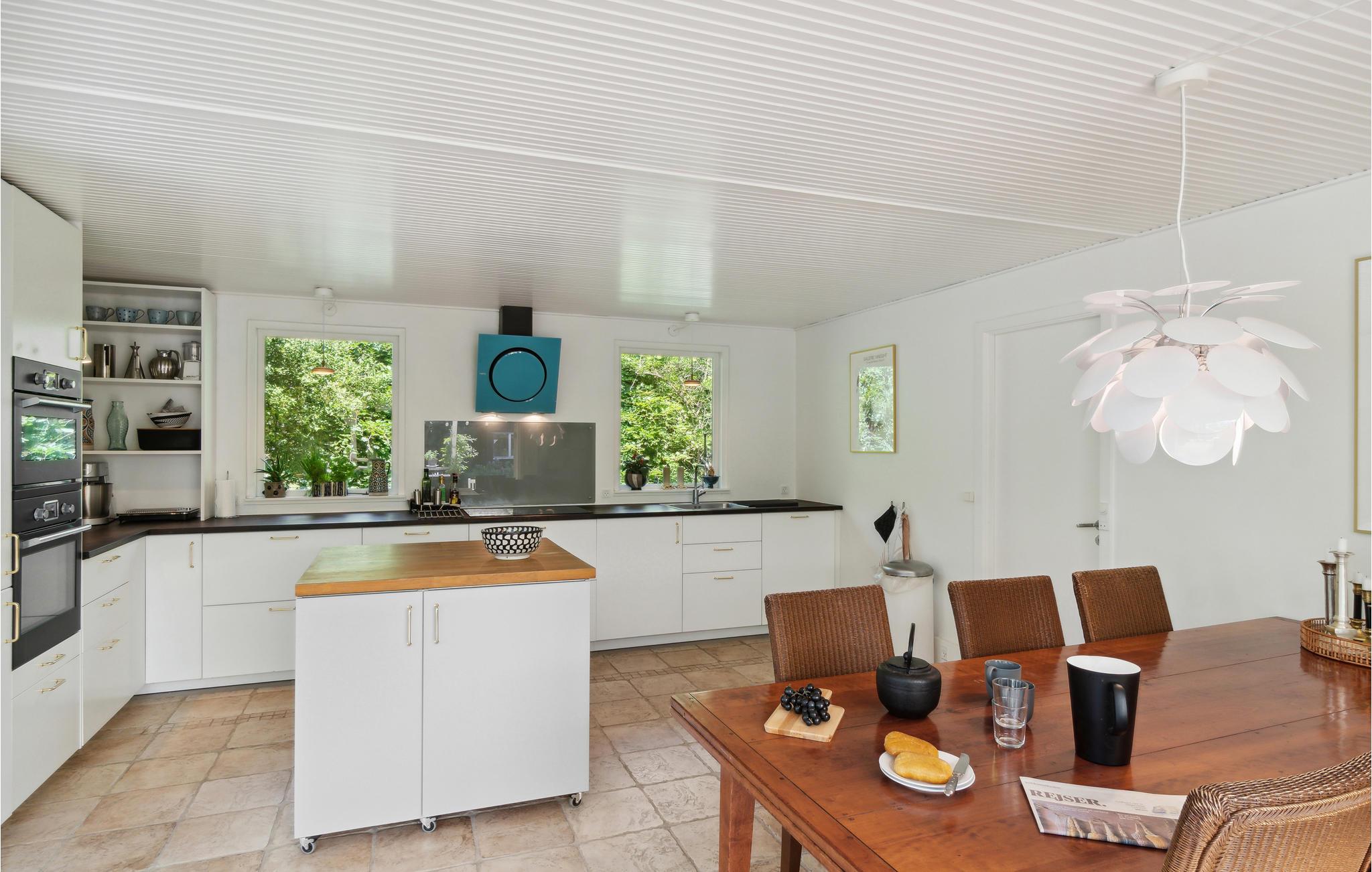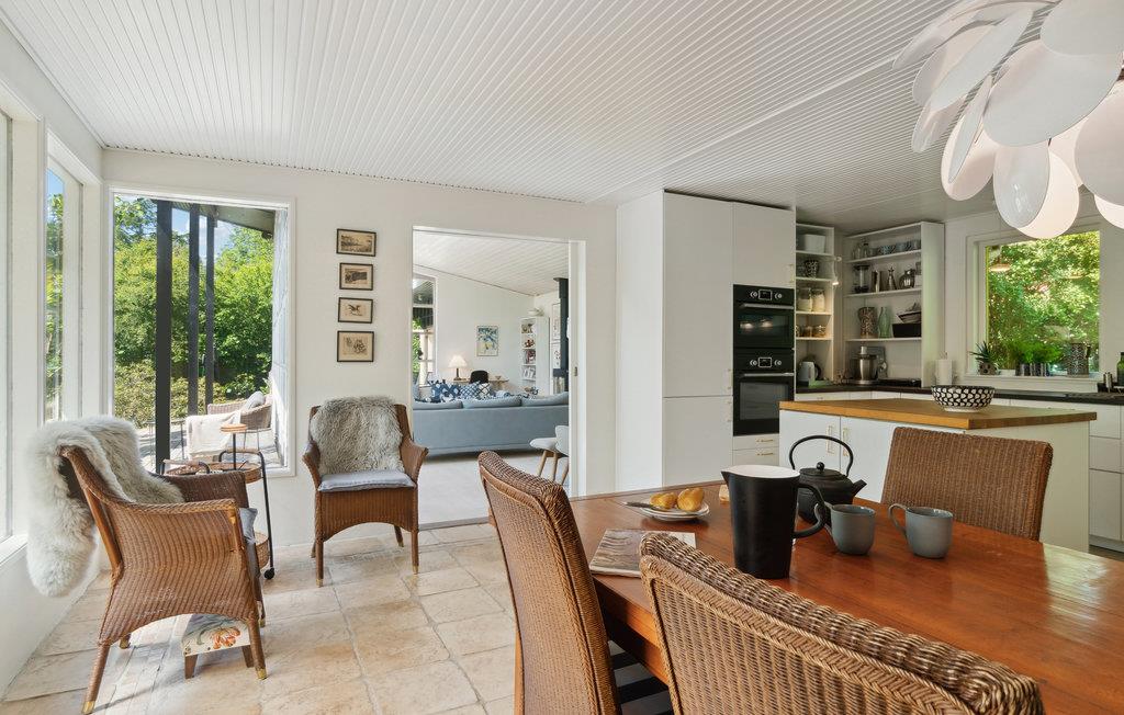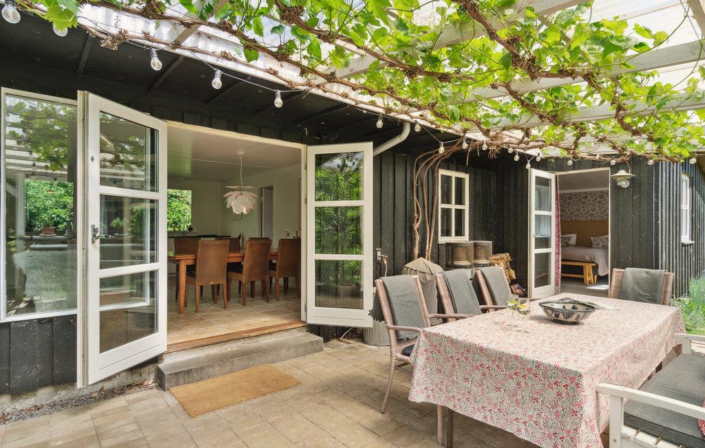 Træd ind i huset og mærk skuldrene sænke sig. Her får I en eksklusiv oase som udgangspunkt for en vidunderlig ferie ved havet. Det smukke feriehus er kendetegnet ved sine unikke vinduer og sit fortryllende lysindfald. De store panoramavinduespartier i stuen og køkkenet får jer til at føle, at I er i haven. Forestil jer en aften med en nærmest magisk solnedgang helt tæt på! Oplev det smagfulde hus med et stort køkken, der indbyder til at tilbringe aftenerne med at lave mad sammen. Tilbered lækkerier på grillen, tænd lyskæden på den overdækkede terrasse og nyd en stemningsfuld familiemiddag under vinrankerne. Naturgrunden er frodig og er et rent legeparadis. Tag cyklerne med og udforsk de smukke omgivelser. Sandstranden ligger kun et par hundrede meter væk. Mærk sandet mellem tæerne og hop i bølgerne. Om aftenen kan I vende tilbage med jeres fiskestang.