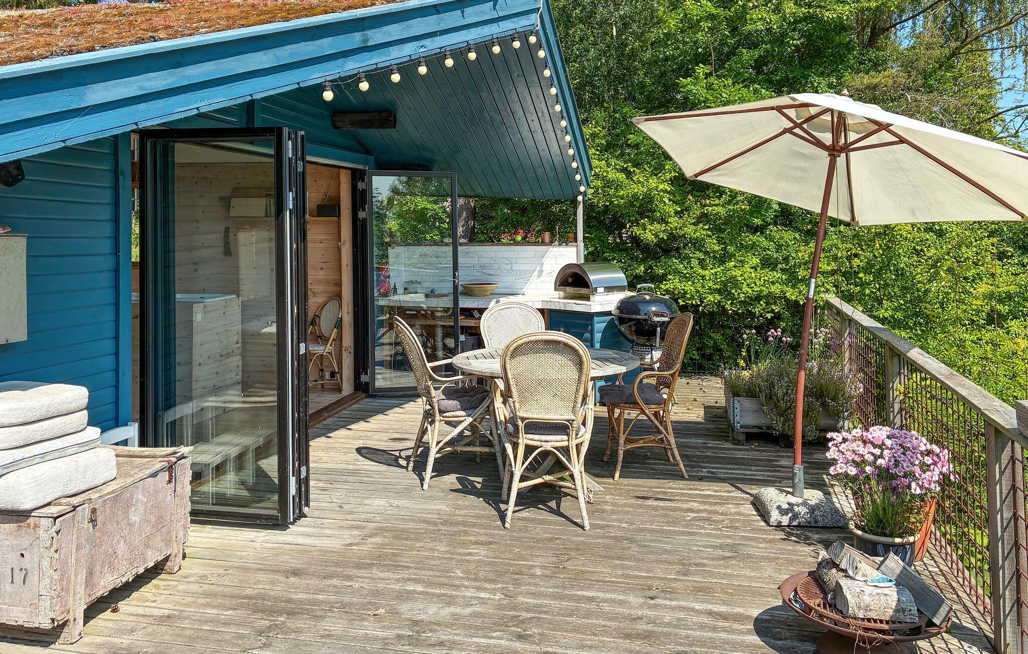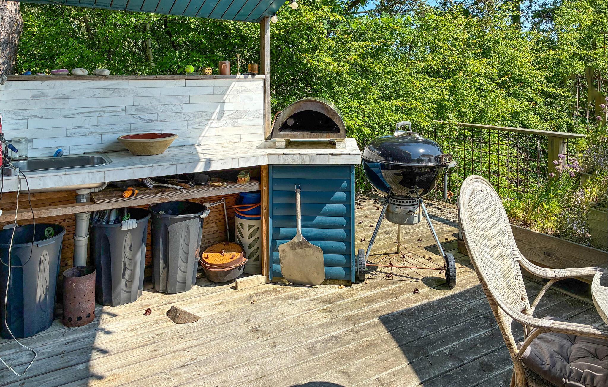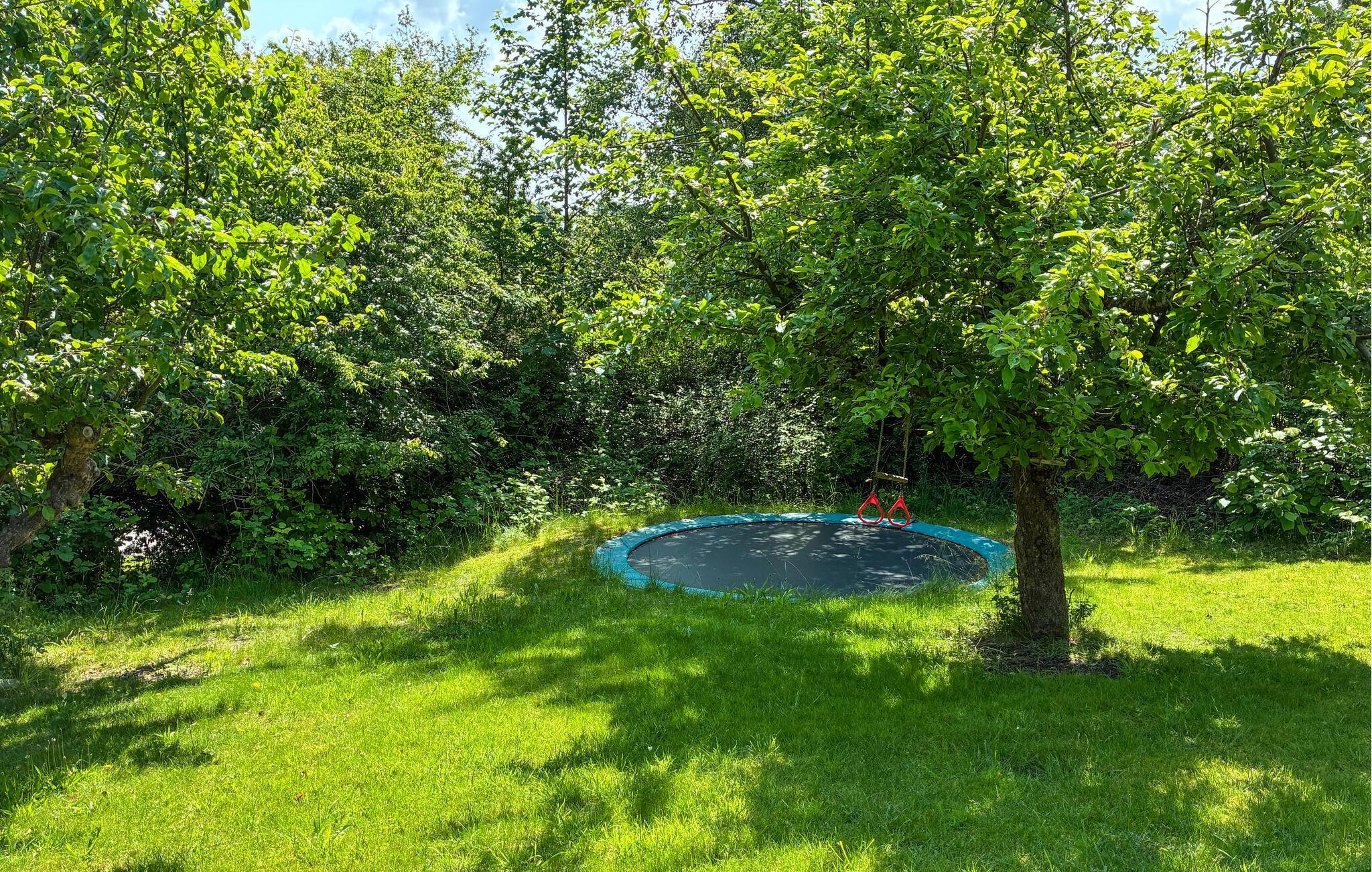 Den frodige, naturbeskyttede have indbyder til harmoniske timer i det fri. Lad børnene hoppe på trampolinen eller arranger en picnic i skyggen af træerne. Bag lækre pizzaer i pizzaovnen, nyd den fredelige stemning med en siesta på liggestolen, eller tænd op i grillen.
