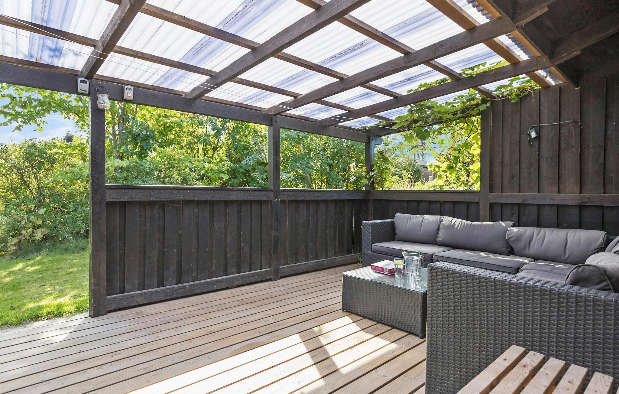 Den overdækkede terrasse og den dejlige have indbyder til solbadning og afslapning i sommermånederne, og her vil I bruge mange timer med en god bog eller en spændende podcast i ørerne.