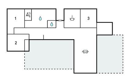 Badeværelse (nr. 1) - WC. Varmt og koldt vand. Bruser