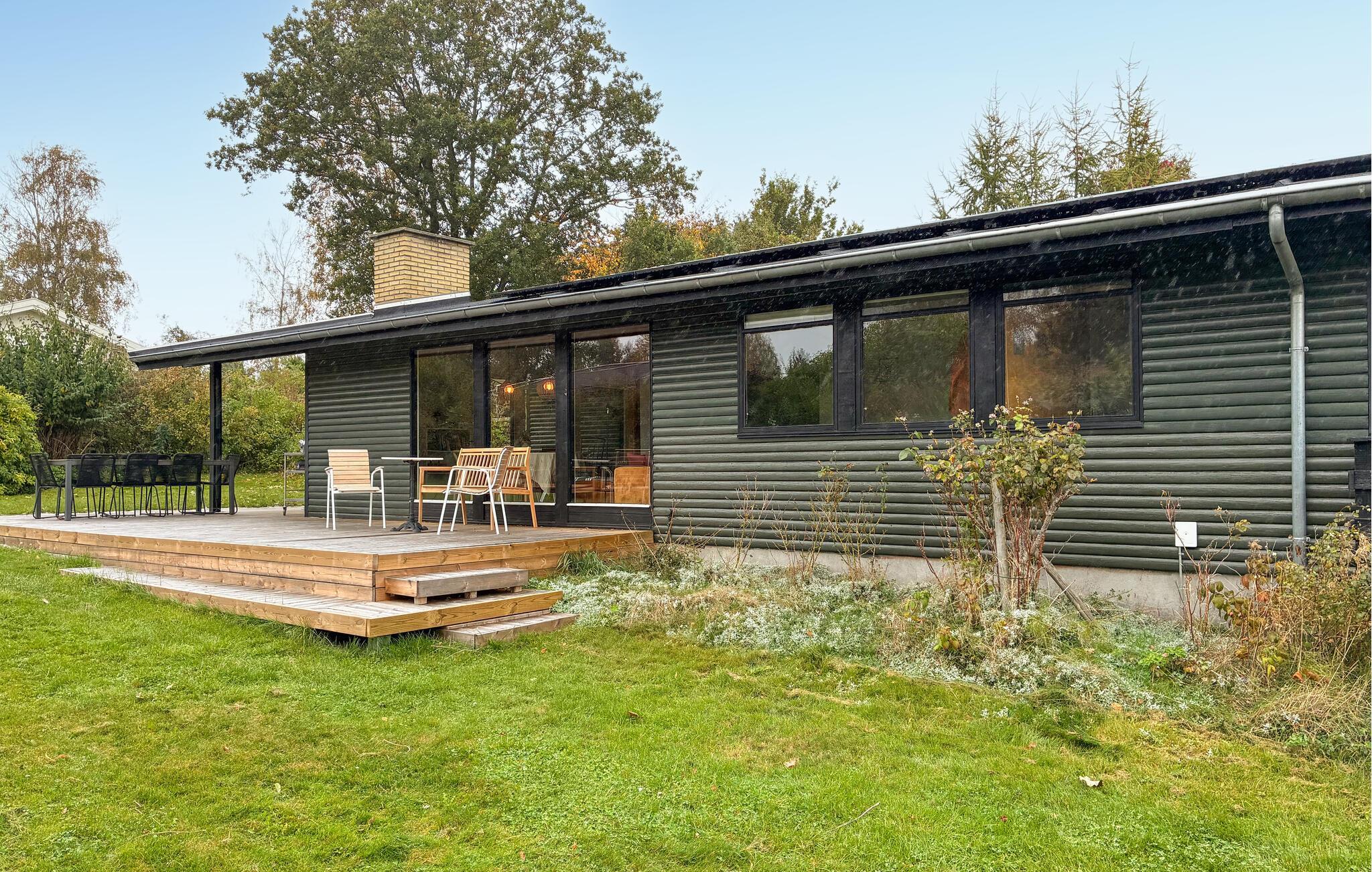 Gå ud på den store træterrasse, og nyd den friske havluft. Slap af i havemøblerne, tilbered et måltid på grillen, eller nyd aftenen i det overdækkede siddeområde. Den velplejede have giver plads til leg for børn og indbyder samtidig til rolige stunder i det grønne.