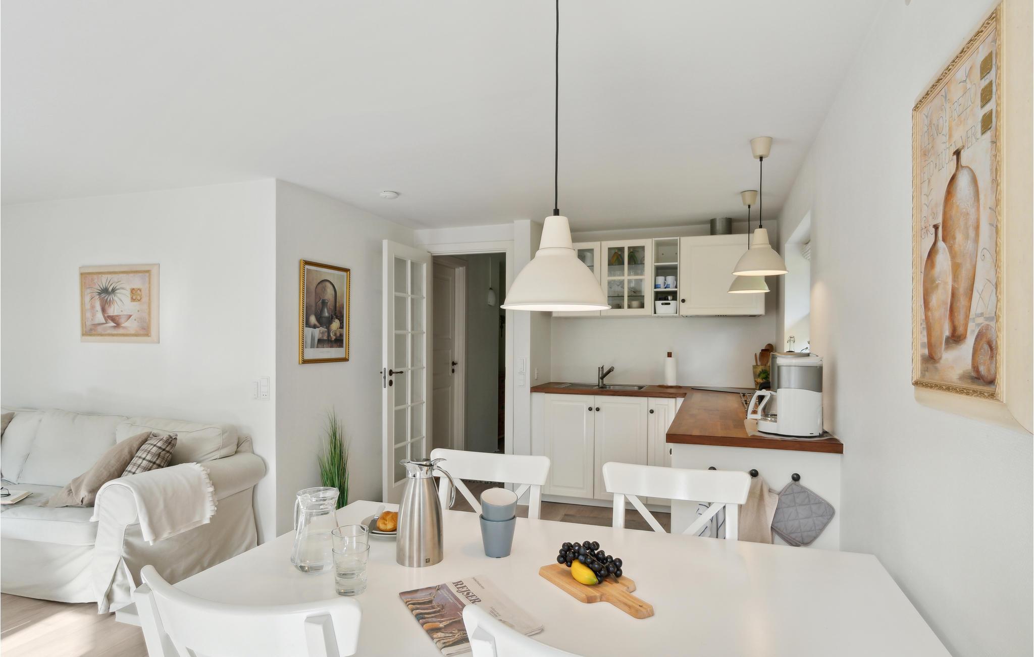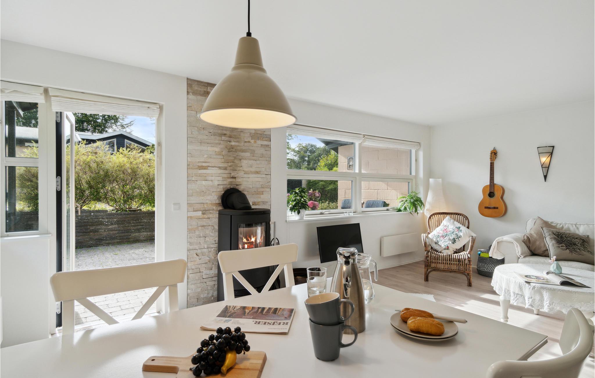 Der venter jer nogle helt særlige feriedage i Nordsjælland, som I kan fylde med friske dukkerter, fisketure og udflugter i området. Her ligger denne dejlige villa, som emmer af lys, feriestemning og smarte indretningsløsninger, så man hurtigt glemmer alt om den hektiske hverdag. I stuen kan I samles omkring spisebordet og snakke om jeres oplevelser, når I vender hjem efter dagens eventyr. Oven på en lang forblæst gåtur er det hyggeligt at få varmen tilbage i fingrene foran ilden i brændeovnen, og senere kan I læne jer godt tilbage i sofahjørnet.