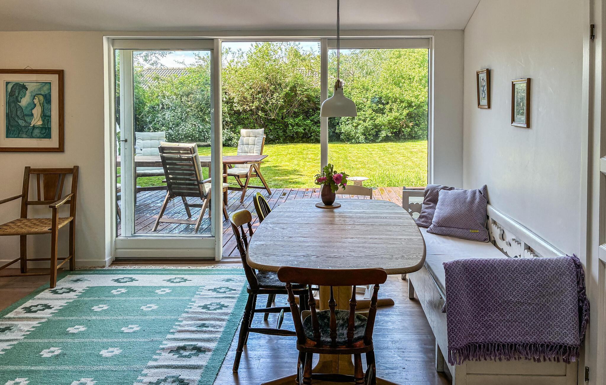 Dette hyggelige feriehus er det optimale sted for en afslappende ferie med fred, natur og en hyggelig atmosfære. Nyd den beskyttede beliggenhed, det frodige grønt hele vejen rundt og den korte afstand til havet. Den lyse opholds- og spisestue er møbleret med sans for detaljer. Tag plads ved hjørnebænken, find sammen ved spisebordet med udsigt over terrassen eller slap af på sofaen i stuen.