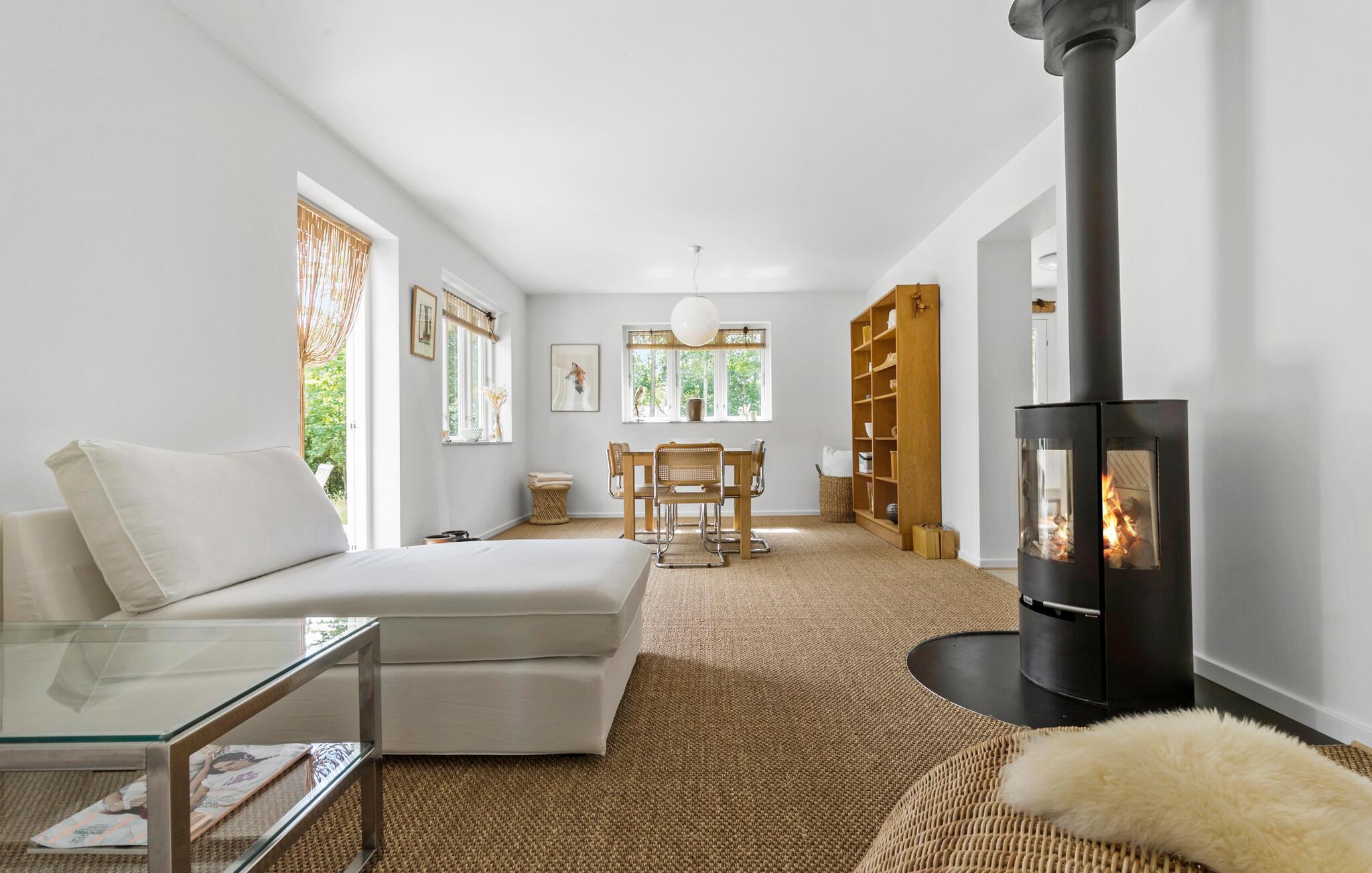 Charmerende feriehus nær Vejby Strand med have, brændeovn og moderne faciliteter til en afslappende ferie.