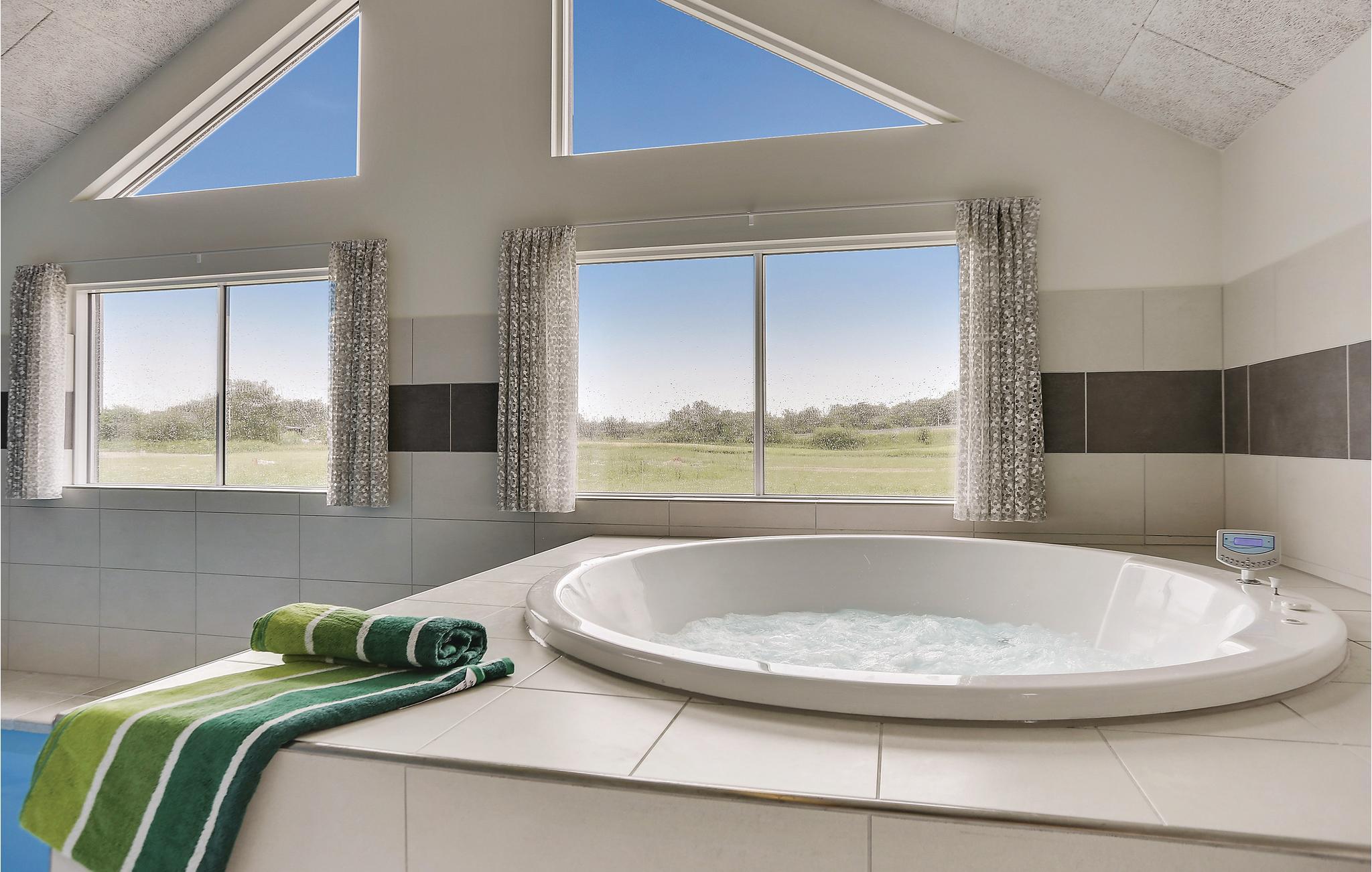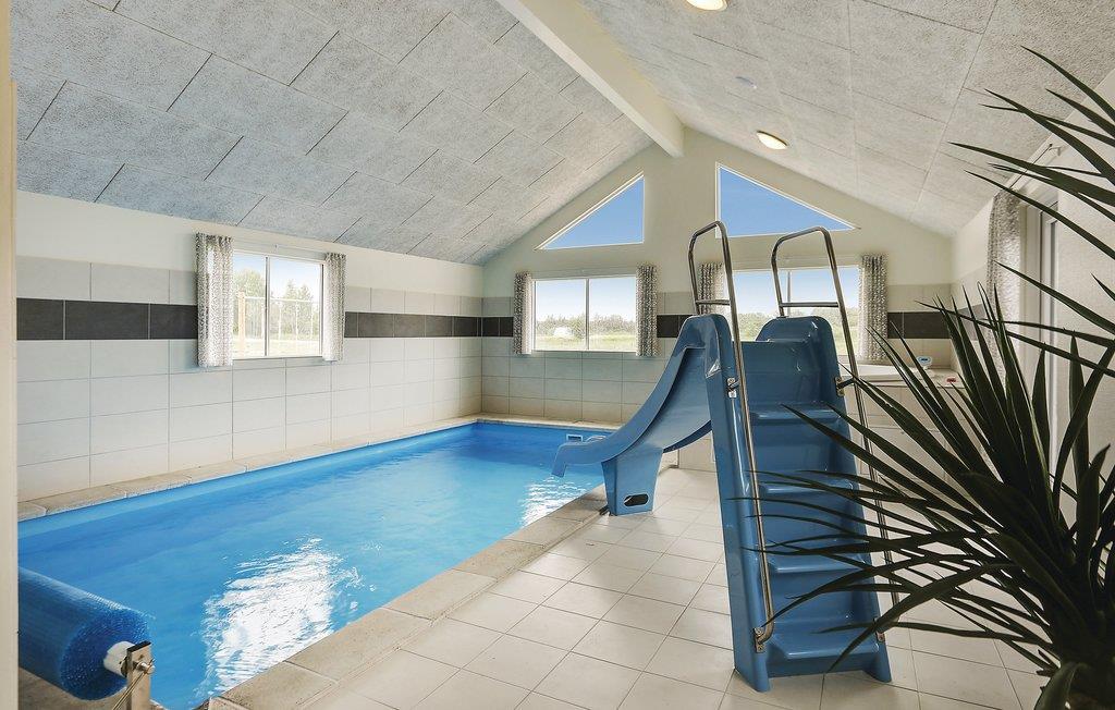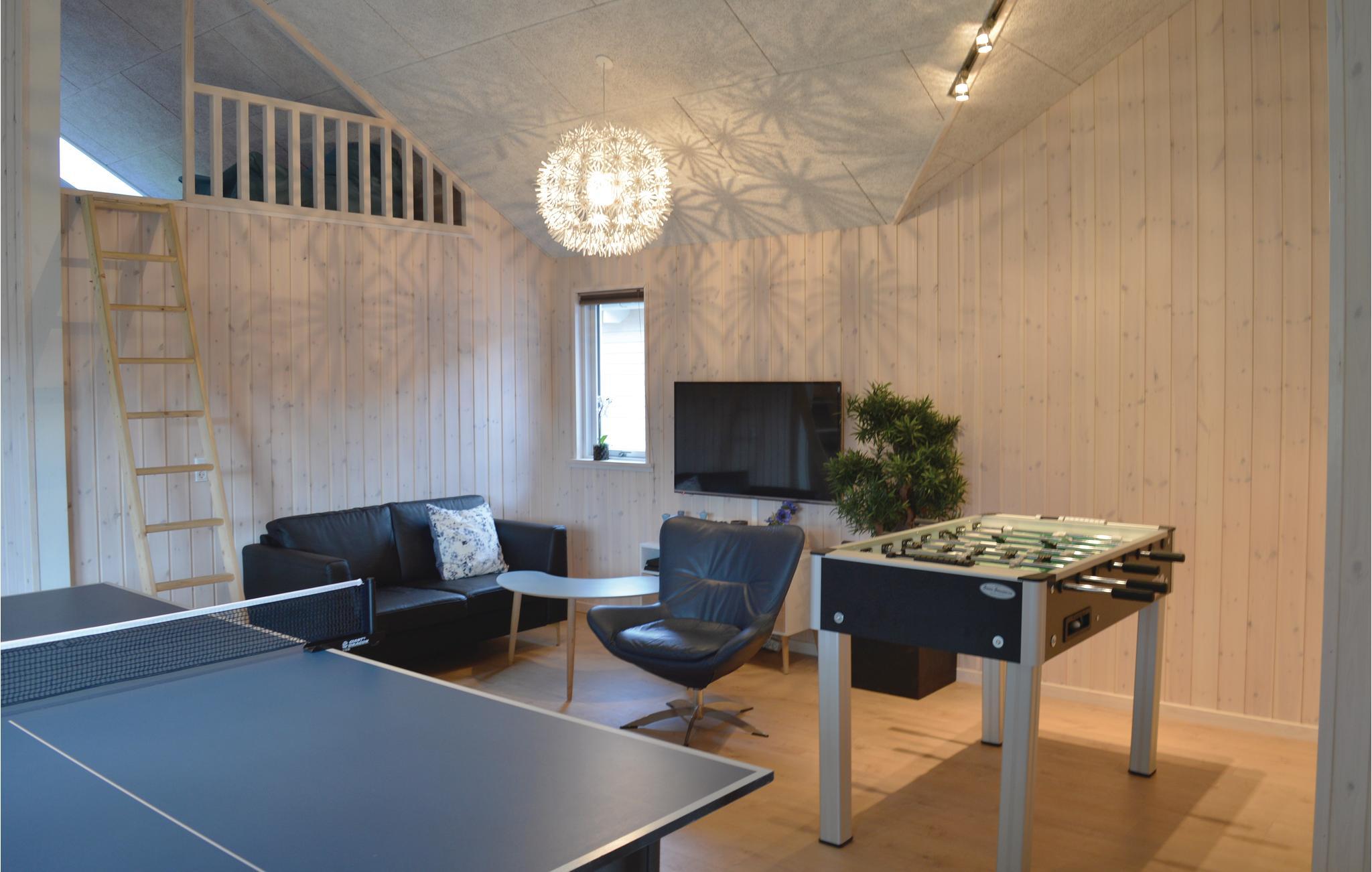 Tæt på en af Nordsjællands gode badestrande finder I dette sommerhus til ferien, der skal være speciel. Huset er lyst og lækkert indrettet og udstyret med komfortable moderne møbler, hvor I rigtig kan slappe af og hygge jer sammen. Stort åbent køkken i forbindelse med stuen, hvor samtalerne kan gå på kryds og tværs. Aktivitetsrummet ligger ved siden af stuen, og har flere forskellige aktiviteter til både store og små. Ved den dejlige swimmingpool er der et seks personers spabad samt adgang til saunaen - her er wellness i rigt mål. Den skønne, store terrasse er møbleret med havemøbler, hvor I kan sidde og slappe af og rigtig nyde ferien i fulde drag. På lune sommeraftener er det også skønt at tænde op i grillen og tilberede et lækkert feriemåltid. Huset har desuden syv gode soveværelser samt en hems med fire sovepladser med opgang fra aktivitetsrummet. Her er gode muligheder for gå- og cykelture, oplev det naturskønne Heatherhill eller cykel en tur til Tisvildeleje, der byder på gode restauranter, caféer, små hyggelige butikker og en dejlig atmosfære. Depositum og eventuel slutrengøring, betales kontant i huset. Energiforsyningen til huset er 100% Grøn Energi - kun fra Danske Vindmøller.