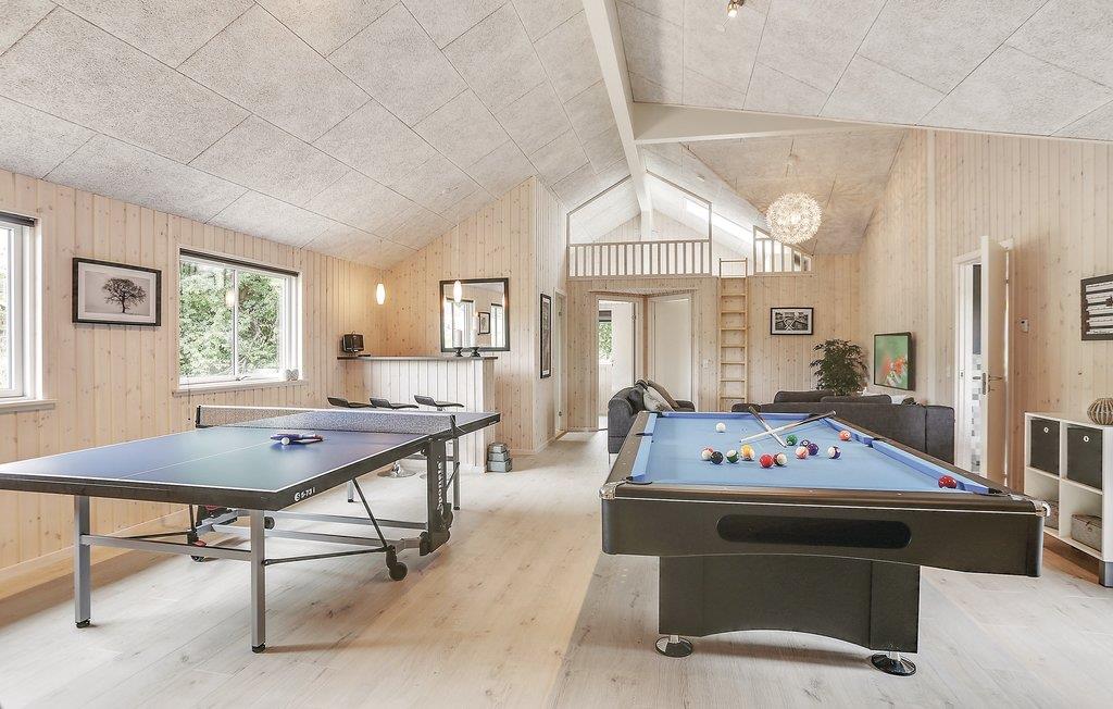 Lyst og moderne sommerhus tæt på Vejby Strand med pool, spa, sauna og aktivitetsrum for hele familien.