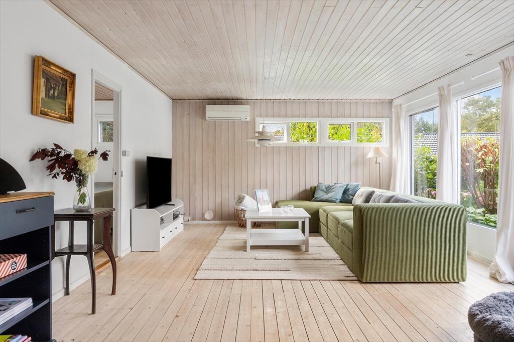 Når vejret viser sig fra sin gode side, trækker livet udenfor – og her er terrassen det naturlige samlingspunkt. Den indbyder til lange grillmiddage, kolde drikke og afslappede feriedage i solen. I haven er der plads til leg og afslapning, mens du måske hører havets brusen i baggrunden. For selvom du ikke kan se vandet fra huset, er du så tæt på, at lyden af bølgerne skaber en helt særlig feriestemning – både dag og nat
