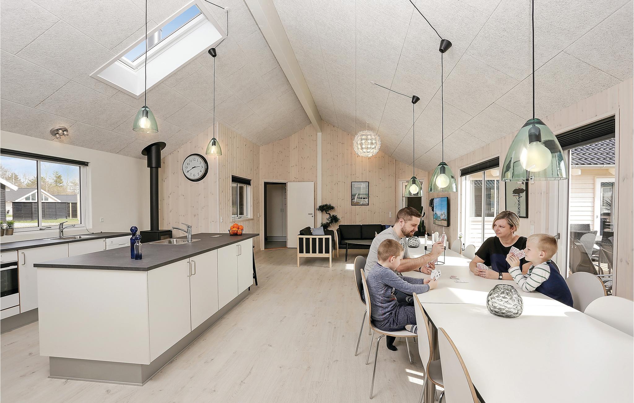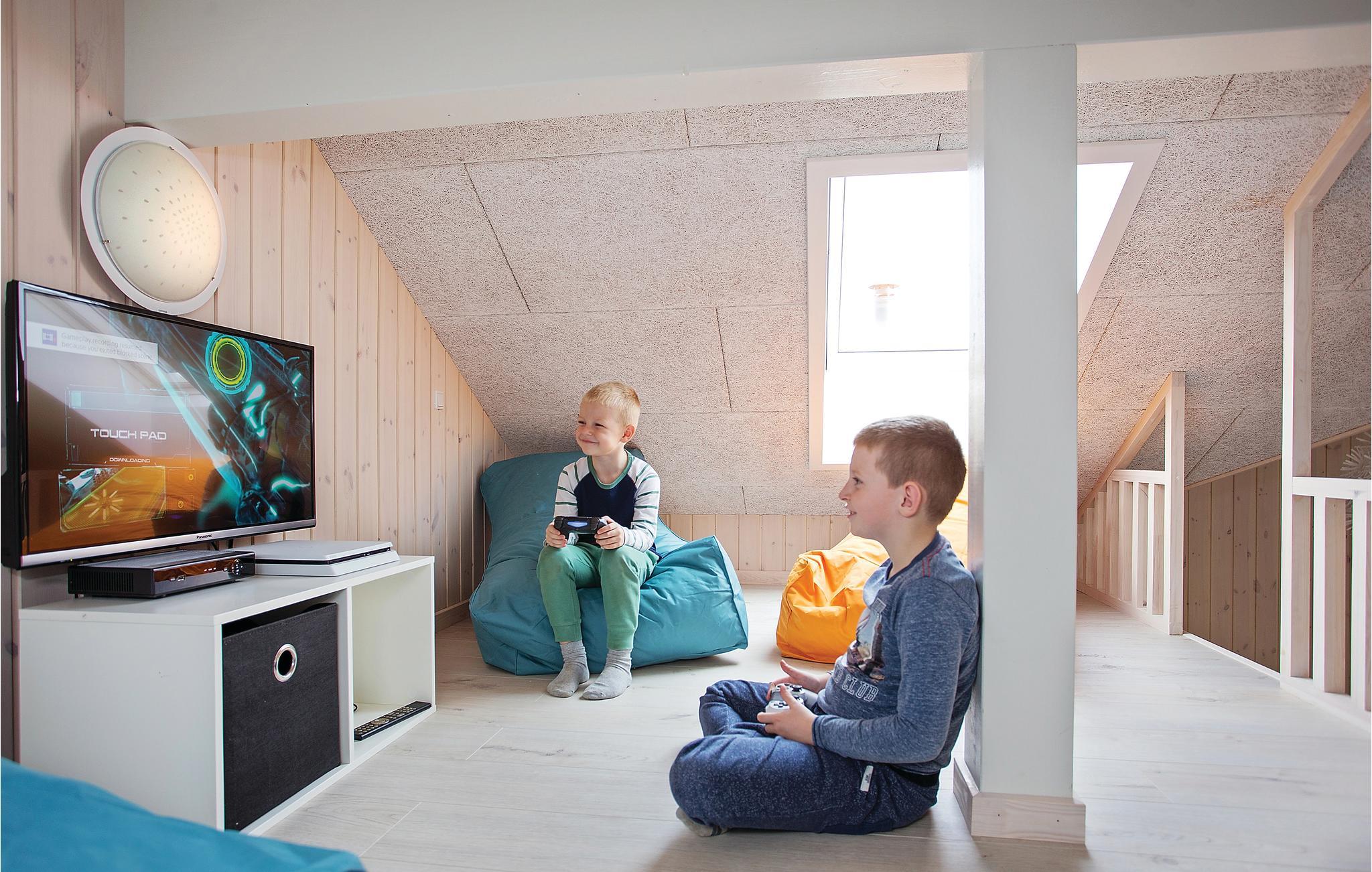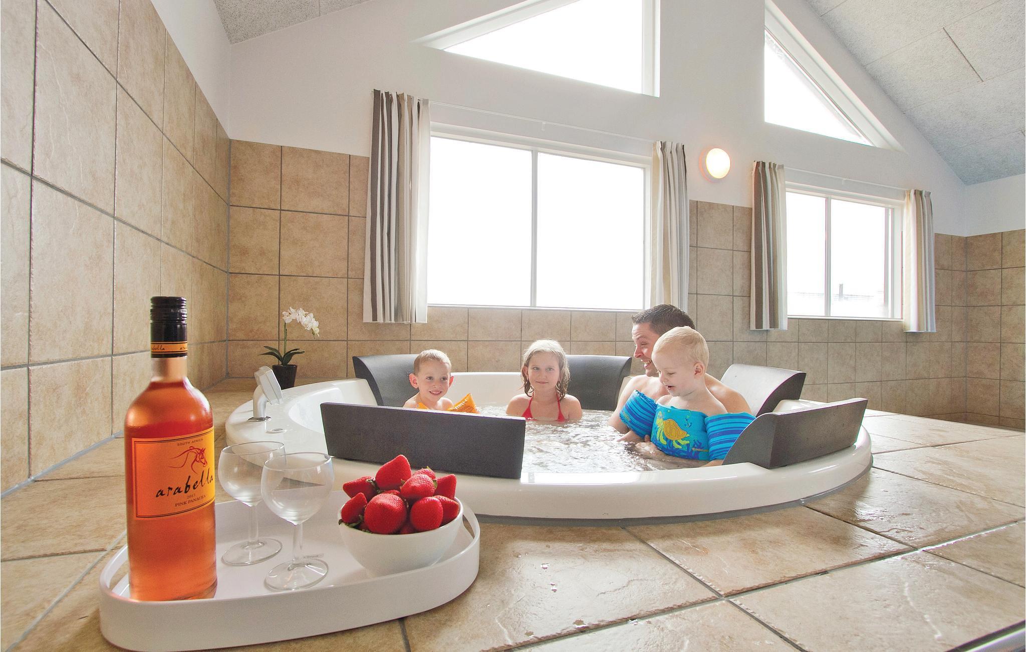 Her er rammerne skabt for en dejlig ferie med aktiviteter for hele familien. Det arkitekttegnede luksusferiehus har mange gode soveværelser fordelt på tre sektioner; hver sektion har et separat badeværelse, så flere familier kan nyde ferien sammen. Hertil kommer et aktivitetsrum med bordfodbold, billard, bordtennis og dart. Aktivitetsrummet ligger lige ved siden af den store stue med direkte adgang til køkkenet. I poolrummet kan I boltre jer både i poolen og i det fire personers spabad. Herfra er også adgang til saunaen. Adgang til poolrummet er børnesikret med et håndtag, der er placeret højt på døren samt en lås, således at husets yngste gæster ikke kan komme alene ud i rummet.