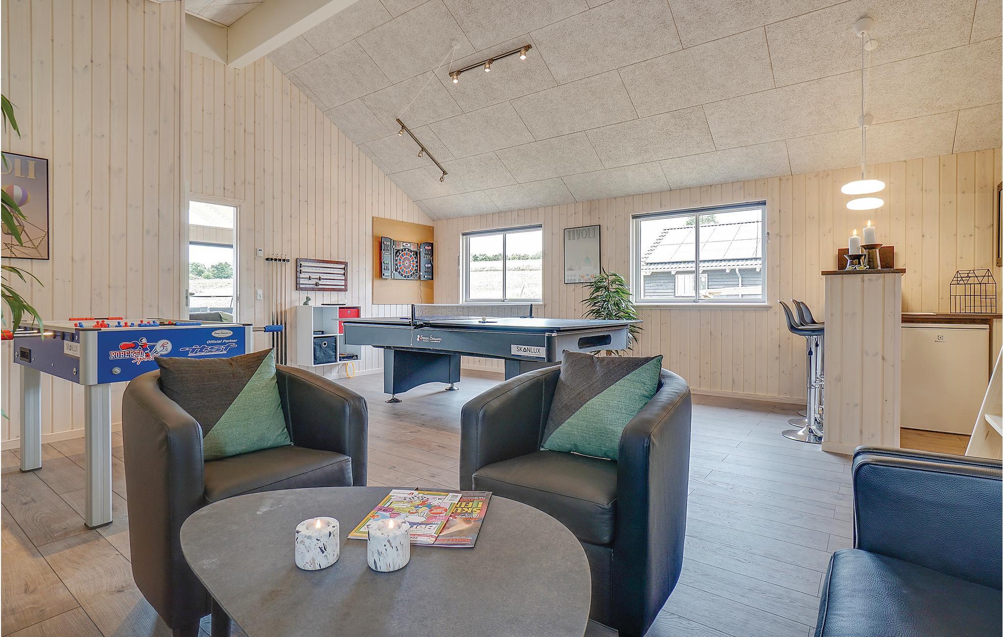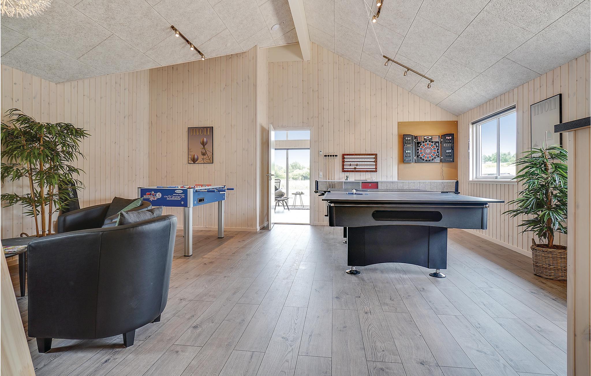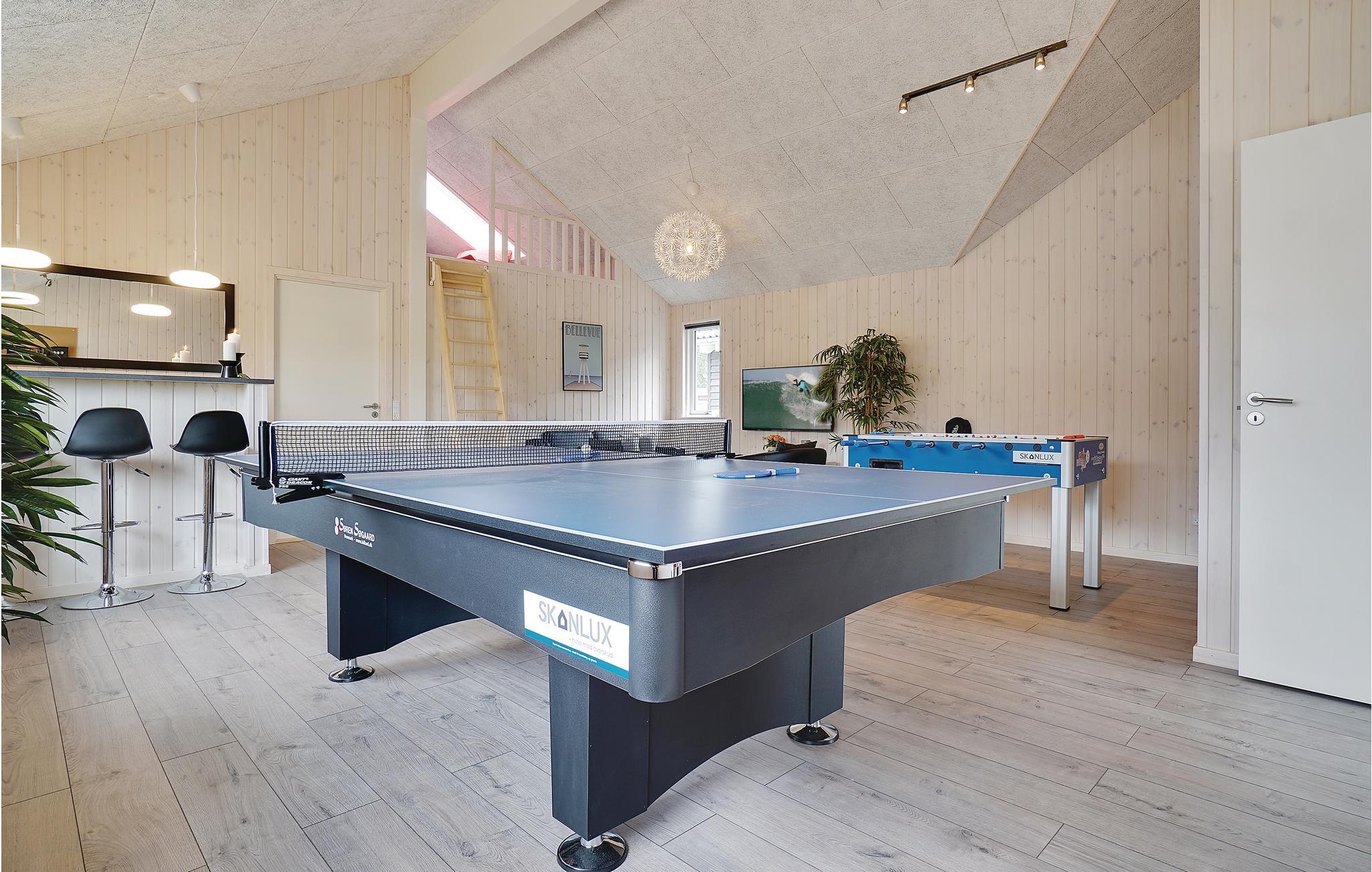 Tæt på en af Nordsjællands gode badestrande finder I dette sommerhus til ferien, der skal være speciel. Huset er lyst og lækkert indrettet og udstyret med komfortable moderne møbler, hvor I rigtig kan slappe af og hygge jer sammen. Her findes et stort, åbent køkken i forbindelse med stuen, hvor samtalerne kan gå på kryds og tværs. Aktivitetsrummet ligger ved siden af stuen, og har flere forskellige aktiviteter til både store og små. Ved den dejlige swimmingpool er der et seks personers spabad samt adgang til saunaen - her er wellness i rigt mål. Den skønne, store terrasse er møbleret med havemøbler, hvor I kan sidde og slappe af og rigtig nyde ferien i fulde drag. På lune sommeraftener er det også skønt at tænde op i grillen og tilberede et lækkert feriemåltid. Huset har desuden seks gode soveværelser samt en hems med fire sovepladser med opgang fra aktivitetsrummet.