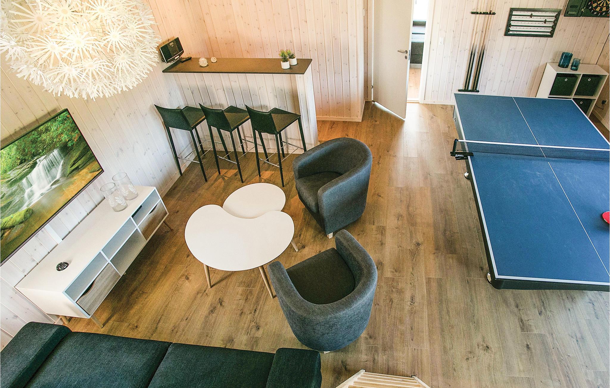 Spændende og flot feriehus hvor der er lagt vægt på såvel god indretning som smag for de små detaljer. Huset passer til hele familien, hvor børnene kan bruge energien i den store poolafdeling. Her finder I også det store spabad samt den velgørende sauna. Aktivitetsrummet lægger op til en familiedyst i bordtennis og billard, og i den lille bar med køleskab, kan de foretrukne drinks mikses. Den store hems er rigtig hyggelig, og vil helt sikkert være et hit hos børnene. Køkkenet er meget veludstyret og dimensioneret til husets størrelse med bl.a. to komfurer, to opvaskemaskiner samt god plads i køleskab og fryser. Køkkenet ligger i åben forbindelse med stuen, så alle kan være sammen og følge med i hinandens gøremål. Huset ligger i et dejligt og naturskønt område med kort køreafstand til det skønne Heatherhill og den gode badestrand. Beliggenheden er også perfekt til skønne vandreture i den smukke natur. Aconto forbrug og slutrengøring betales kontant i huset sammen med de øvrige forbrugsomkostninger. Sengelinned, håndklæder, barneseng og –stol kan lejes på det lokale kontoret.