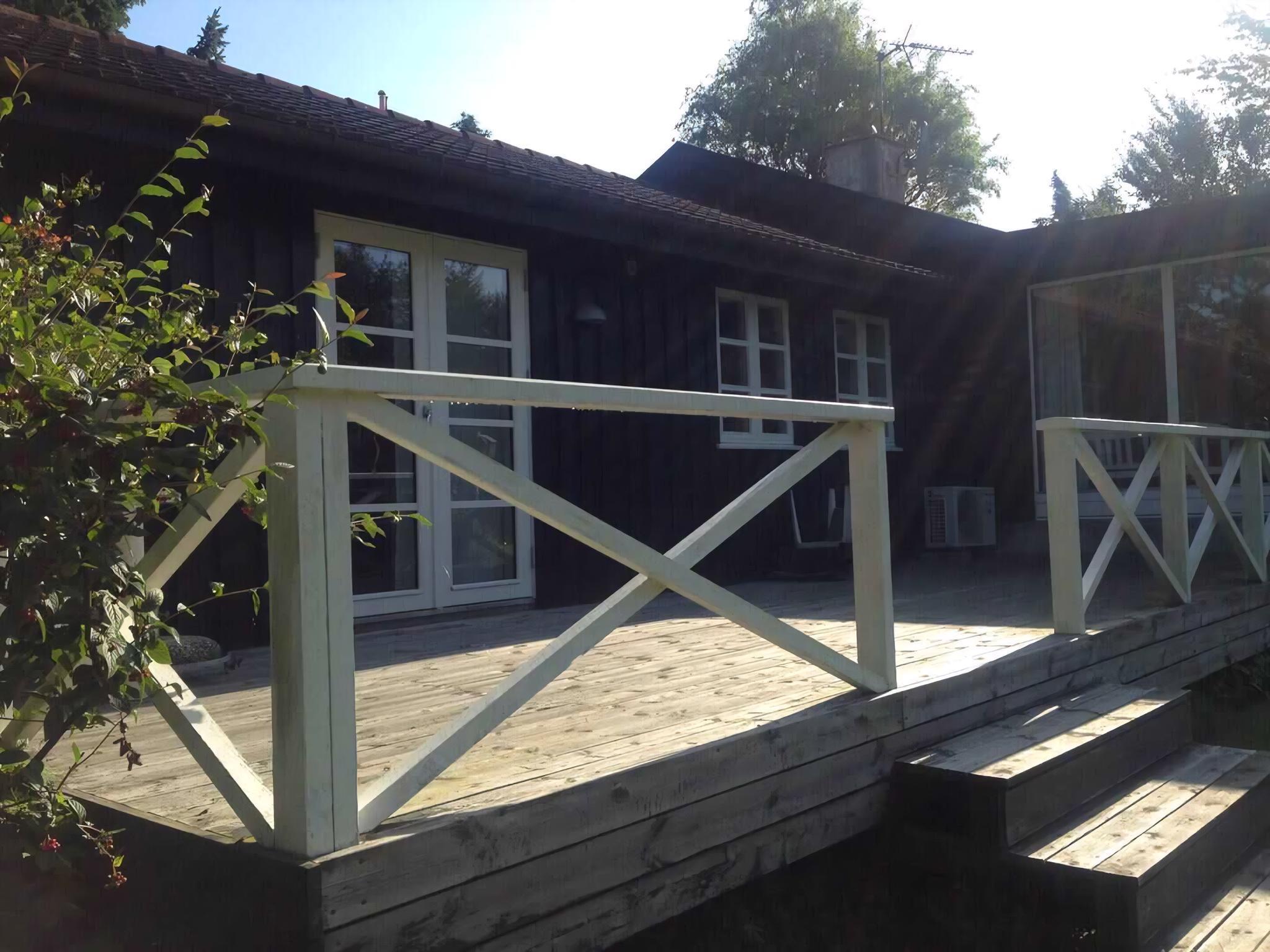 Hyggeligt sommerhus nær Vejby Strand med store terrasser og børnevenlige faciliteter.