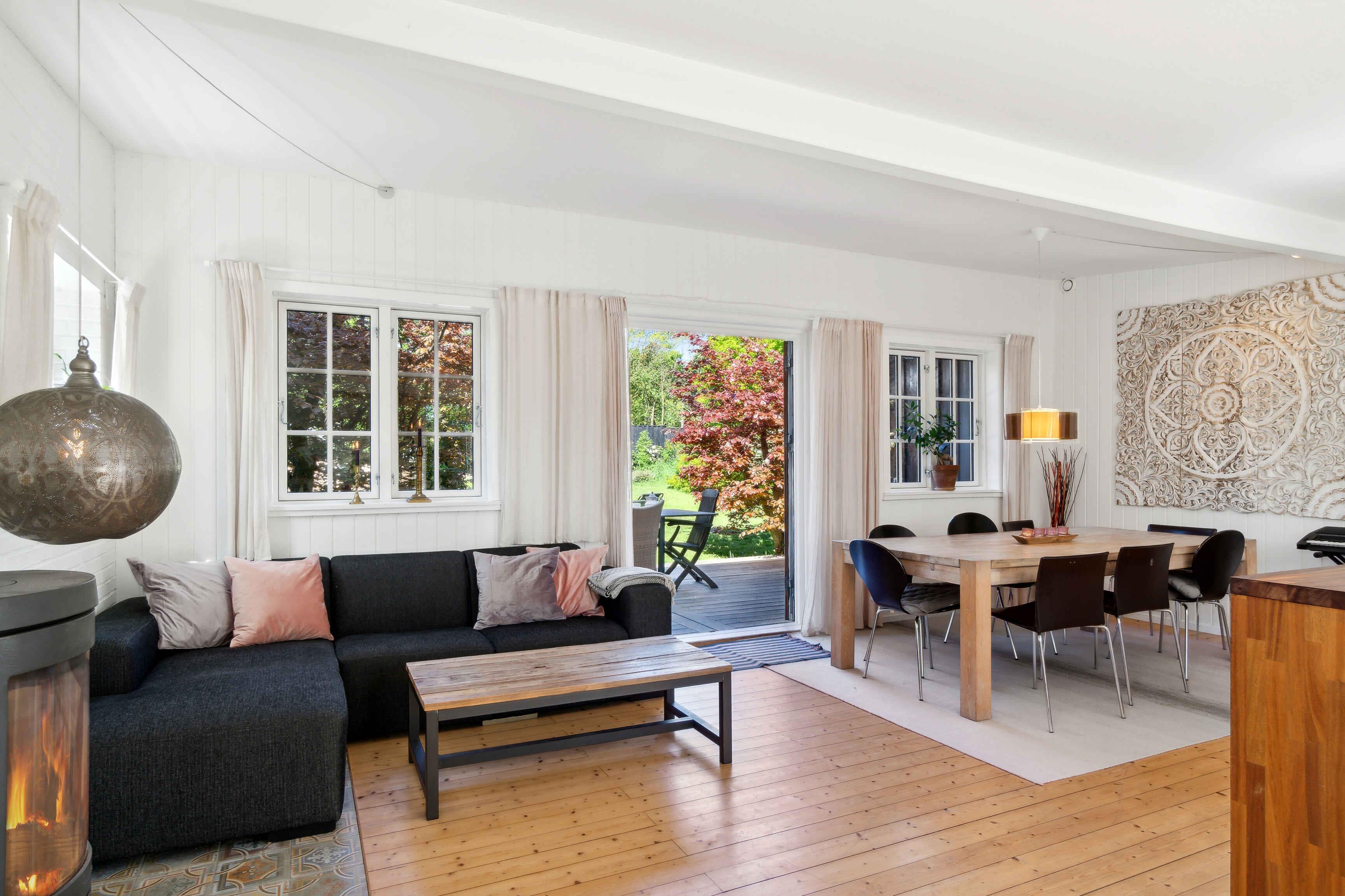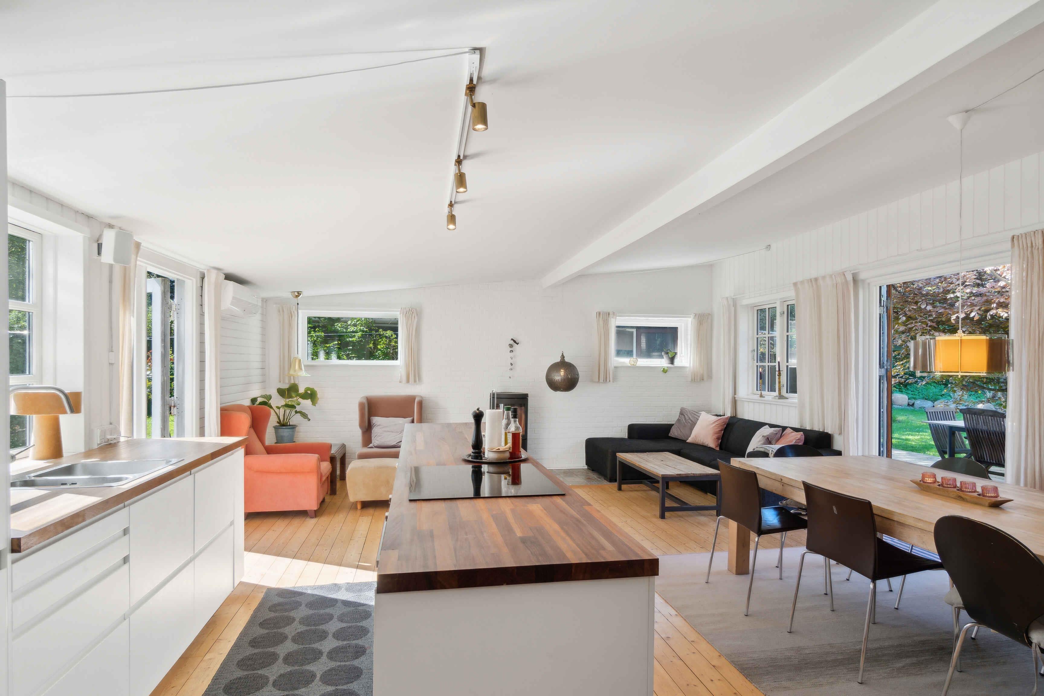 Dette fortryllende sommerhus er mere end bare en bolig - det er et tilflugtssted, hvor minder skabes og øjeblikke deles. Med sine imponerende 125 kvadratmeter er der rigelig plads til at sprede sig ud og føle sig hjemme, mens man stadig nyder den særlige følelse af at være væk fra det daglige trummerum. Det store, luftige køkken-alrum er hjertet i huset, et sted hvor familie og venner naturligt samles for at lave mad sammen, spise og dele historier om dagen. Det moderne køkken er udstyret med alt, hvad du behøver for at tilberede lækre måltider, mens det åbne layout giver mulighed for at bevæge sig frit omkring rummet. Når aftenen falder på, og temperaturen daler lidt, er der intet mere hyggeligt end at tænde op i pejsen og lade flammerne danse hypnotiserende, mens man slapper af med en god bog eller bare nyder selskabet af dem, man holder af. Den store terrasse, der strækker sig ud fra huset, er det perfekte sted at nyde de lange sommeraftener, måske med et glas køligt drikke i hånden. Udenfor venter en stor have, der indbyder til leg og aktiviteter under åben himmel. Børnene kan boltre sig frit, mens de voksne slentrer rundt og nyder naturens skønhed. Og hvis solen bliver for intens, er der altid mulighed for at trække sig tilbage til skyggen af træerne og tage en velfortjent pause. Med sin ideelle beliggenhed kun 1 kilometer fra stranden og lokale butikker, kombinerer dette sommerhus det bedste fra begge verdener: bekvemmelighed og ro. Og med den udendørs fritstående pool som et ekstra præg, er der endnu flere muligheder for at fordybe sig i afslapning og velvære. Uanset om du er en større familie på jagt efter et tilflugtssted, hvor I kan genforenes og skabe minder sammen, eller to familier, der ønsker at dele oplevelserne, er dette sommerhus det perfekte valg. Dog, for at opretholde den fredelige atmosfære, som dette sted er kendt for, tillader vi ikke unge grupper til festivaler eller fester. Velkommen til jeres hjem væk fra hjemmet, hvor komfort, skønhed og ro går hånd i hånd for at skabe den perfekte ferieoplevelse.