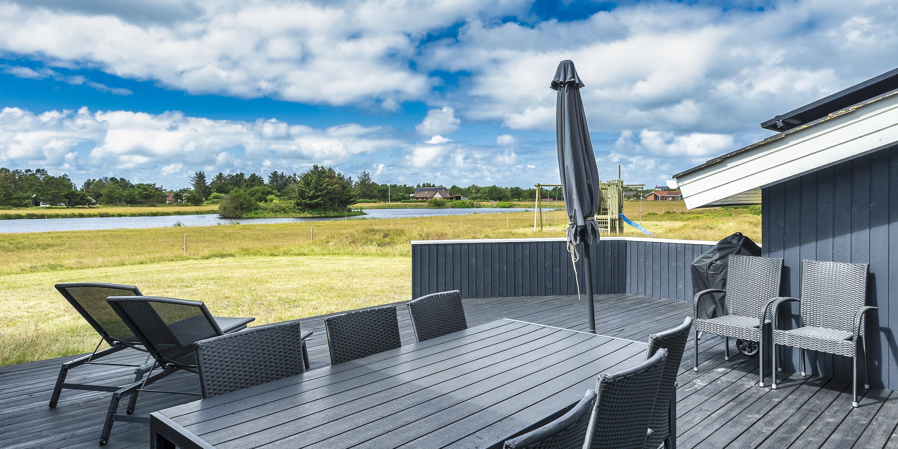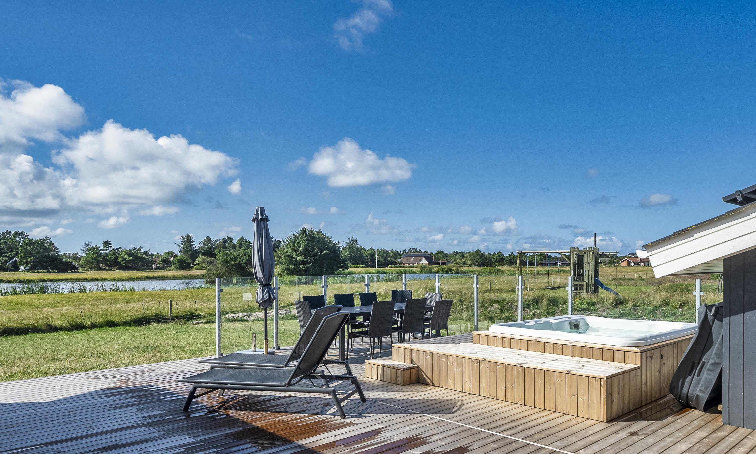 De udvendige rammer indbyder til leg, afslapning og hyggelige stunder. Den 2.100 m² store naturgrund giver masser af plads til både børn og voksne – her er sandkasse og gynge til de mindste, mens den store, åbne terrasse på ca. 70 m² indbyder til solrige frokoster og lange sommeraftener. Fra terrassen har man en betagende udsigt over søen, som skaber en rolig og naturskøn atmosfære. Her finder man også et moderne udendørsspa fra 2025, hvor man kan synke ned i det varme vand og samtidig nyde den storslåede udsigt over søens blanke vandspejl. For mere info spørg os på kontoret. Gratis adgang til badeland og bowling i Varde i 2025. Ladestik til elbiler. Rygning er ikke tilladt. Byggeår 1988, renoveret 2020.