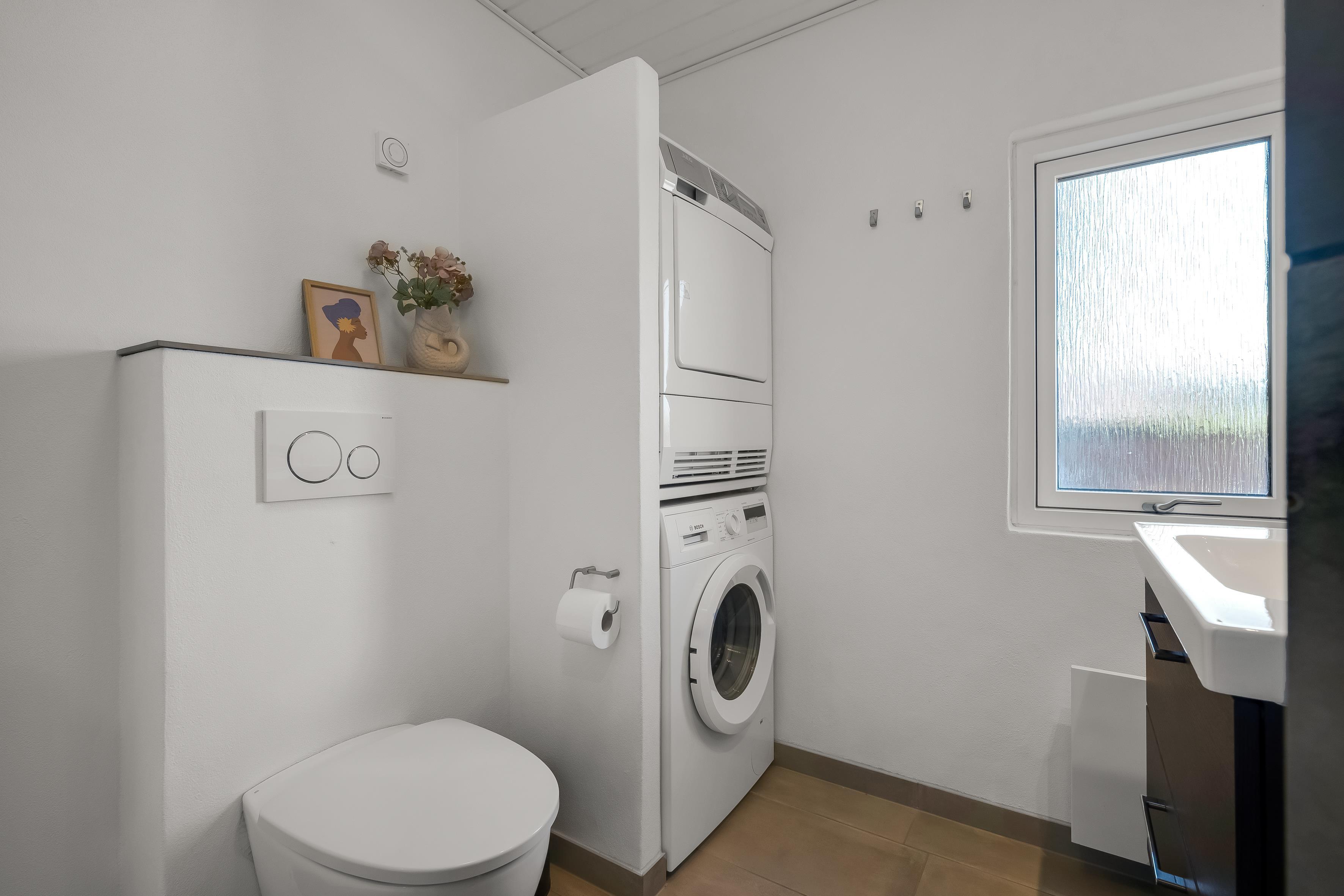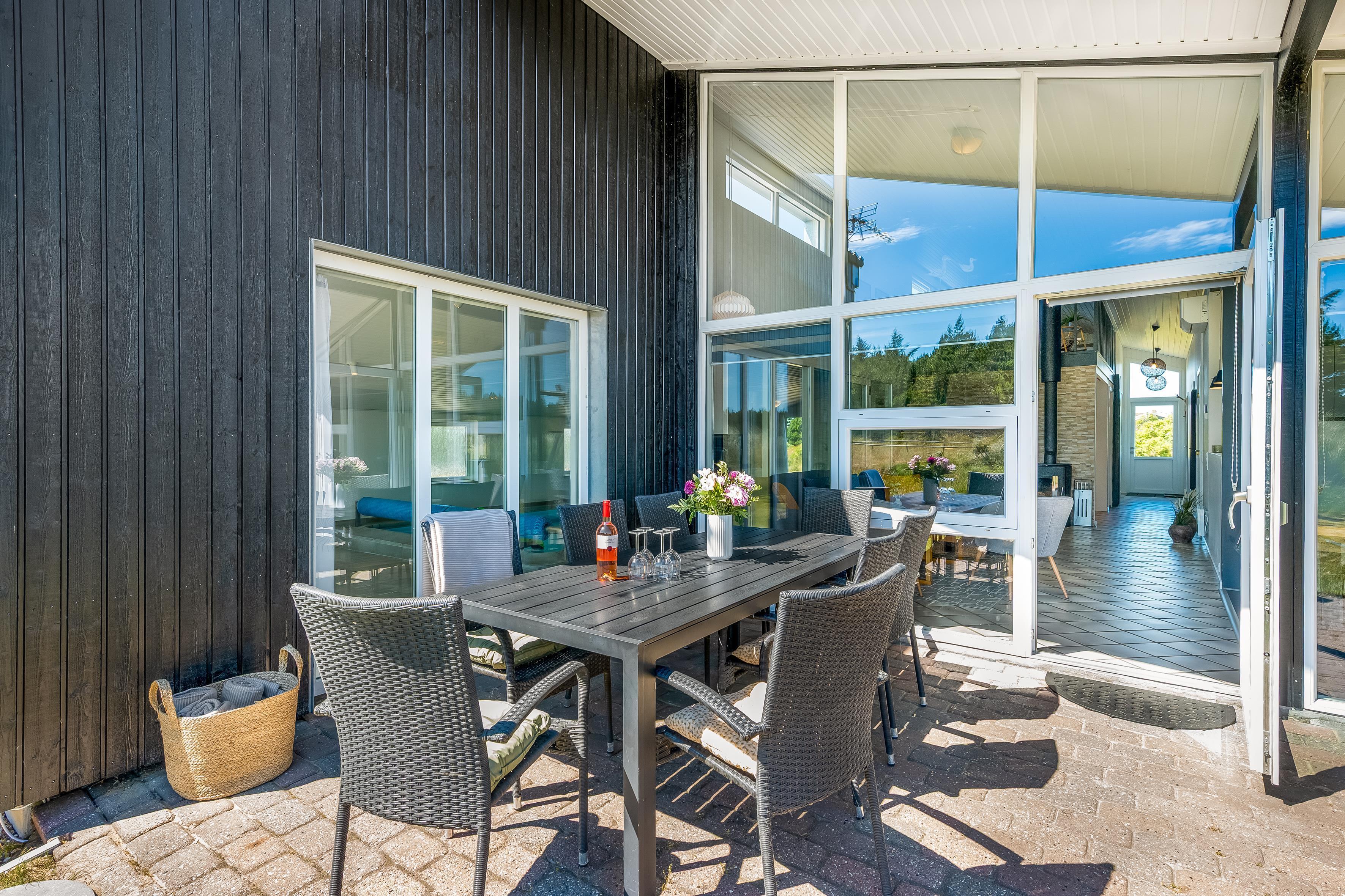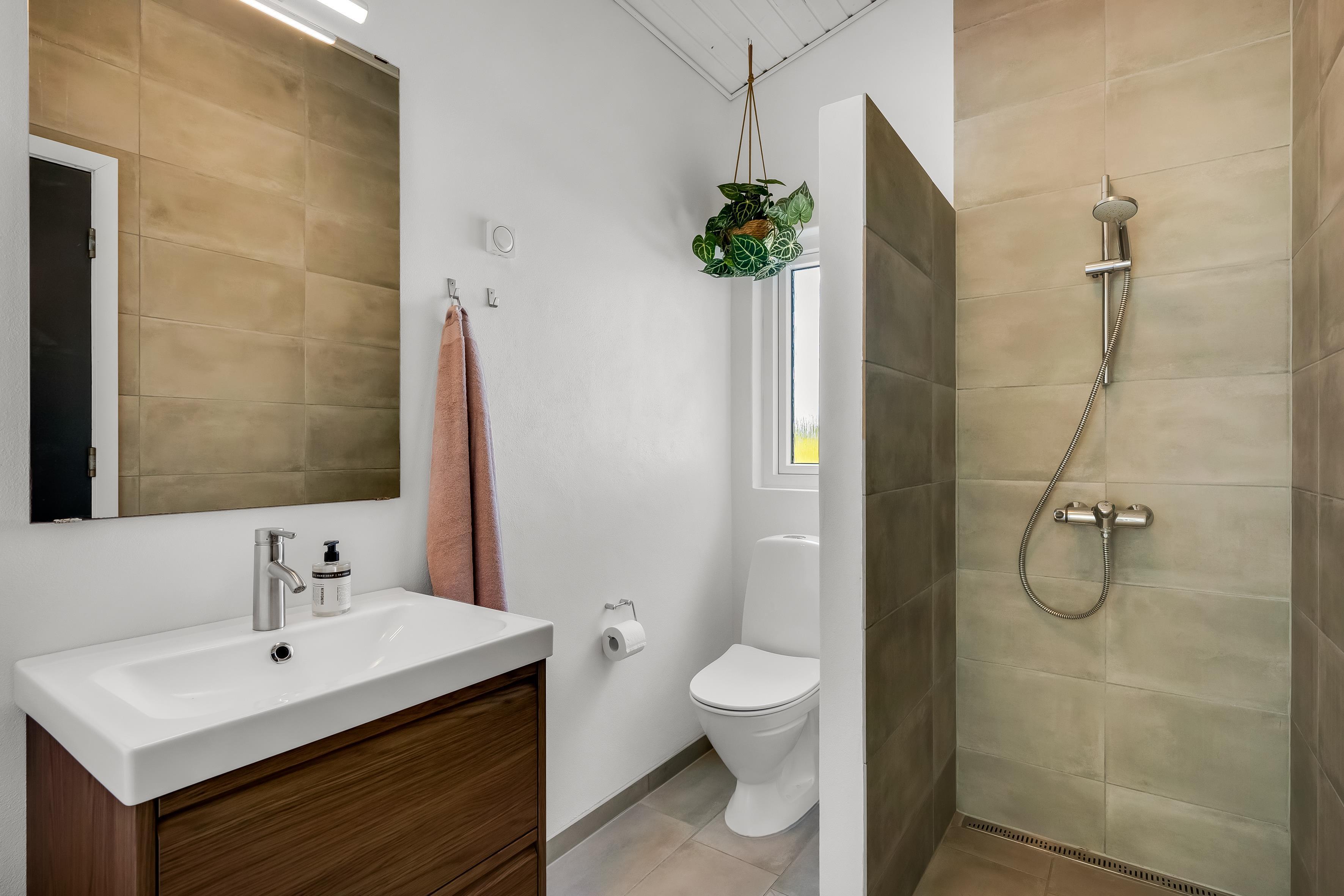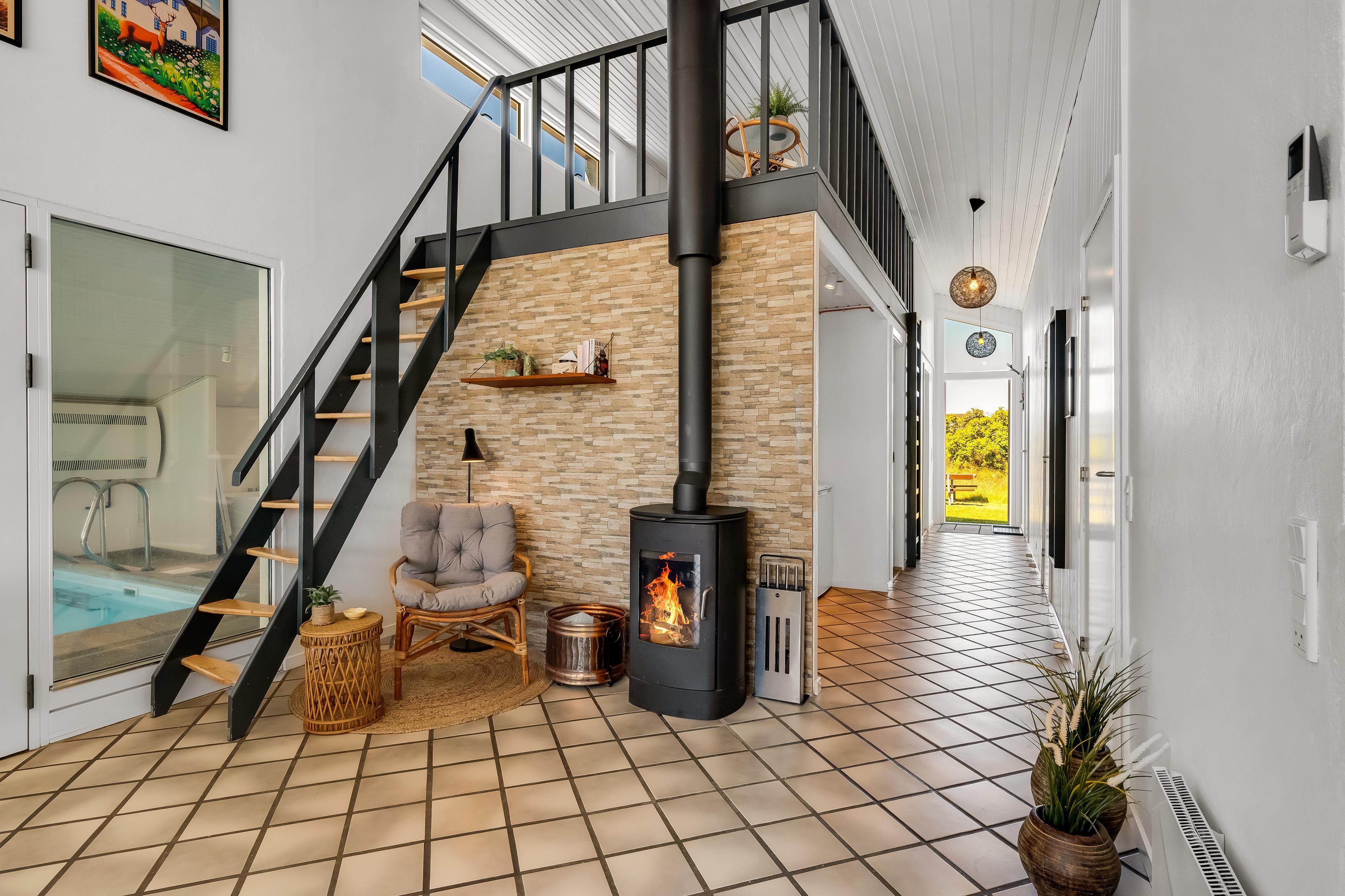 Huset indeholder: Indgang/fordelingsgang med garderobe der ligger i åben forbindelse med opholdsrummet. Det store opholdsrum er med loft til kip og med et stort vinduesparti mod øst. Stuen er med en hjørnesofa, hvorfra udsigten over mod skov kan nydes fra det store vinduesparti. Stuen har Smart TV med parabolantenne og DR-programmer, trådløs internet (100/100), varmepumpe, brændeovn samt en hems, og er et godt opholdsrum for børnene for uforstyrret leg og hygge. Nyt køkken i åben forbindelse med stuen. Køkkenet har køleskab, indbygningsovn, induktionskogeplade, emhætte 80 L skabsfryse. I forbindelse med køkkenet, er der en åben spiseplads med kig til skoven, fra det store vinduesparti og udgang til den delvis overdækkede terrasse. Fra stuen er der adgang til det store poolrum, poolen er ca. 6,5 x 3,5 x 1,3 (længde x brede x dybde), der er et hjørnespa og flere hyggekroge med kurvemøbler, samt badeværelse med bruser/wc, vaskearrangement og sauna. Hele herligheden kan nydes fra stuen igennem det store vinduesparti. 5 soveværelser: DS + DS + 2S + 2S + 2S. Fra fordelingsgangen forefindes 4 gode soveværelser, 2 soveværelser med hver en dobbeltseng og garderobeskabe, samt 2 soveværelser med hver 2 enkeltsenge. Ydermere er der 2 enkeltsenge på hemsen, hvorfra der adgang via en trappe fra stuen. Badeværelse med bruser/wc og vaskearrangement samt vaskemaskine og tørretumbler. 2 terrasse med gode havemøbler, grill, og et gyngestativ. Grunden er udlagt i græs som giver rig mulighed for boldspil, kroket m.m. Husdyr og rygning er ikke tilladt. Ladestation til El biler, stick Type 2. Byggeår 1989. Renoveret 2020. Der afregnes ekstra for vand.