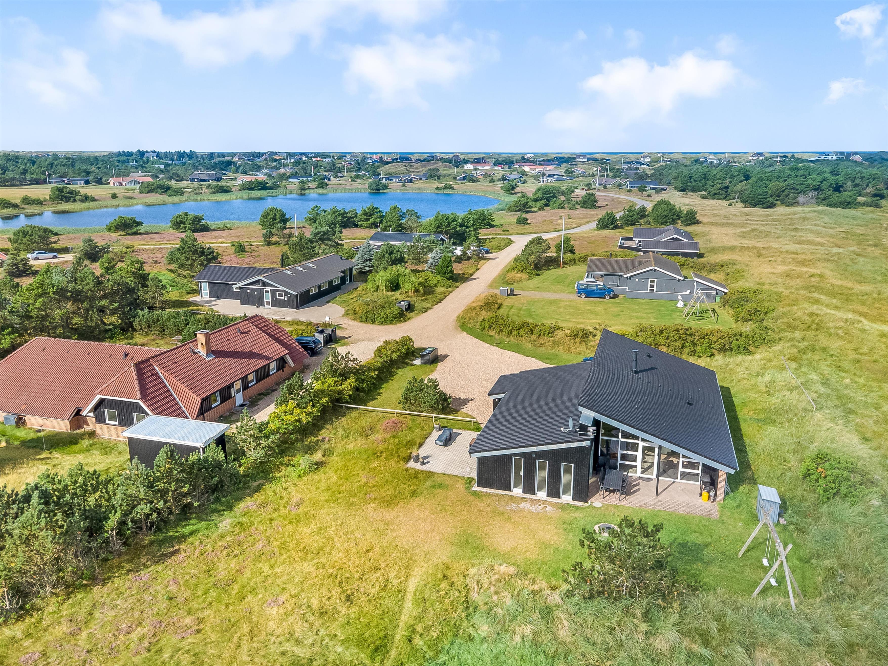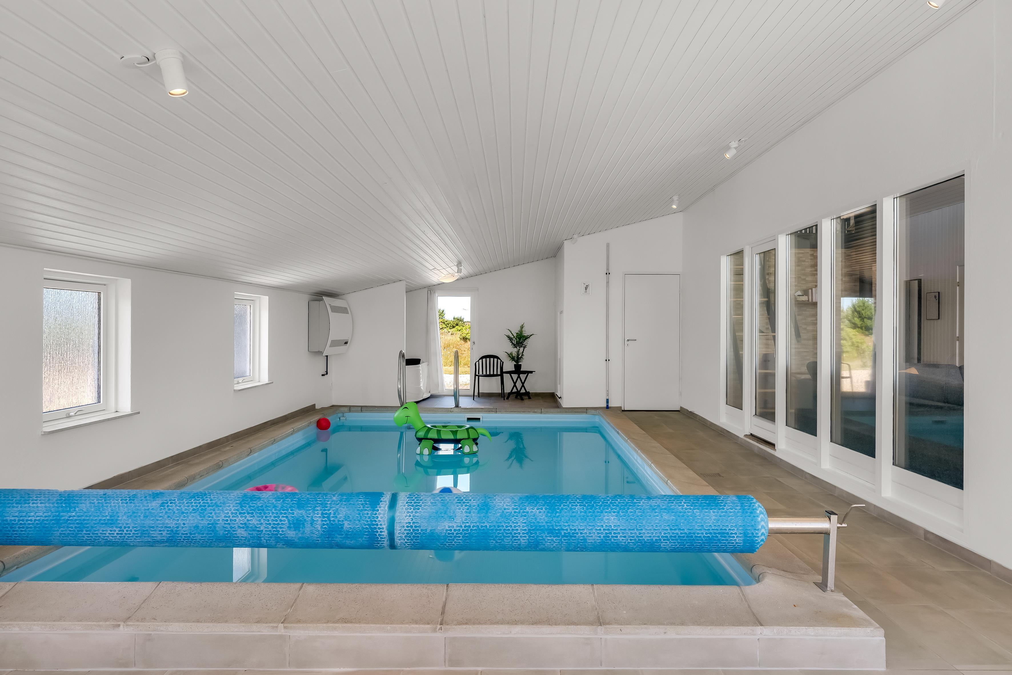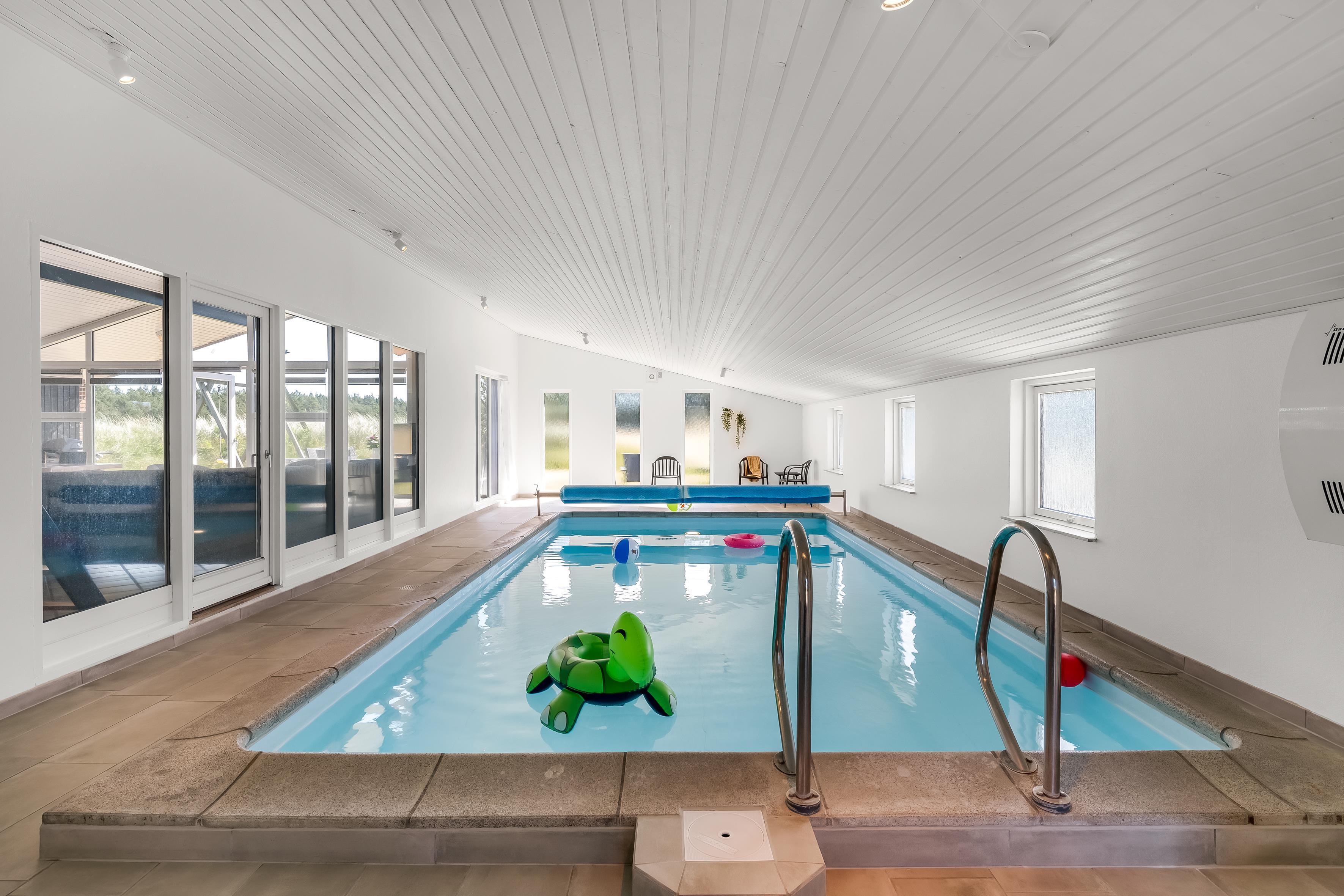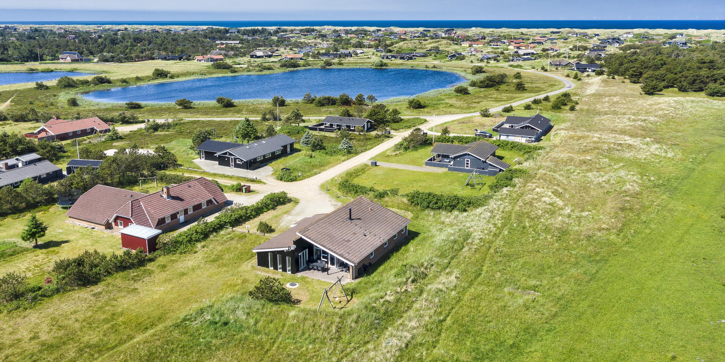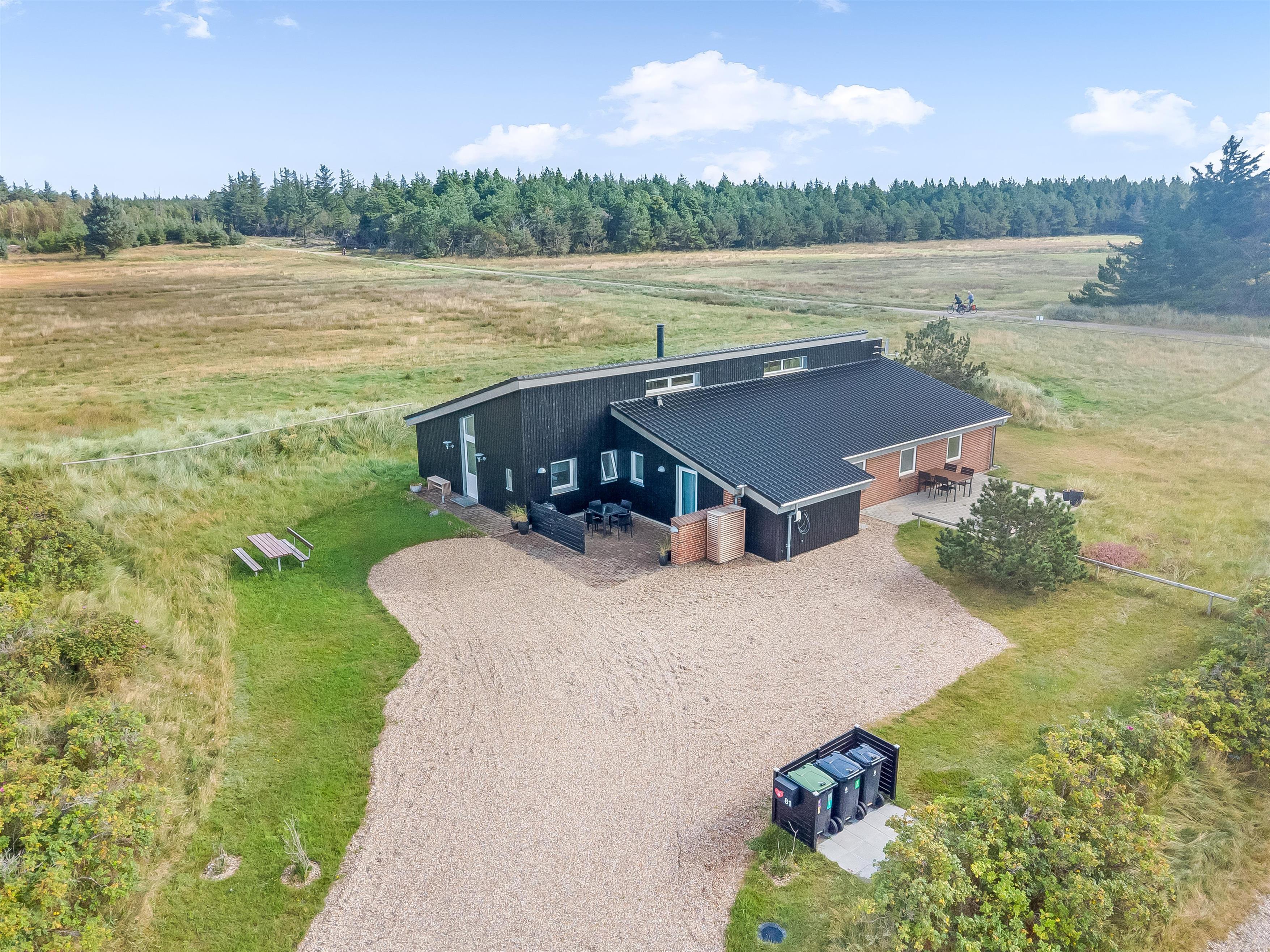 Lyst renoveret poolhus til 10 personer, beliggende i en lomme på en blind vej. Sommerhuset er placeret på en 2310 m2 stor naturgrund med ca. 1200 meter fra stranden. Grunden er op grænsende til skoven og cykelsti mod Filsø og Henne Strand. Bagved huset er der en stor græsmark hvor kronvildtet ofte græsser.