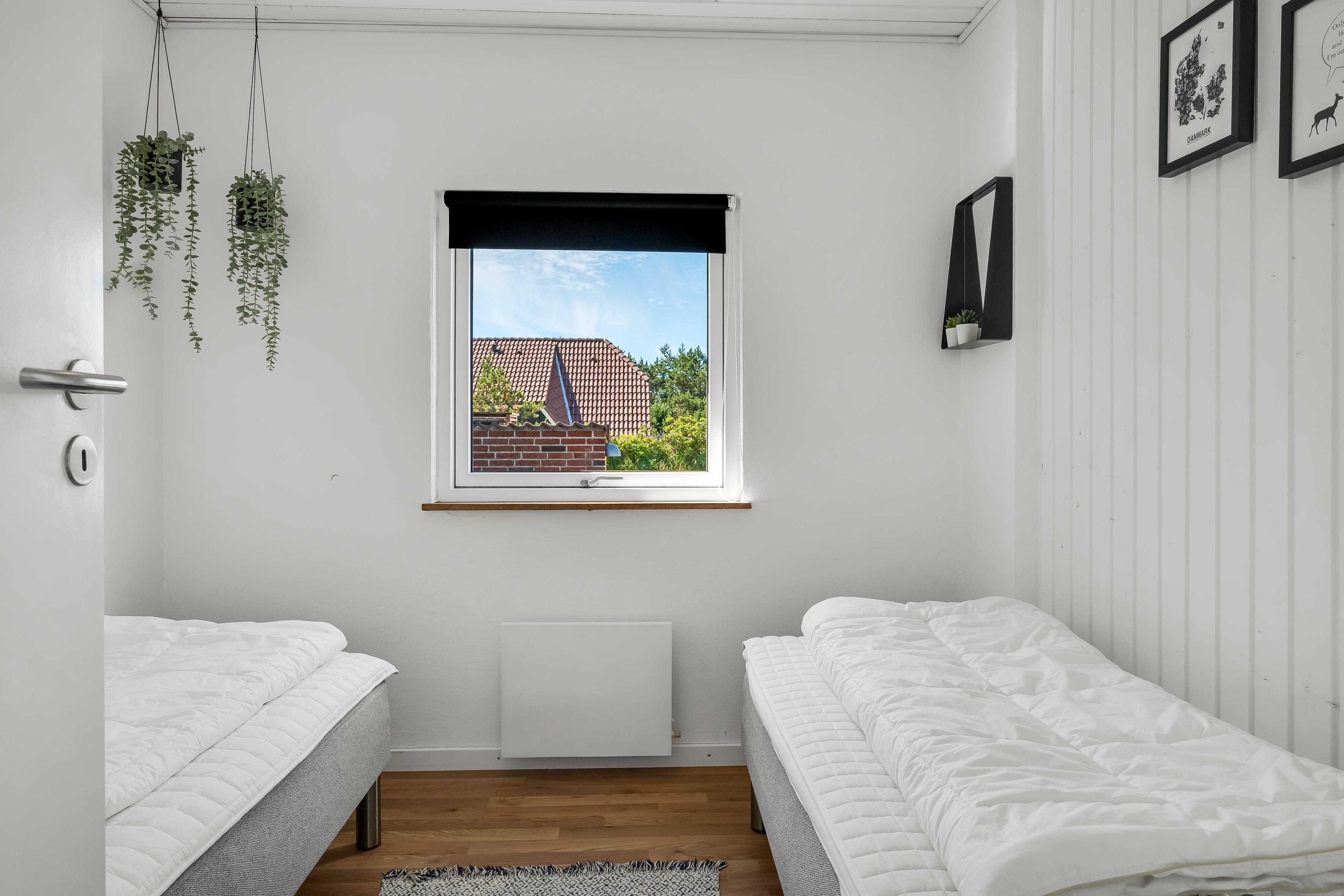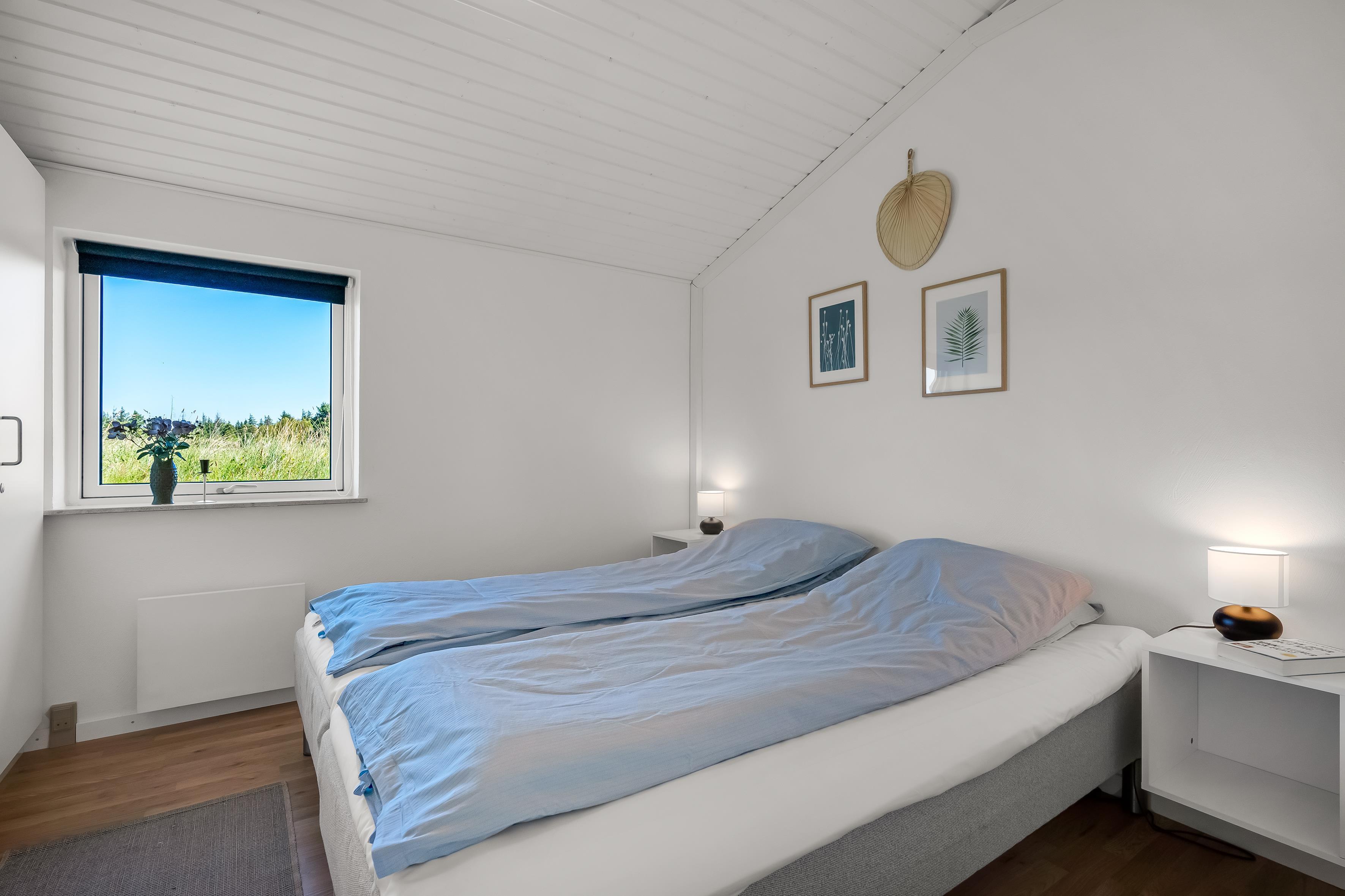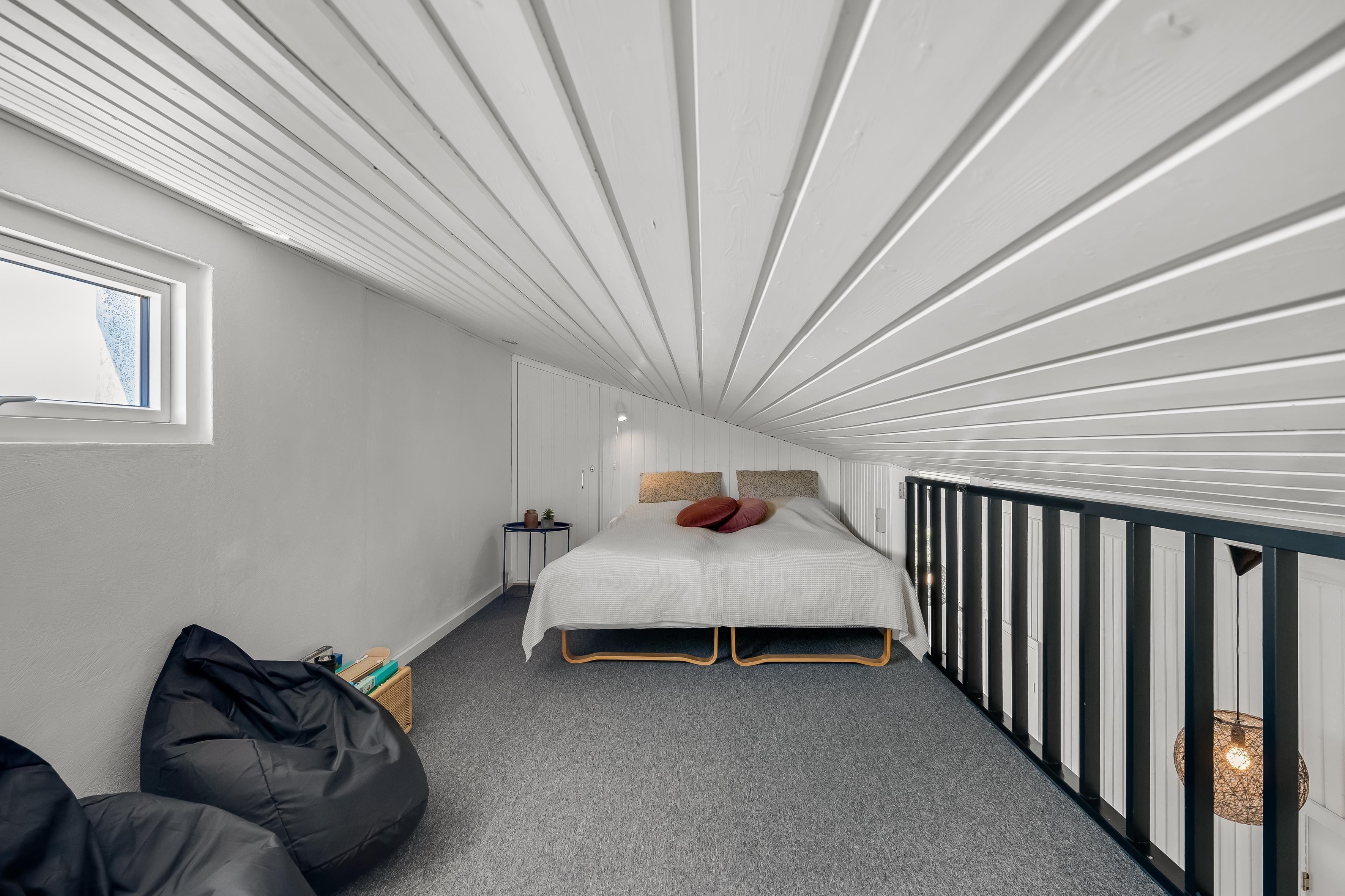 5 soveværelser. 2 med dobbeltseng 180x200 cm. 3 hver med 2 enkeltsenge (á 90x200 cm)