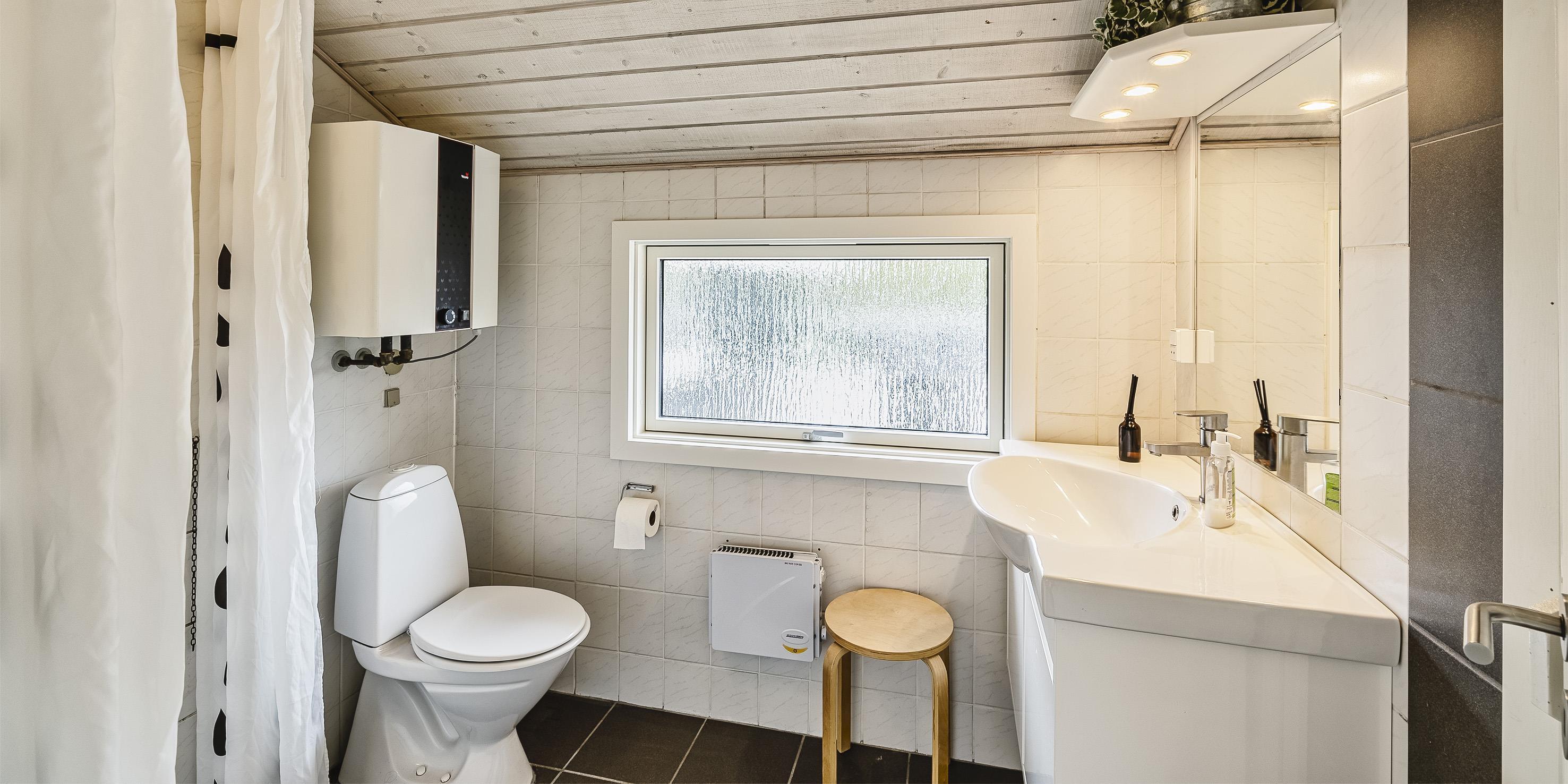 Bad med toilet, bruser og vask