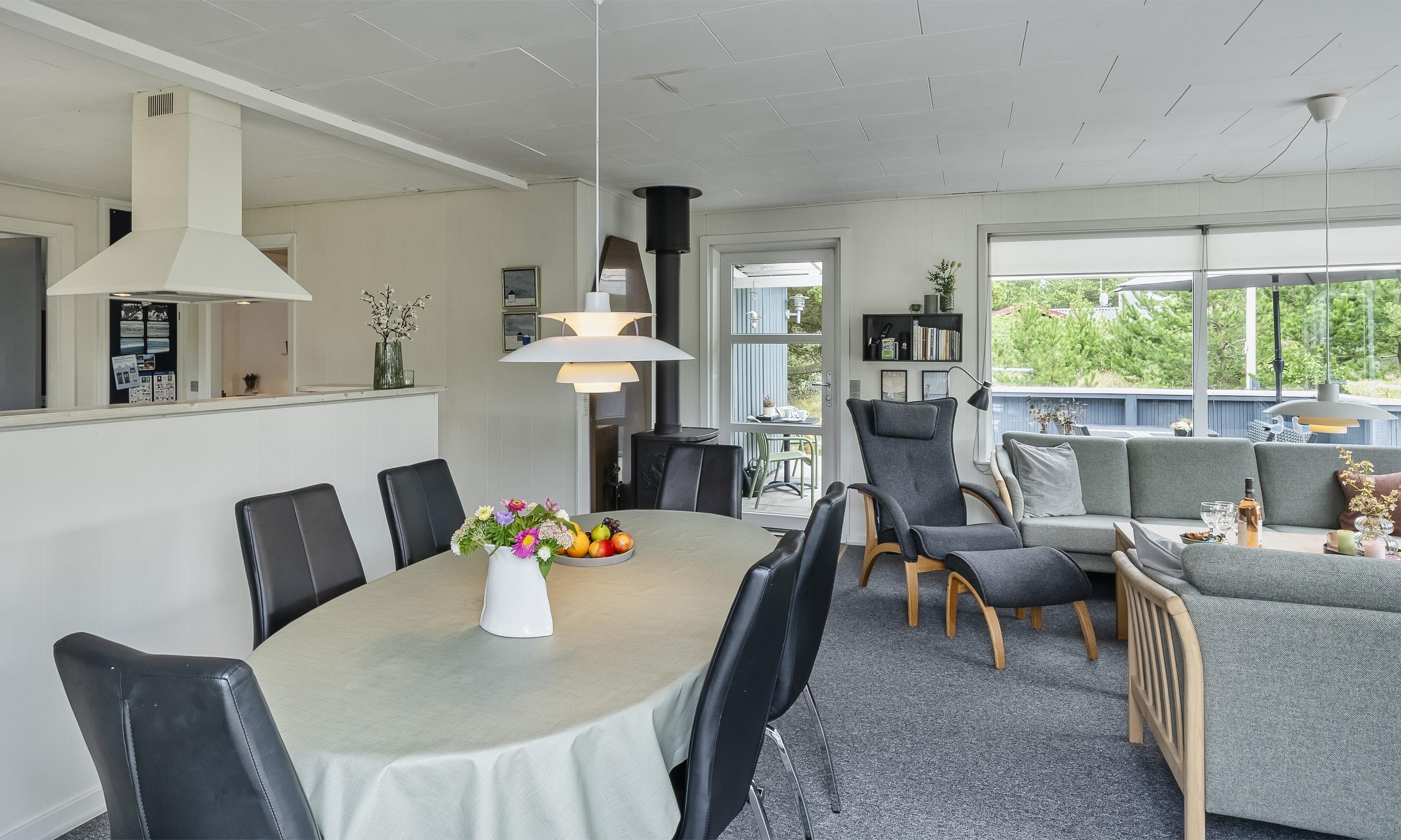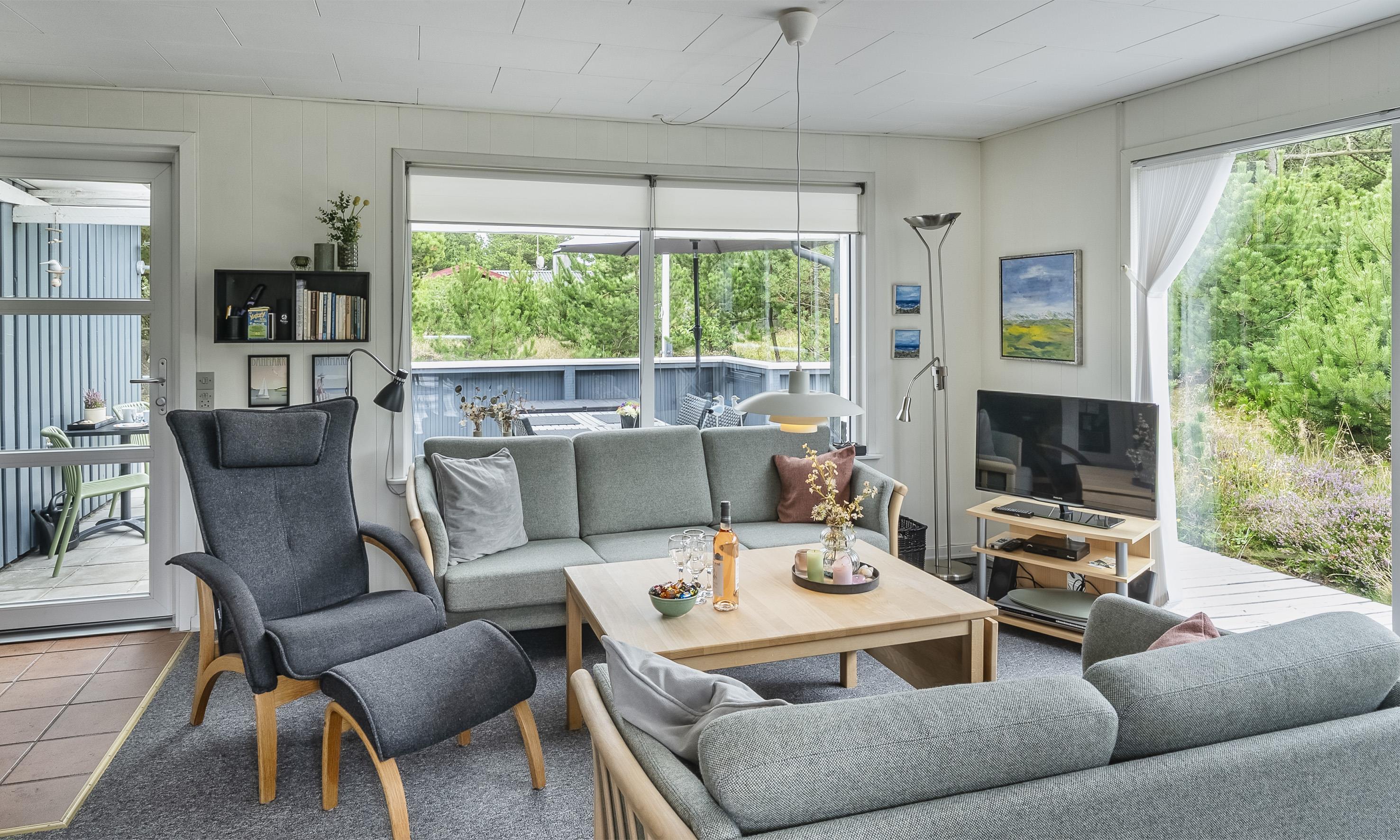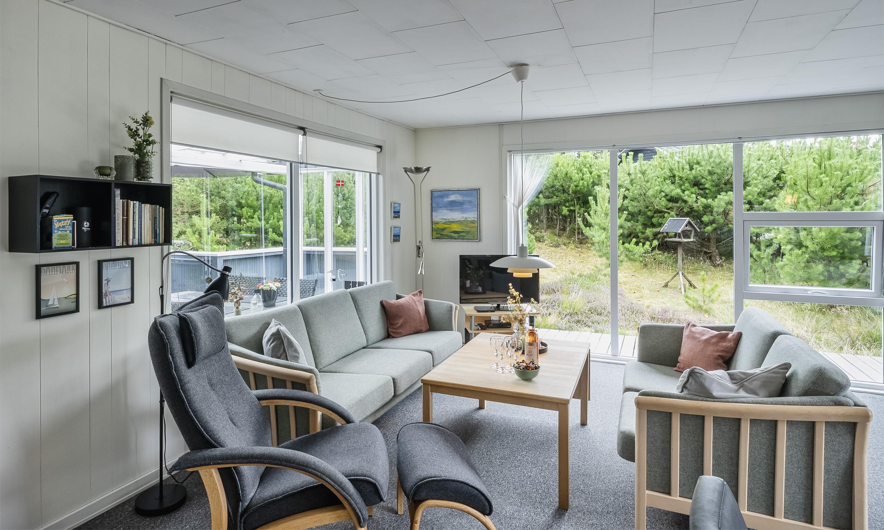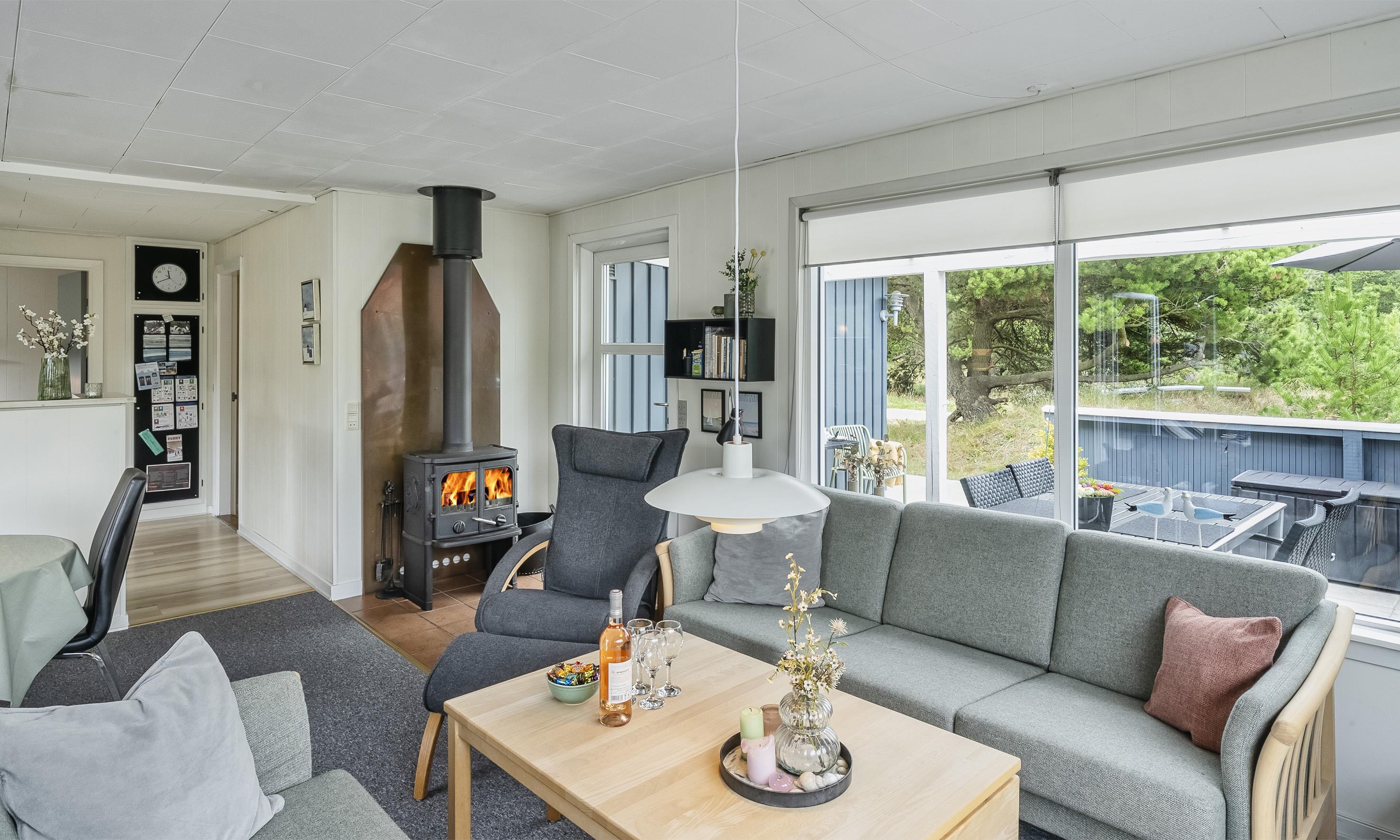 Smagfuldt sommerhus til 6 personer, beliggende på lukket naturgrund, ca. 800 meter fra stranden. Stue med fjernsyn med DR-programmer, Chrome Cast og Smart TV og parabol. Lyst, funktionelt og veludstyret køkken med bl.a. opvaskemaskine og mikroovn. Brændeovn og energivenlig varmepumpe. Badeværelse med gulvvarme, bruser, toilet, spa og sauna. Vaskemaskine og tørretumbler. 3 soveværelser: DS + DS + DS. Delvis lukket terrasse. En del af terrassen er overdækket. Gynger med legetårn. Husdyr er ikke tilladt! Trådløs Internetadgang. Rygning udenfor huset er tilladt. Byggeår 1969. Løbende vedligeholdt!