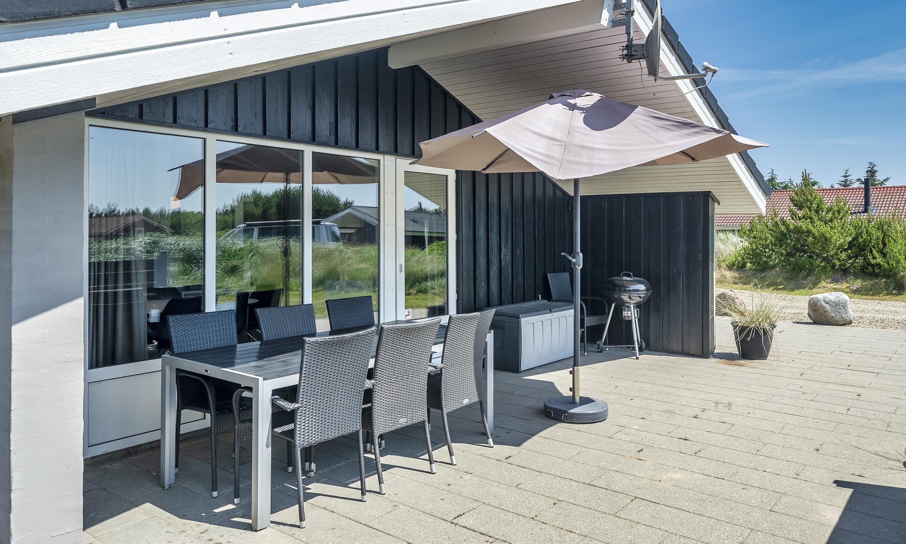 Huset ligger fredeligt placeret for enden af en blind vej i et naturskønt område, kun ca. 800 meter fra den brede, hvide sandstrand og det brusende Vesterhav.