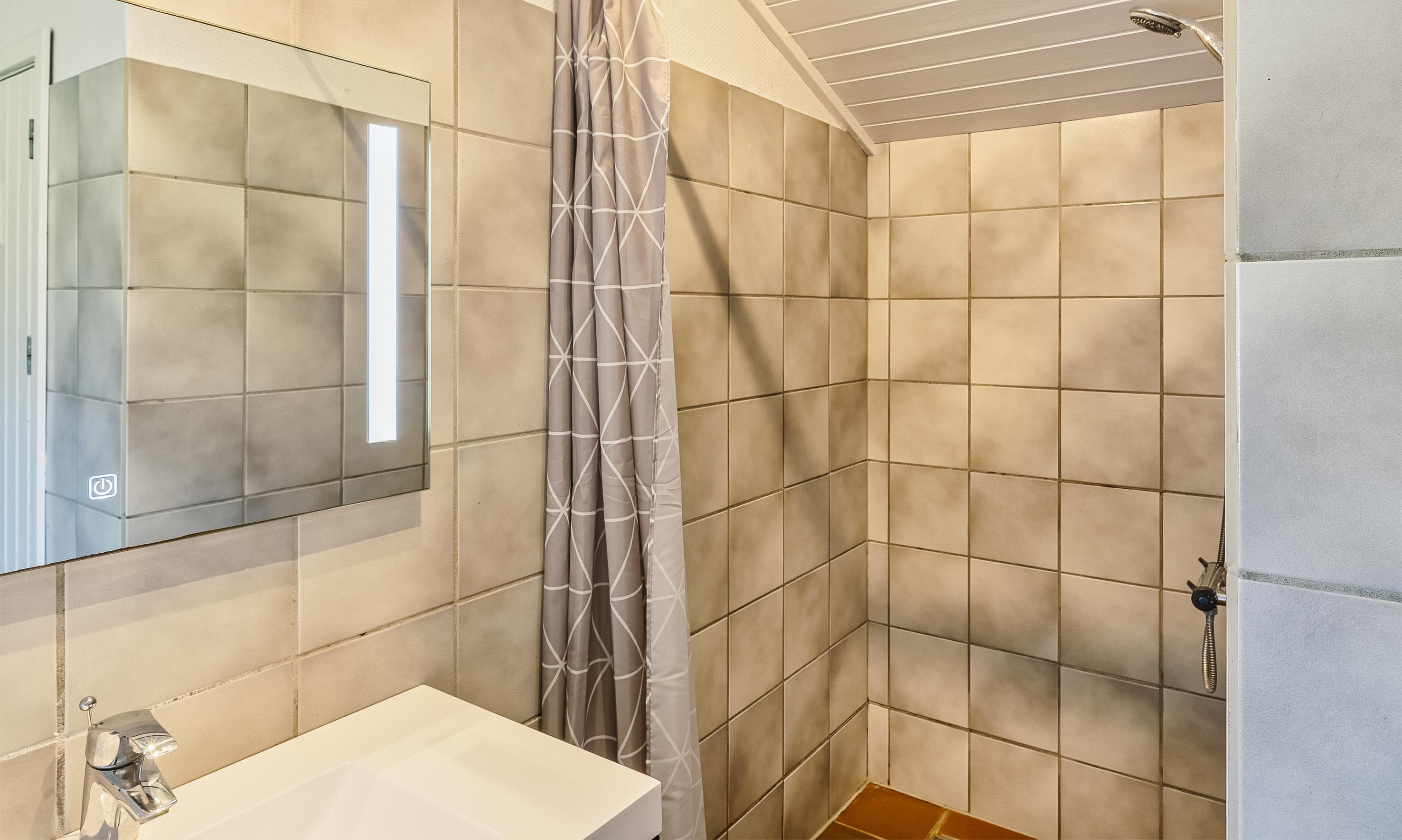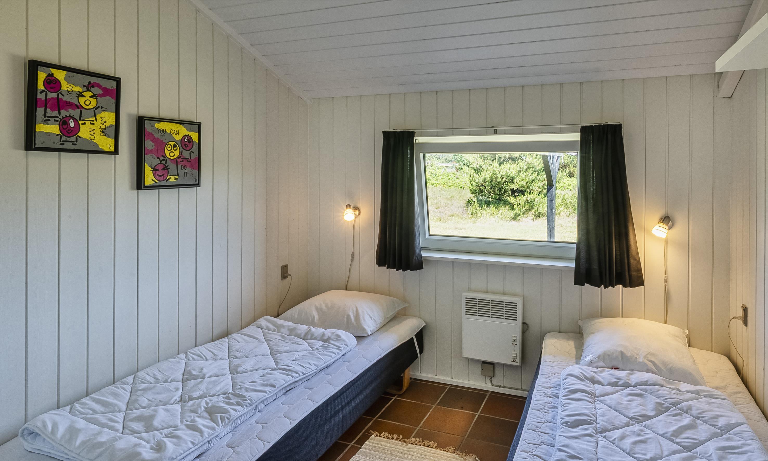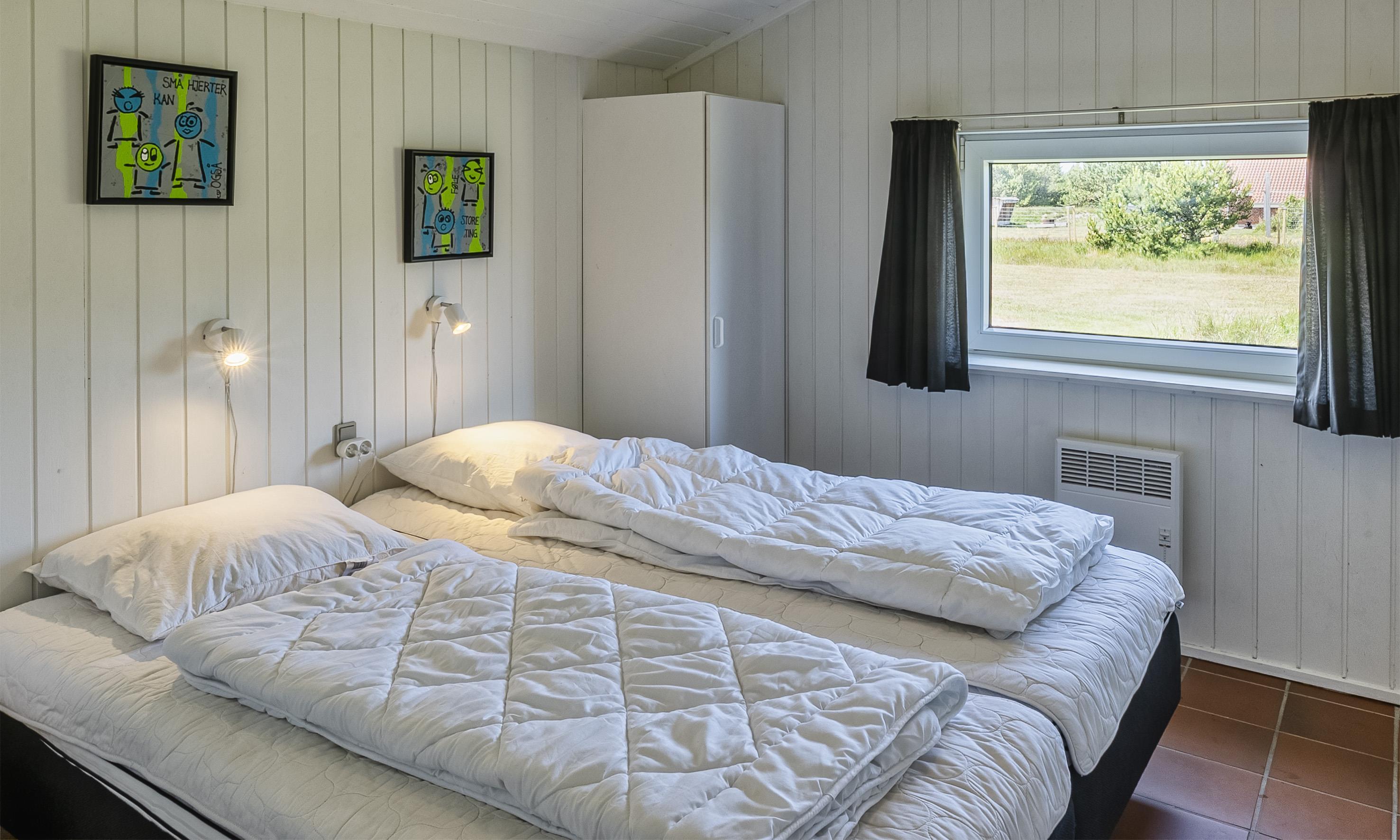 Huset rummer i alt 4 gode soveværelser: 2 med dobbeltsenge (DS+DS) og 2 med hver 2 enkeltsenge (2ES+2ES), hvilket gør det oplagt til både familier og vennepar. Der er to badeværelser med gulvvarme – det ene med bruseniche, toilet, spa og sauna, det andet med toilet og bruser – så komforten er i top, selv når flere skal dele huset.