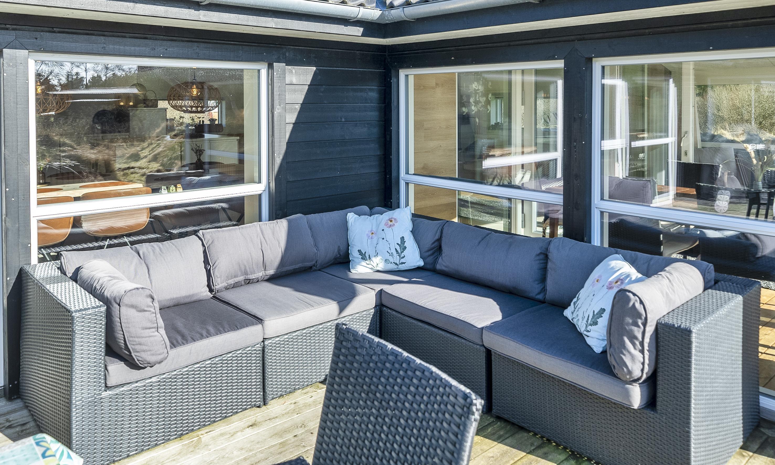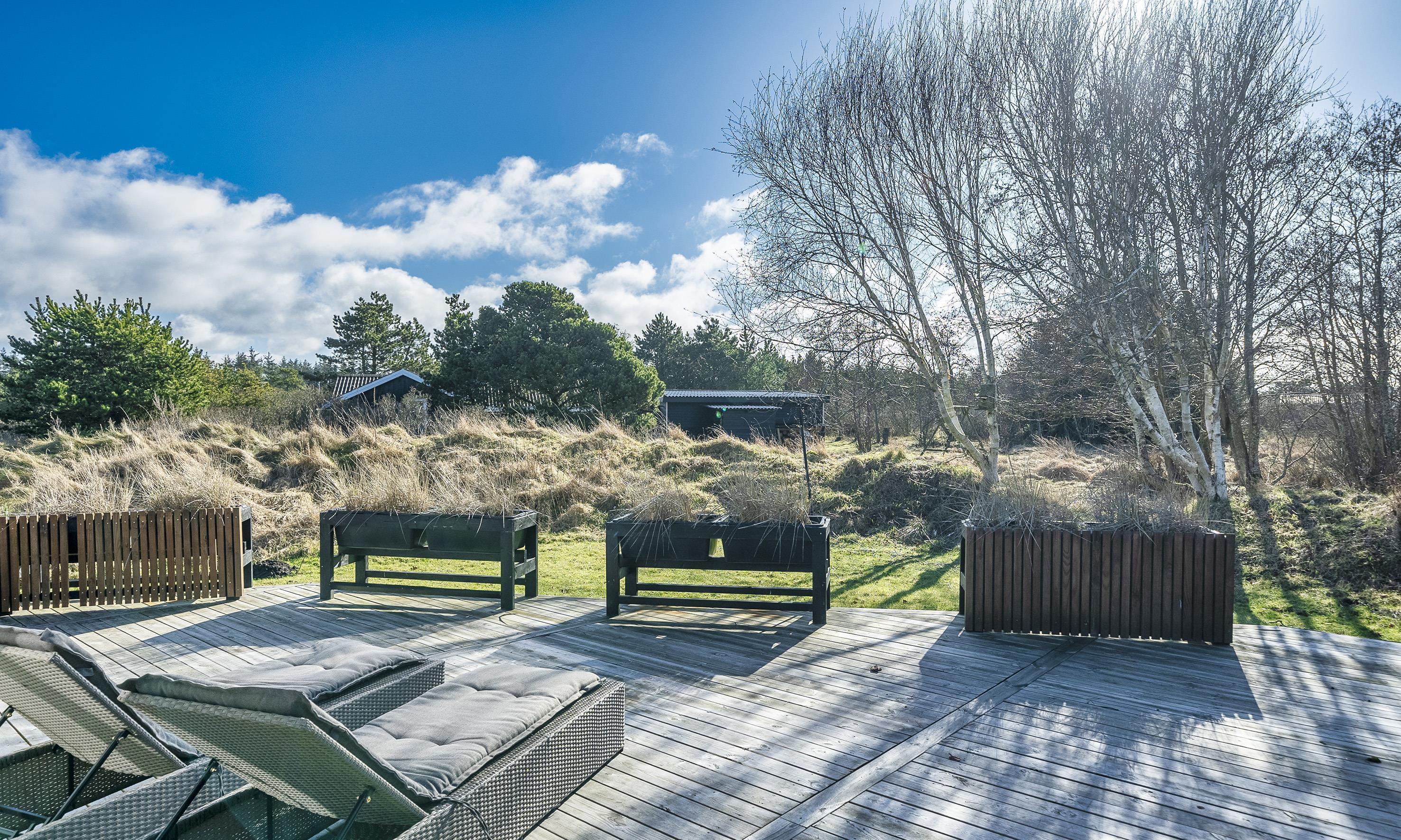 Rundt om huset er der flere gode og læfulde kroge og terrasser.