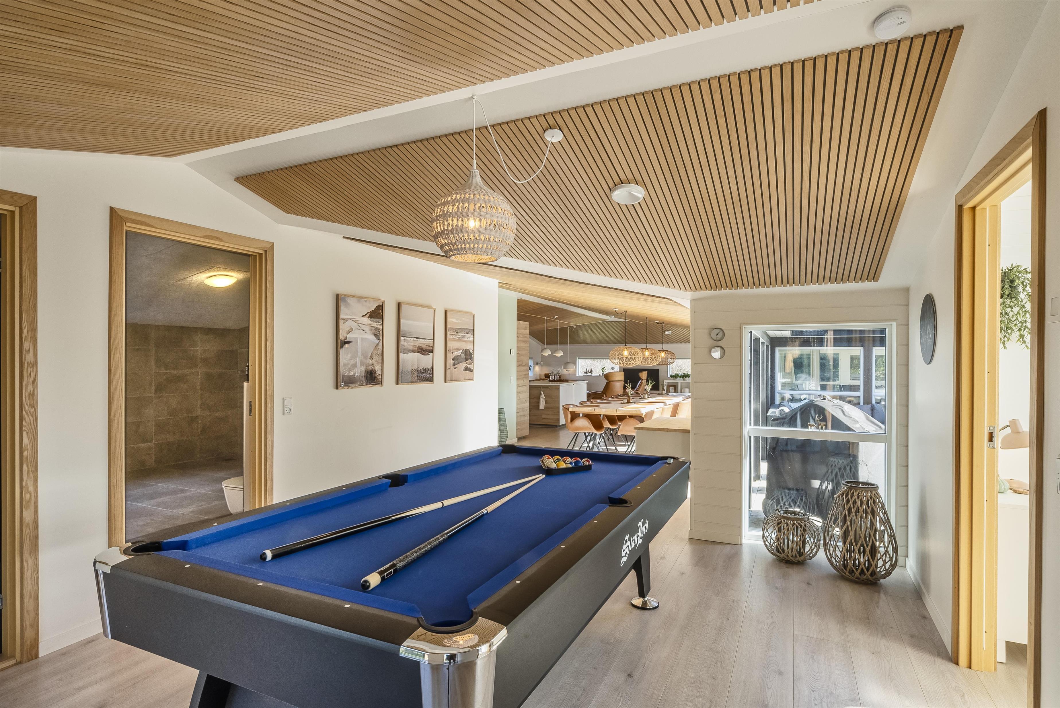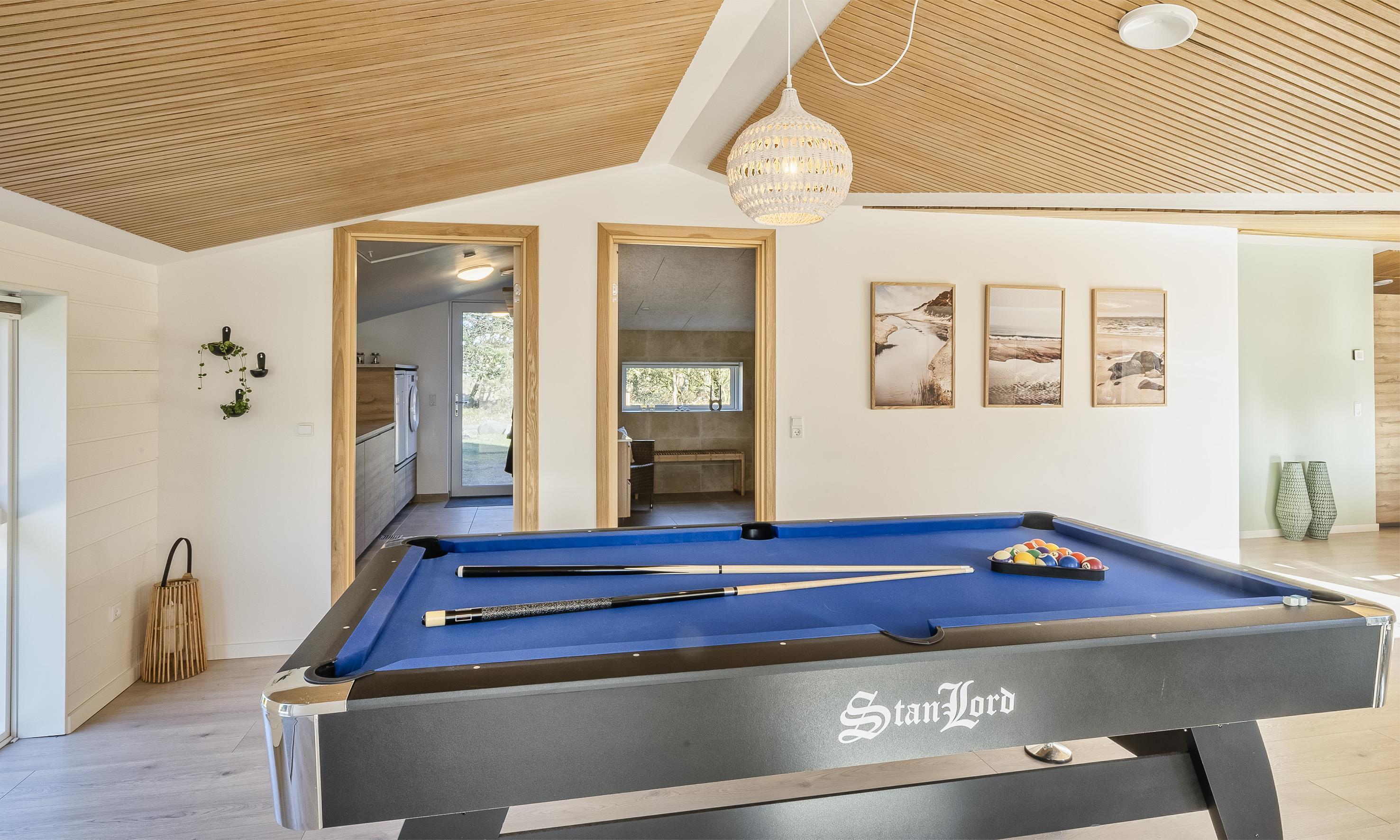Huset fremstår som nyt, med gulvvarme overalt. Er indrettet med stor praktisk entre/bryggers med god plads til overtøj og fodtøj, vaskemaskine og bordplade. Funktionelt køkken med ø, spiseplads og stue samt alrum med poolbord. Stort badeværelse med bruser og sauna. 3 soveværelser med 6 sovepladser i alt - DS + DS + 3/4 seng. Derudover dejlig og hyggelig udestue med et fantastisk lysindfald.