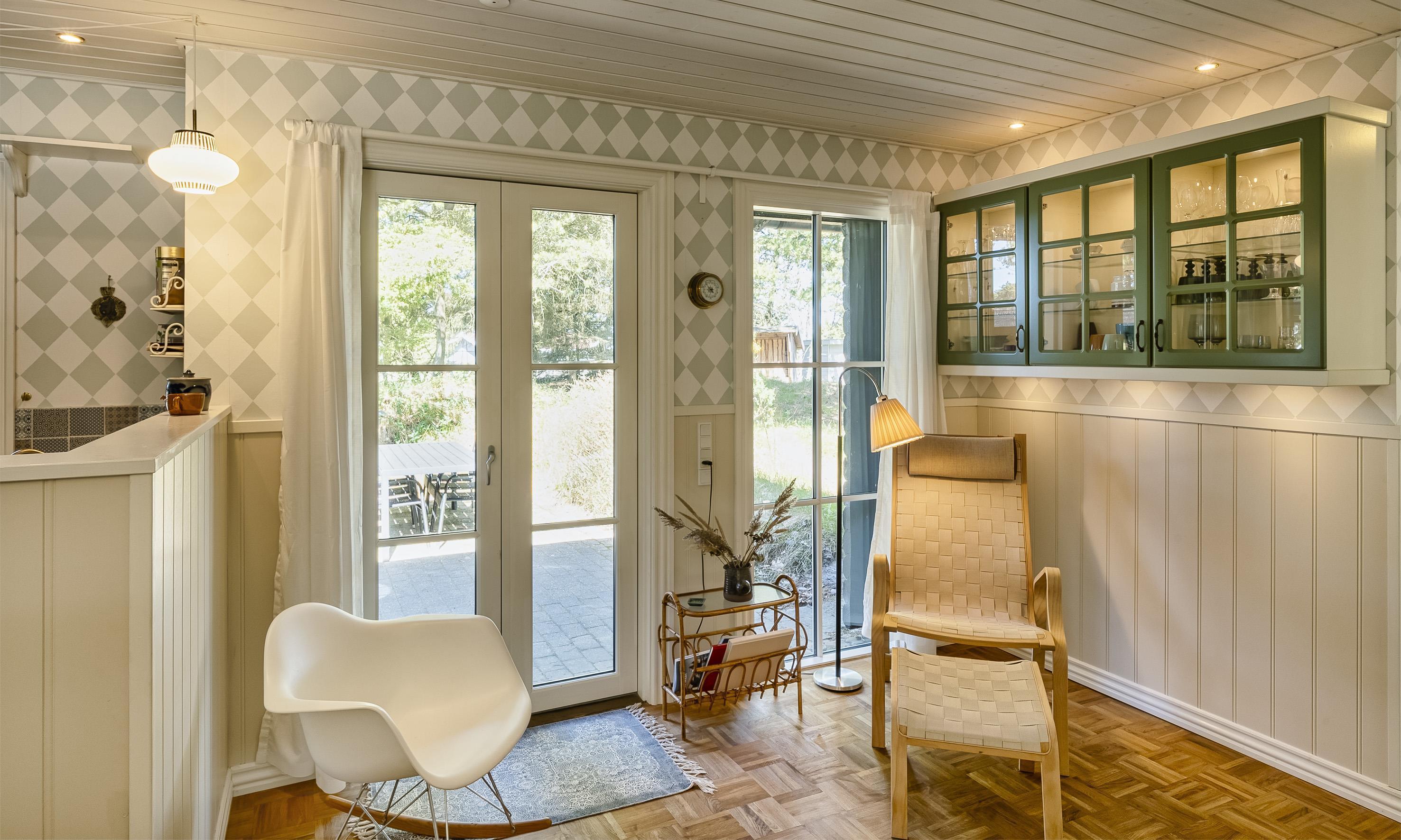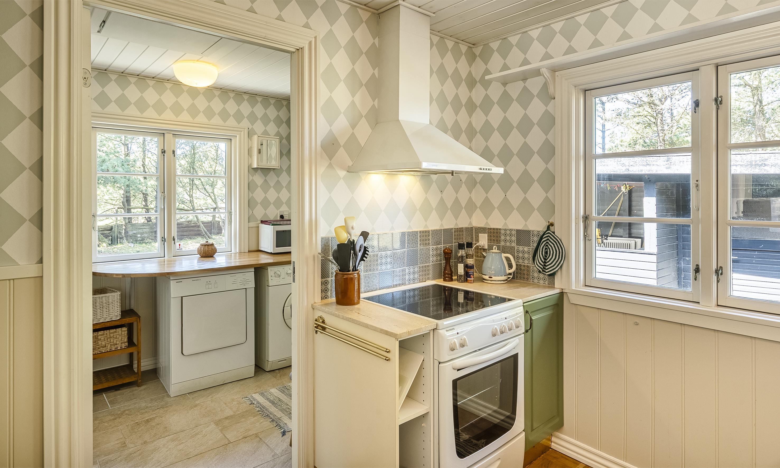Huset fremstår med indgang/entre med bryggers med vaskemaskine og tørretumbler. Gulvvarme i gangen. Fra entreen kommer man ind til husets skønne køkken-alrum. Køkkenet er renoveret og fremstår i romantisk landkøkkenstil. Her finder man alt hvad hjertet begærer såsom opvaskemaskine, komfur med keramisk kogeplade, mikroovn og køle-/fryseskab. Køkkenet er i åben forbindelse med huset opholdsrum, der fremstår med stor spisebordsplads, hvorfra middagen kan nydes med udsigt til haven. Der er ydermere udgang til en morgenterrasse mod øst og til en vestvendt terrasse fra et lille hyggehjørne i forbindelse med køkkenet. Sofahjørne med Smart-TV, brændeovn og kig ud af den store dobbeltdør til den østvendte terrasse. Varmepumpe. Trådløs internetadgang. Huset råder ydermere over 3 hyggelige soveværelser: DS + DS + 2S. Badeværelse med bruser, wc og skabs arrangement. 2 skønne terrasser. Et heraf er en nyanlagt træterrasse, som er i plan med huset, og hvor der er opgang til et vildmarksbad der opvarmes med brændeovn. (Det tager ca. 3 timer at varme vildmarksbadet op). En vestvendt terrasse der er total ugeneret og med god læ. Utrolig spændende naturgrund med rigt dyreliv omkranset med træer og udlagt med flere hyggekroge. En luksus udesauna med et stort glasparti hvorfra søen ved Jafdalvej kan observeres. Der forefindes en udvendig bruser med koldt vand.