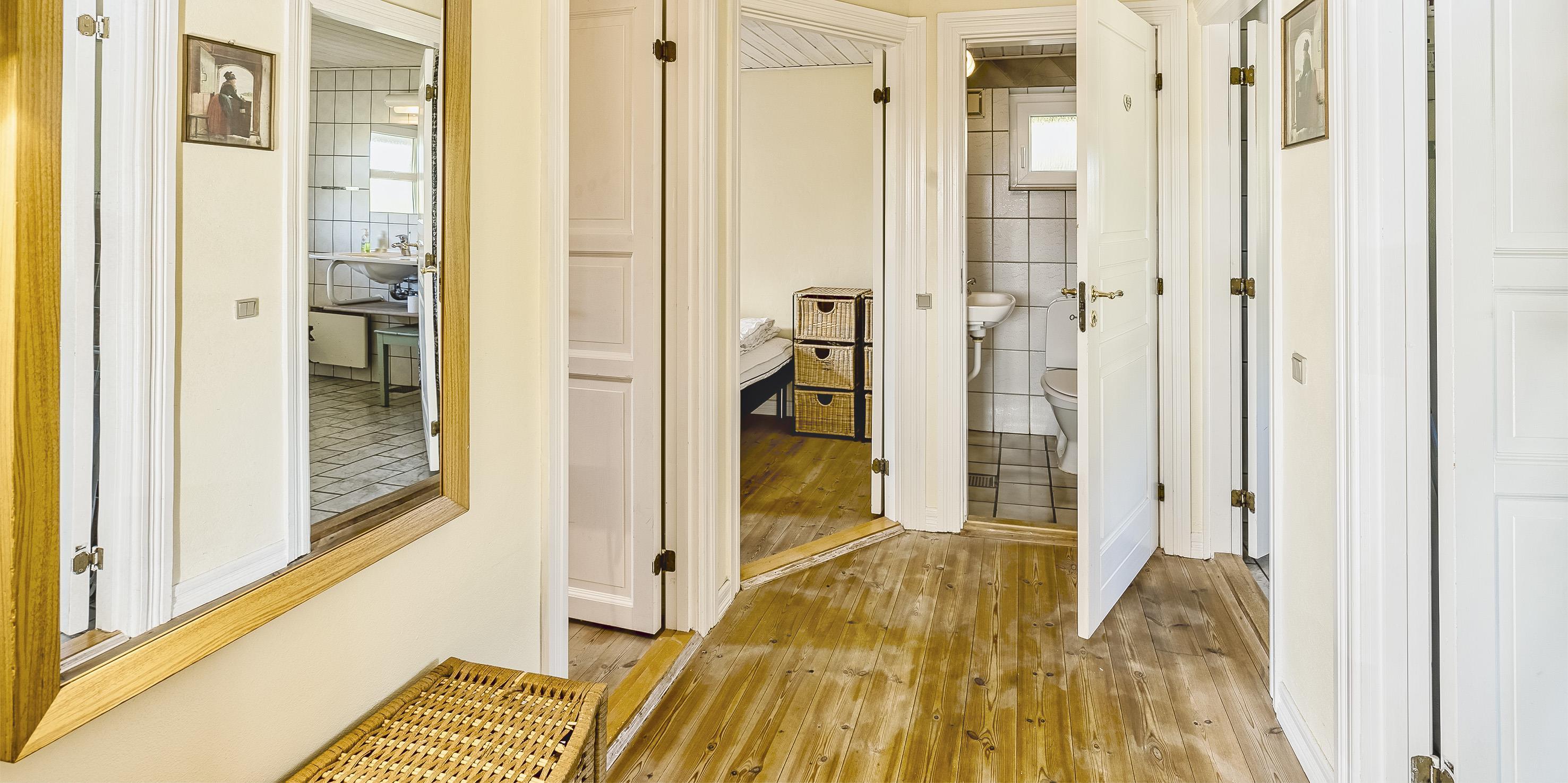 4 soveværelser. 1 med dobbeltseng 180x200 cm. 1 med smal dobbeltseng 120x200 cm. 2 med køjeseng.