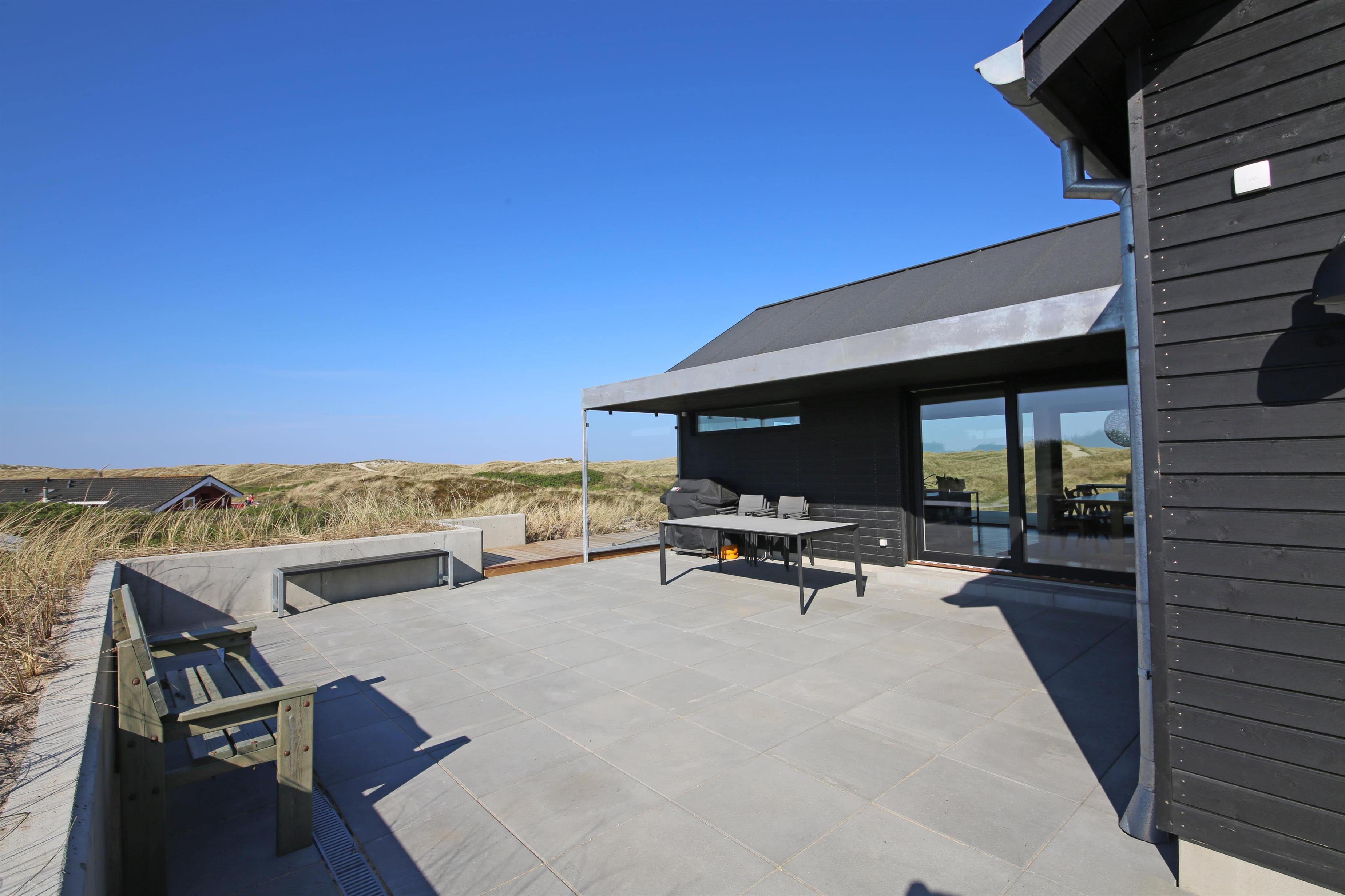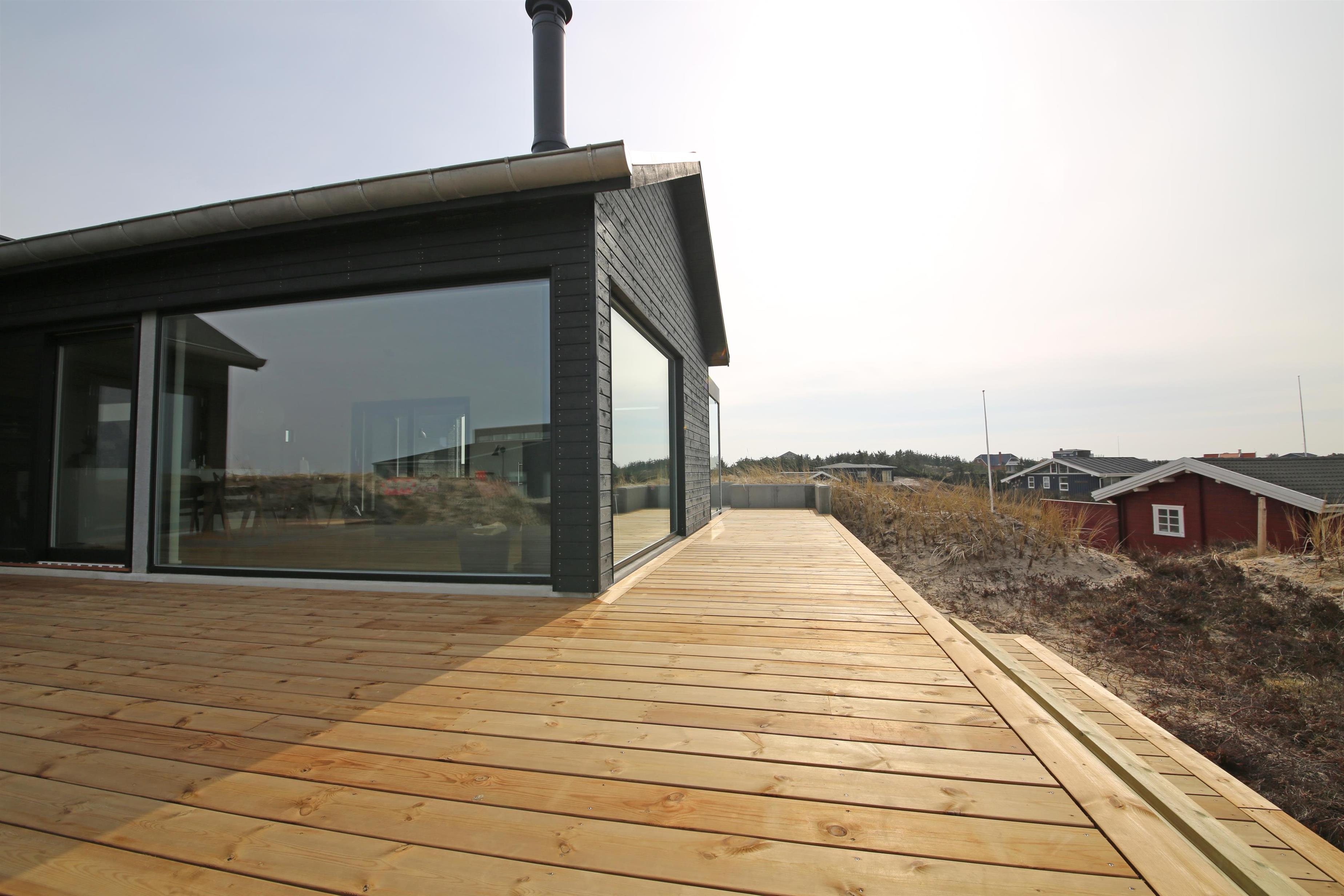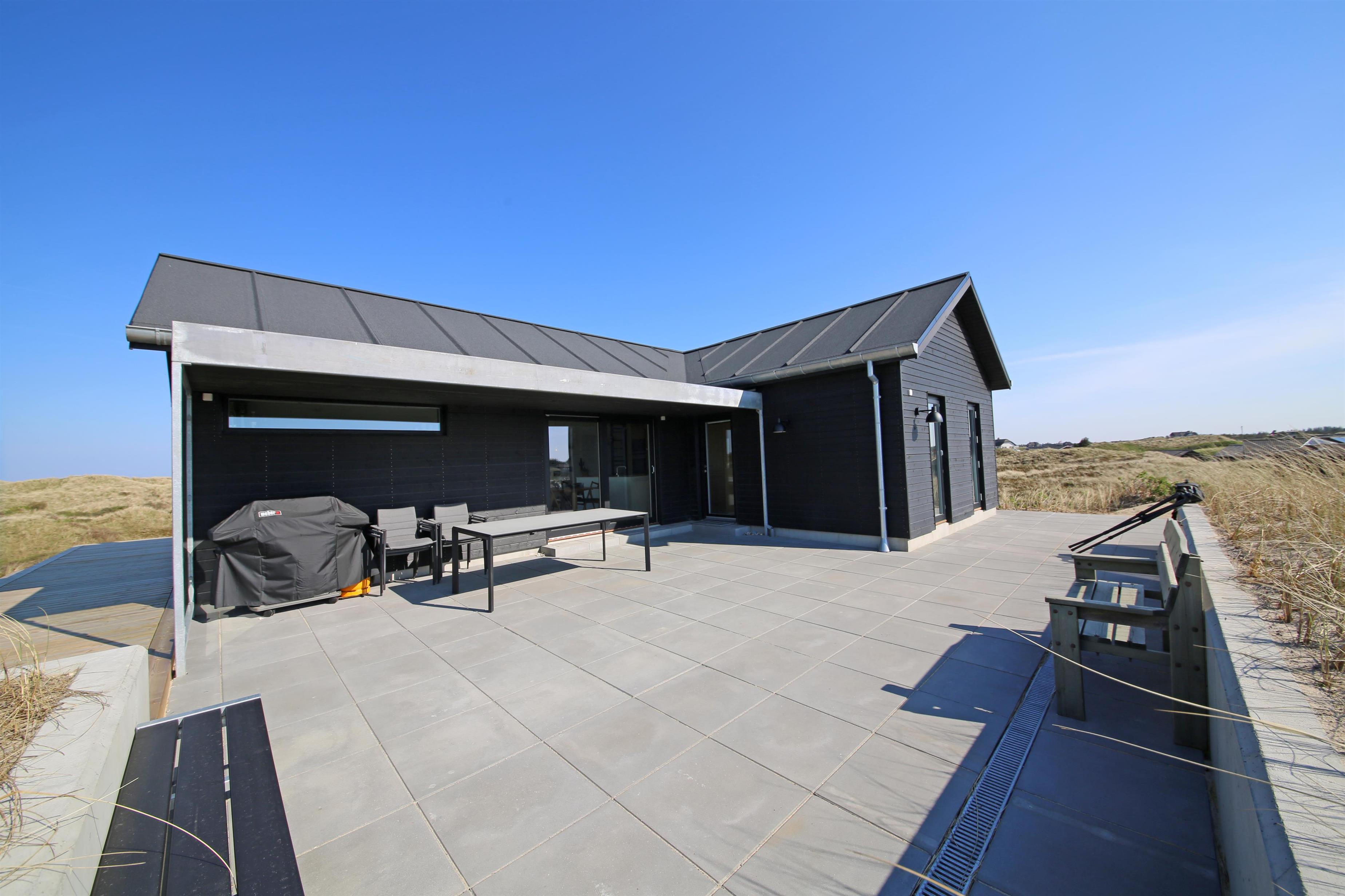 Meget flot nybygget lavenergi sommerhus til 6 fordringsfulde Vejers fans, beliggende på en naturskøn klitgrund, ca. 100 meter til stranden. Lys og venlig stue med brændeovn, fjernsyn (Stofa sommerhuspakke), netflix, Google Chromecast, playstation 4 samt åbent køkkenalrum med opvaskemaskine, mikroovn og køle-/frysekombination samt stor spiseplads. Trådløs Internetadgang. 3 soveværelser: DS + DS + 2S. 2 Badeværelser med bruser/wc. Vaskemaskine og tørretumbler. 3 store terrasser, heraf 1 delvis overdækket med gasgrill. Skur til opbevaring af cykler. Gulvvarme i hele huset. Rygning og husdyr er ikke tilladt! Byggeår 2016.