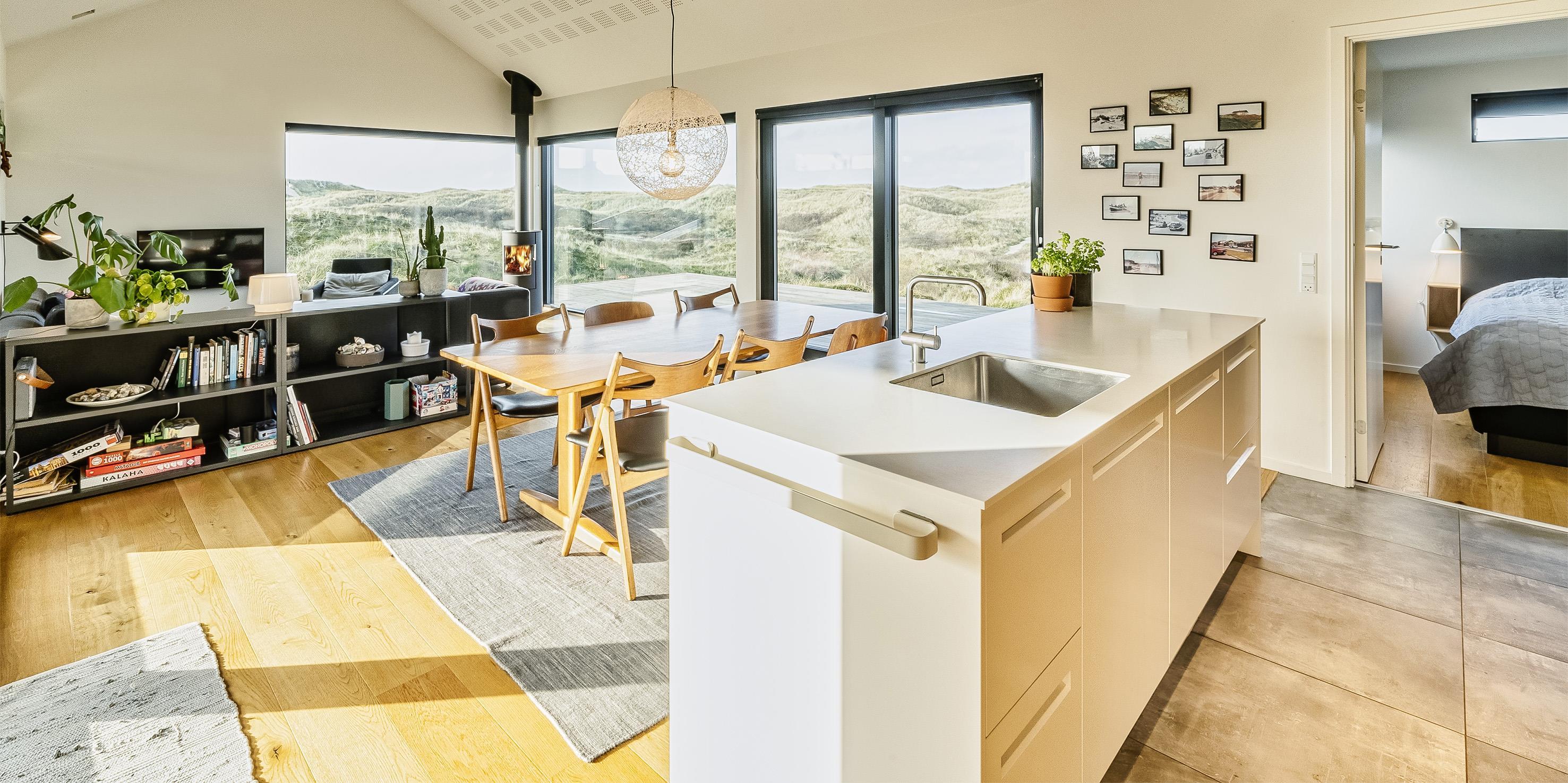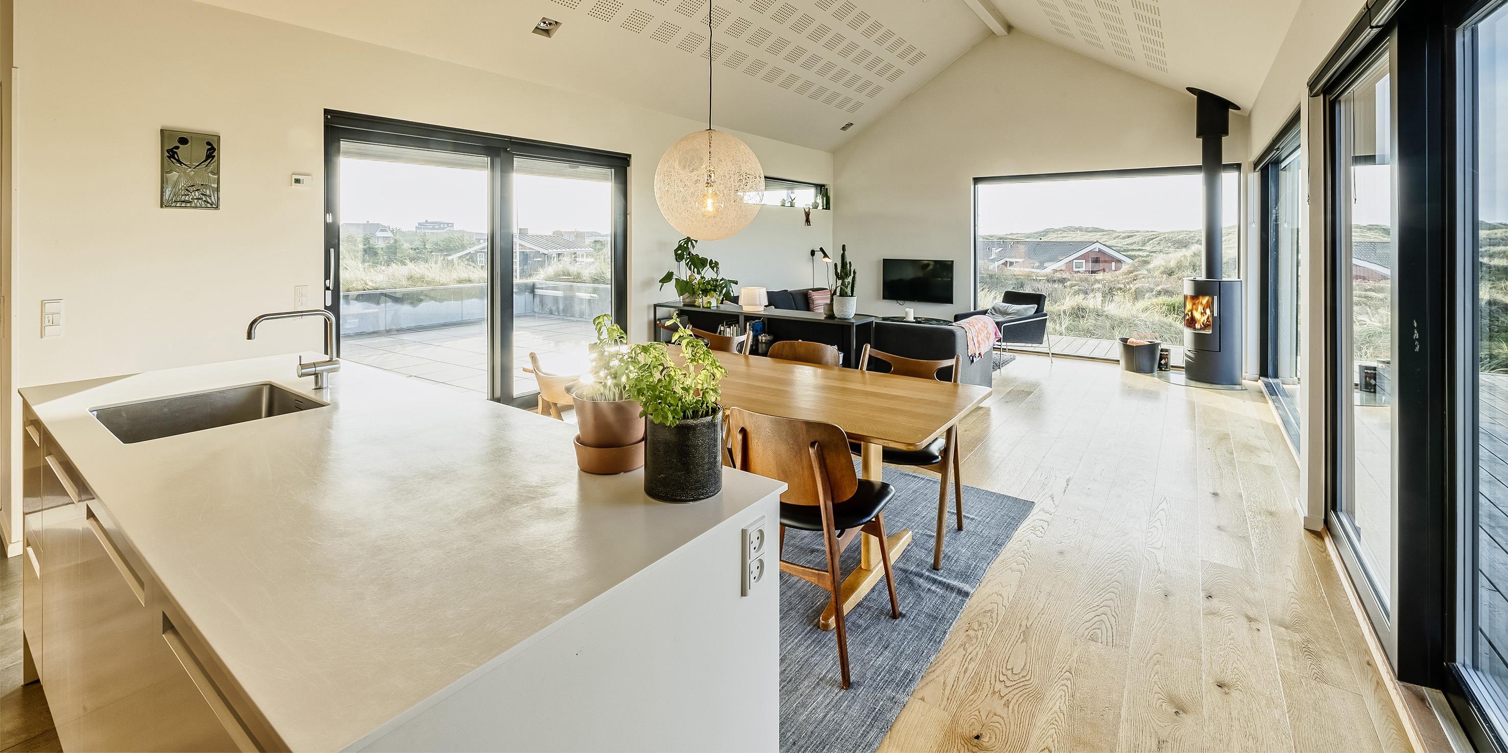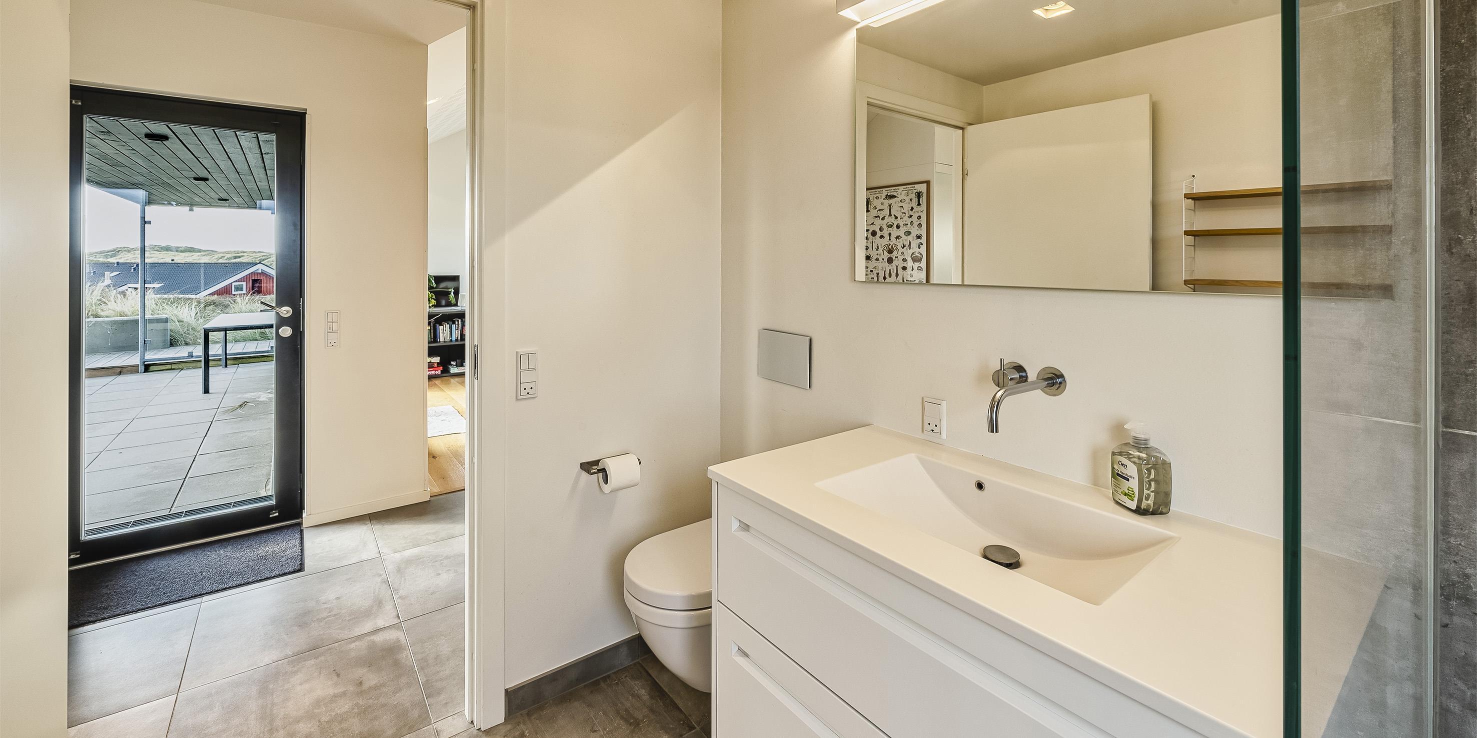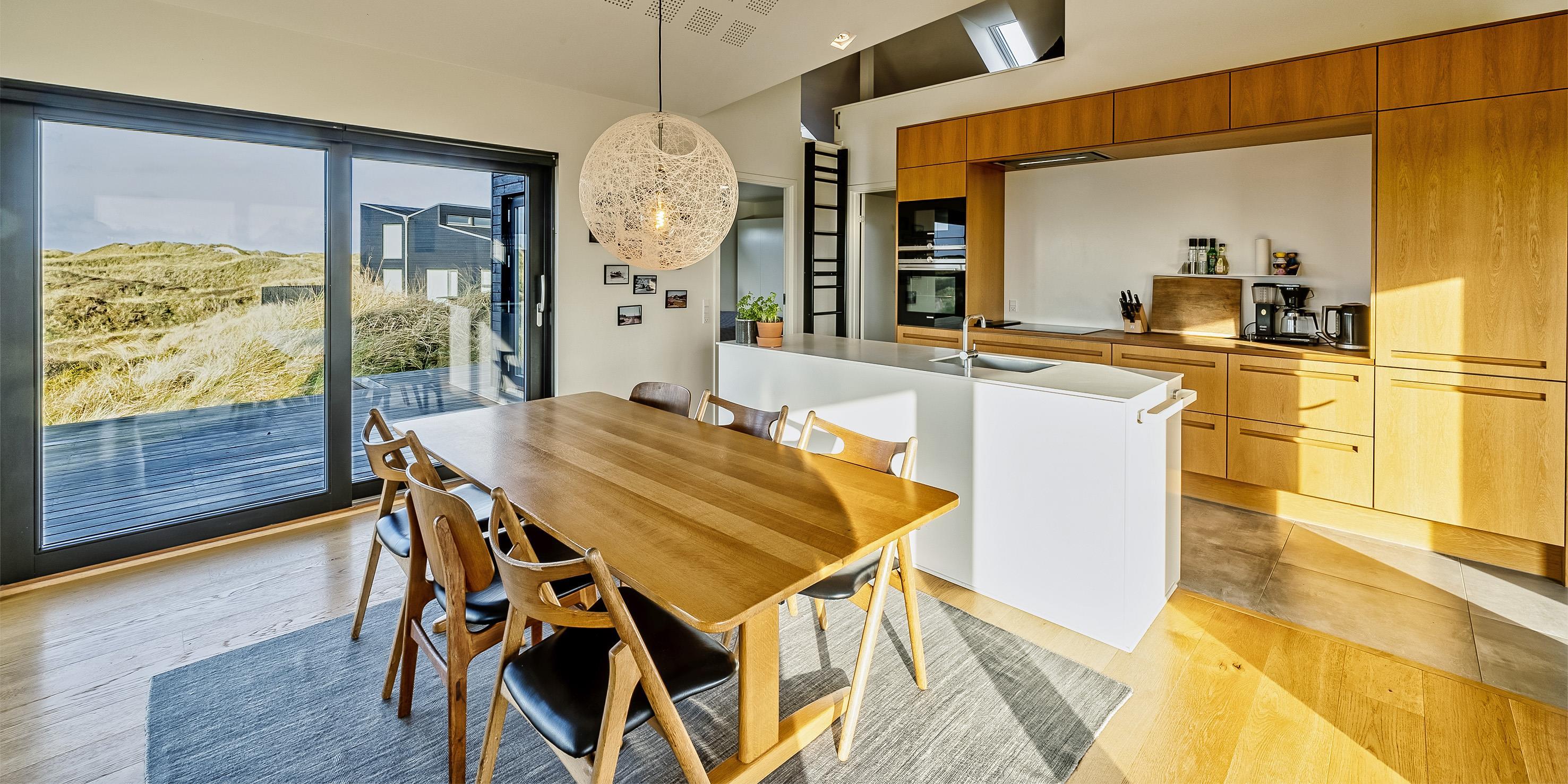Meget flot nybygget lavenergi sommerhus til 6 fordringsfulde Vejers fans, beliggende på en naturskøn klitgrund, ca. 100 meter til stranden. Lys og venlig stue med brændeovn, fjernsyn (Stofa sommerhuspakke), netflix, Google Chromecast, playstation 4 samt åbent køkkenalrum med opvaskemaskine, mikroovn og køle-/frysekombination samt stor spiseplads. Trådløs Internetadgang. 3 soveværelser: DS + DS + 2S. 2 Badeværelser med bruser/wc. Vaskemaskine og tørretumbler. 3 store terrasser, heraf 1 delvis overdækket med gasgrill. Skur til opbevaring af cykler. Gulvvarme i hele huset. Rygning og husdyr er ikke tilladt! Byggeår 2016.