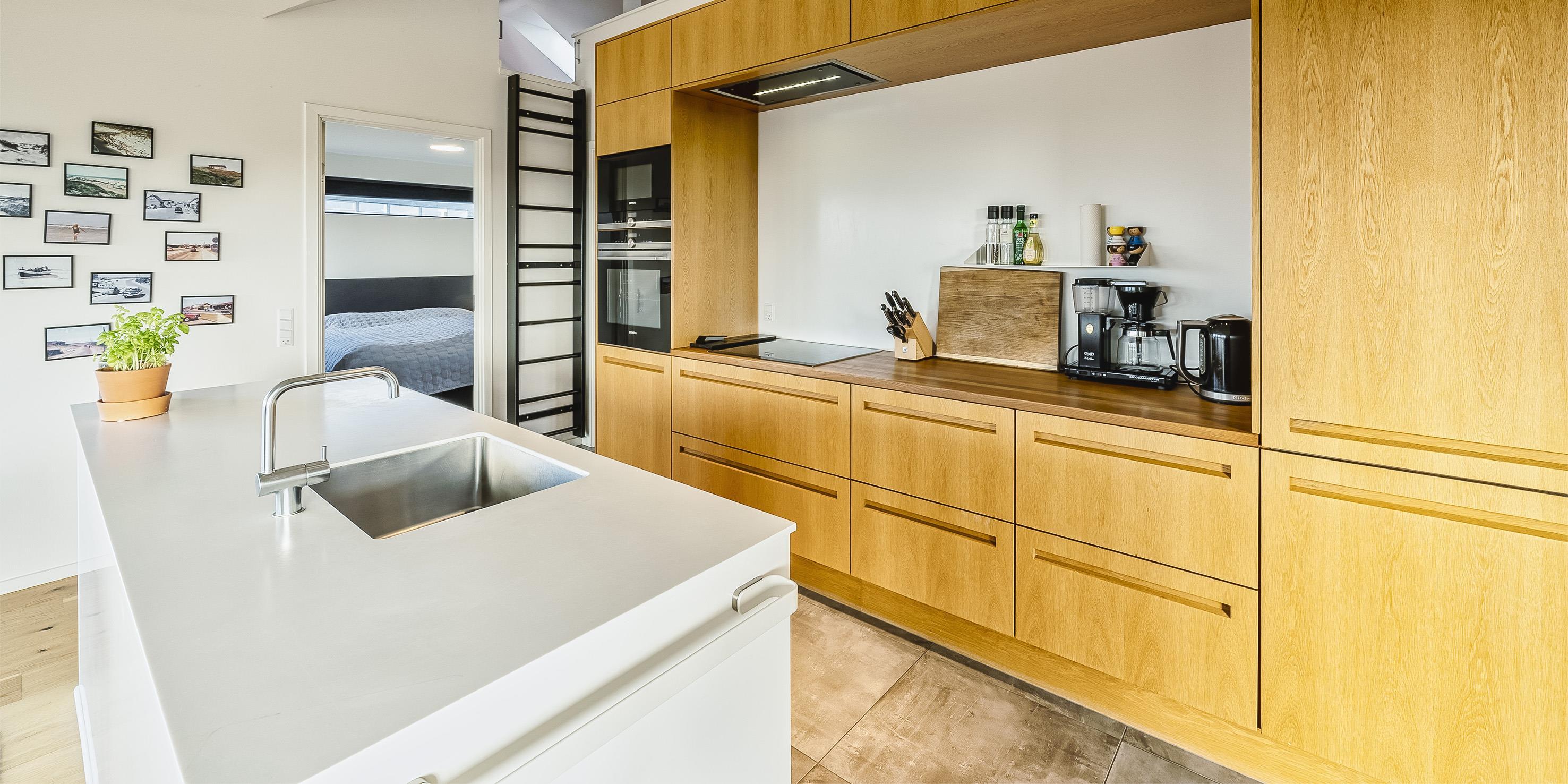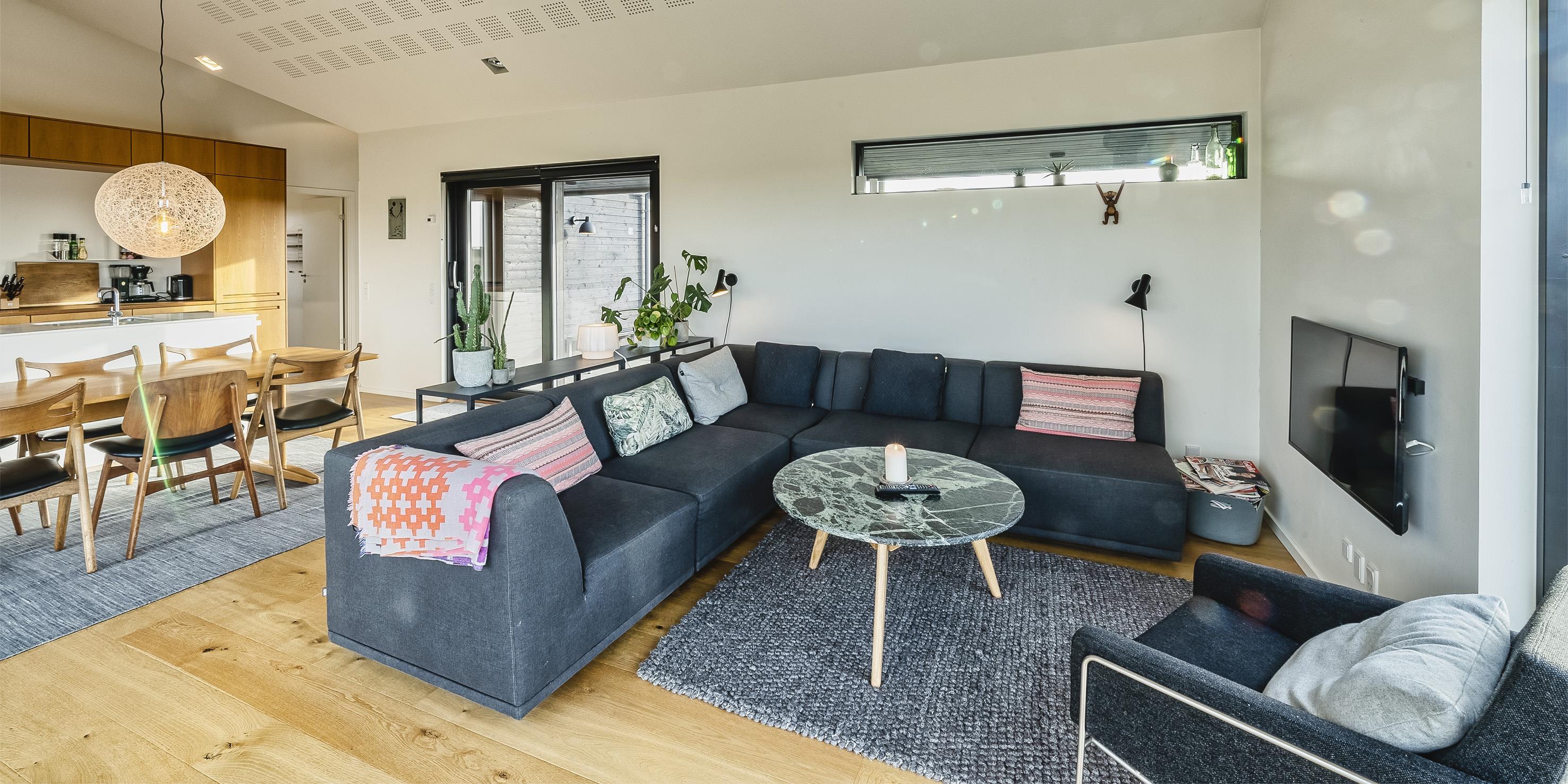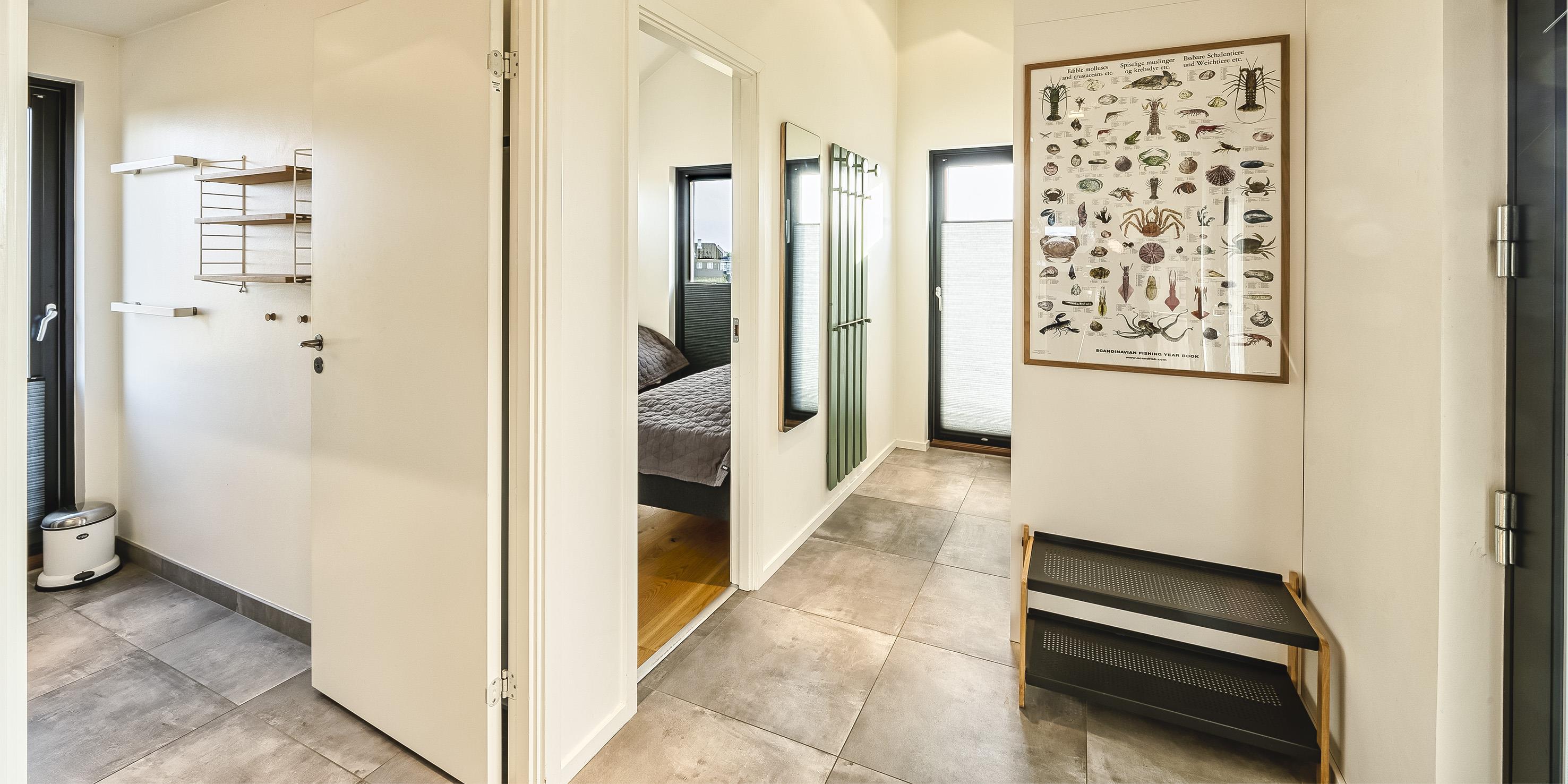 3 soveværelser. 2 med dobbeltseng 180x200 cm. 1 med 2 enkeltsenge (á 90x200 cm)