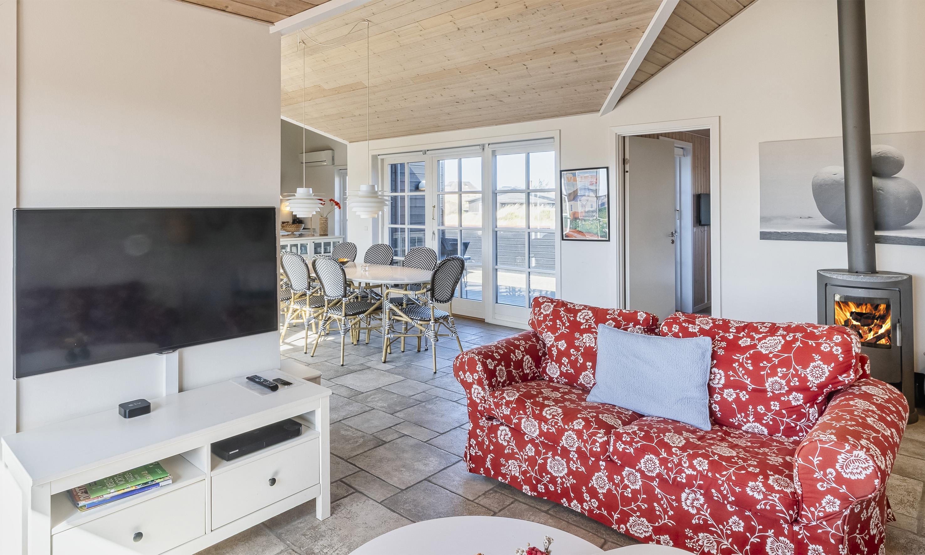 Meget flot sommerhus til 8 fordringsfulde personer, ca. 200 meter til stranden. Stue med brændeovn, Apple Tv, kabel tv (Stofa tv-pakke), Blu-ray afspiller og parabol. Køkken med opvaskemaskine og mikroovn. 4 soveværelser: DS + DS + DS + DS og Samsung Smart TV i alle værelser. 2 Badeværelser med bruser/wc, heraf det ene med spa og sauna. Vaskemaskine og tørretumbler. Trådløst Internet 1000/1000 Mb Wifi. Lego til børn. 3 store, lukkede træterrasser. Rygning er ikke tilladt. Handicapvenligt, dog med 2 trin ved hoveddøren. Byggeår 2008.