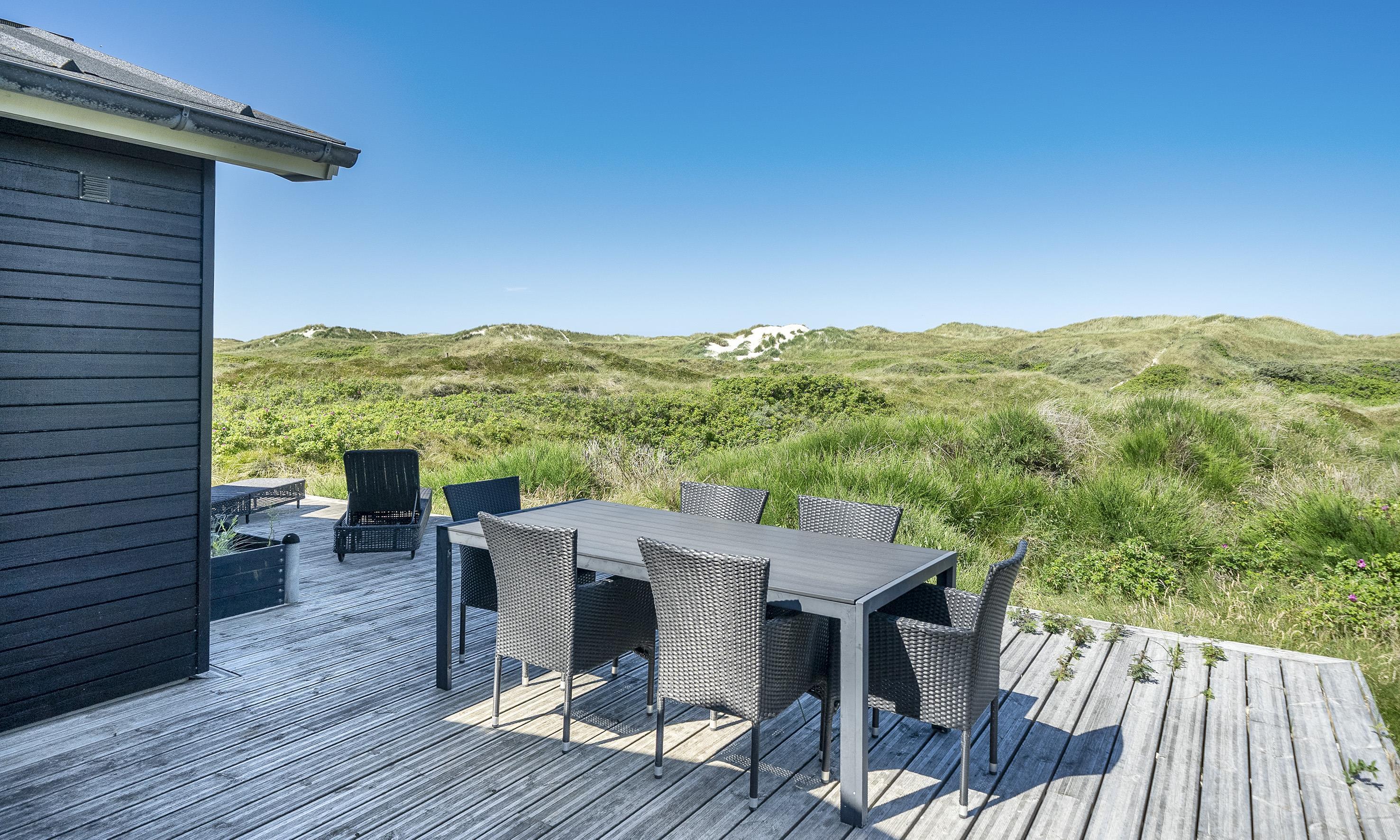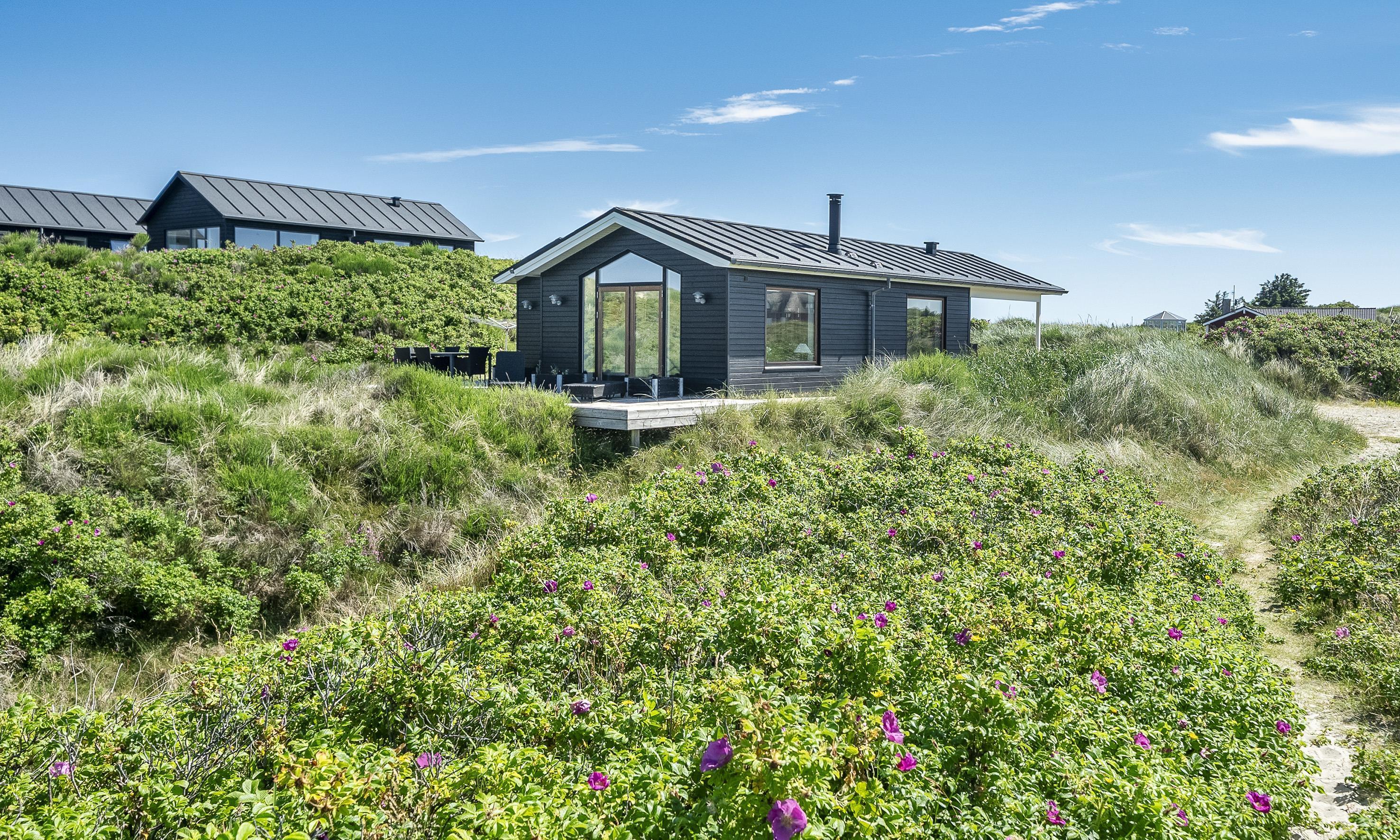 Meget flot nybygget lavenergi sommerhus til 8 fordringsfulde Vejers fans, beliggende på en naturskøn klitgrund, ca. 75 meter til stranden. Lys og venlig stue med panoramaudsigt over klitterne, brændeovn og fjernsyn med danske kanaler og 6 tyske kanaler (Stofa sommerhuspakke). Åbent køkkenalrum med opvaskemaskine, Quooker, mikroovn og køle-/frysekombination samt stor spiseplads. Trådløs Internetadgang. 4 værelser: DS + DS + 3/4 DS + 3/4 DS. Rummeligt badeværelser med bruser/wc, spa og sauna. Gæstetoilet med bruser/wc. vaskemaskine med tørretumbler. Flere terrasser, heraf 1 delvis overdækket. Gulvvarme i hele huset. Udebruser til brug om sommeren. Der er kun tilladt én hund, hunden må ikke komme i møblerne eller i sengen. Rygning ikke tilladt. Katte ikke tilladt. Ekstra udgift for vandforbrug. Byggeår 2016.