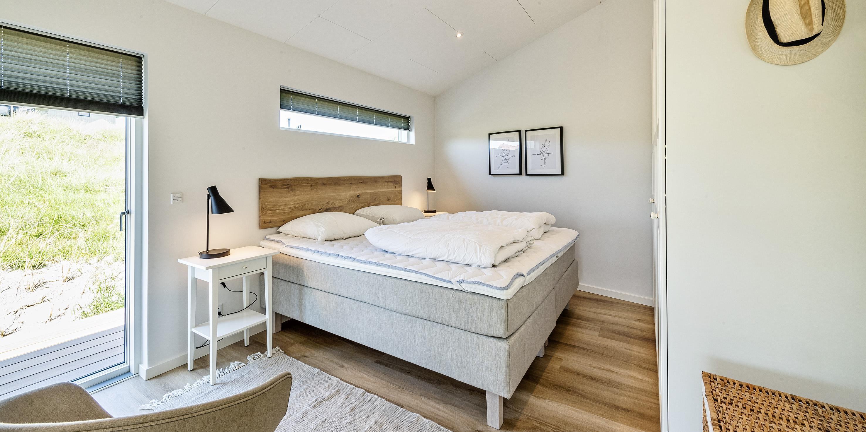 Sommerhuset byder på en skøn atmosfære i en moderne stil, med store panoramavinduer hvorfra der god udsigt over klitgrunden. Gennemgående åbent plan med små og store hyggekroge. De udvendige faciliteter byder på ren natur, der kan nydes fra den store lukkede træterrasse. Sommerhuset ligger på en ugeneret kuperet klitgrund, ca. 250 meter fra stranden.