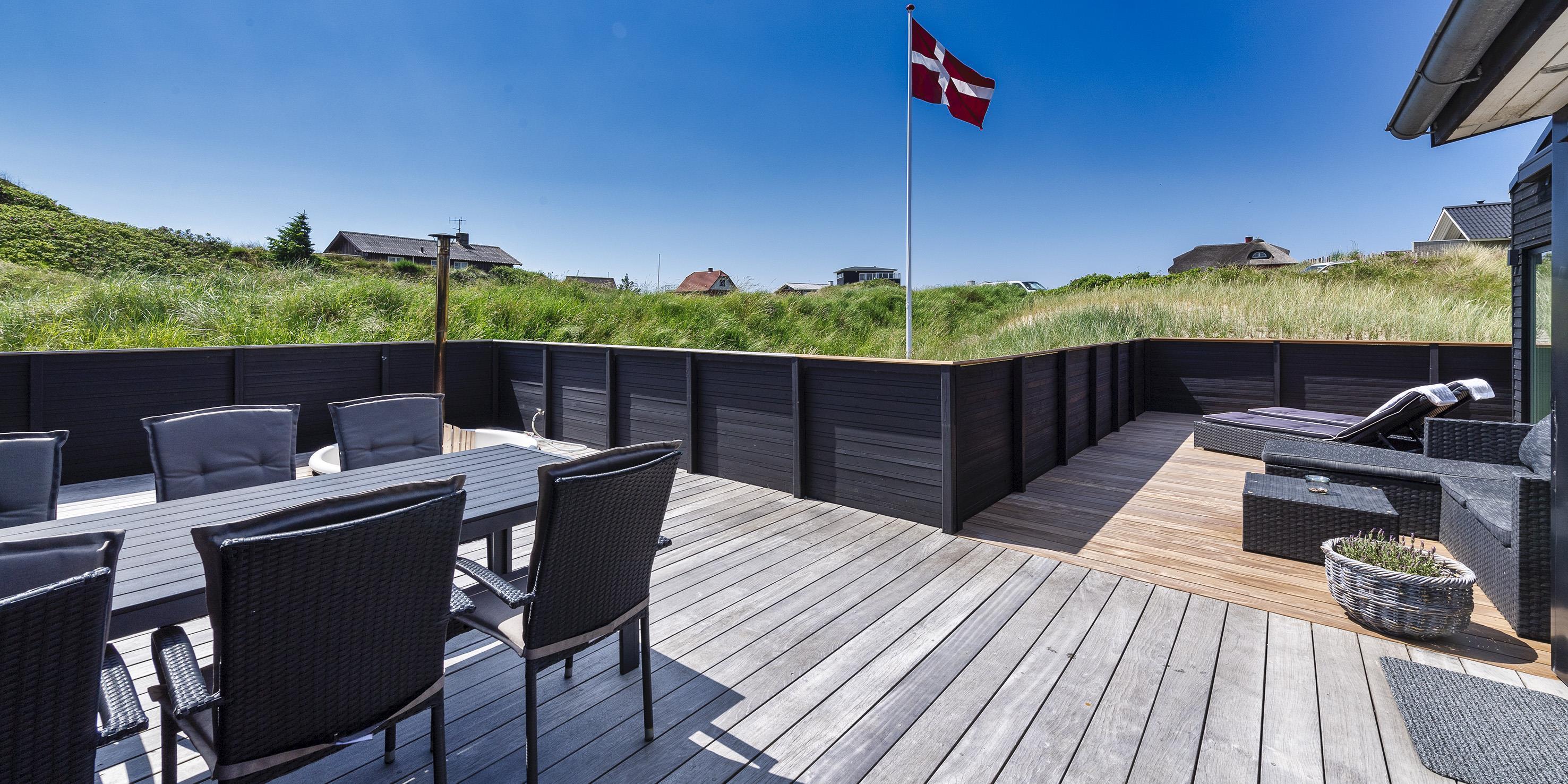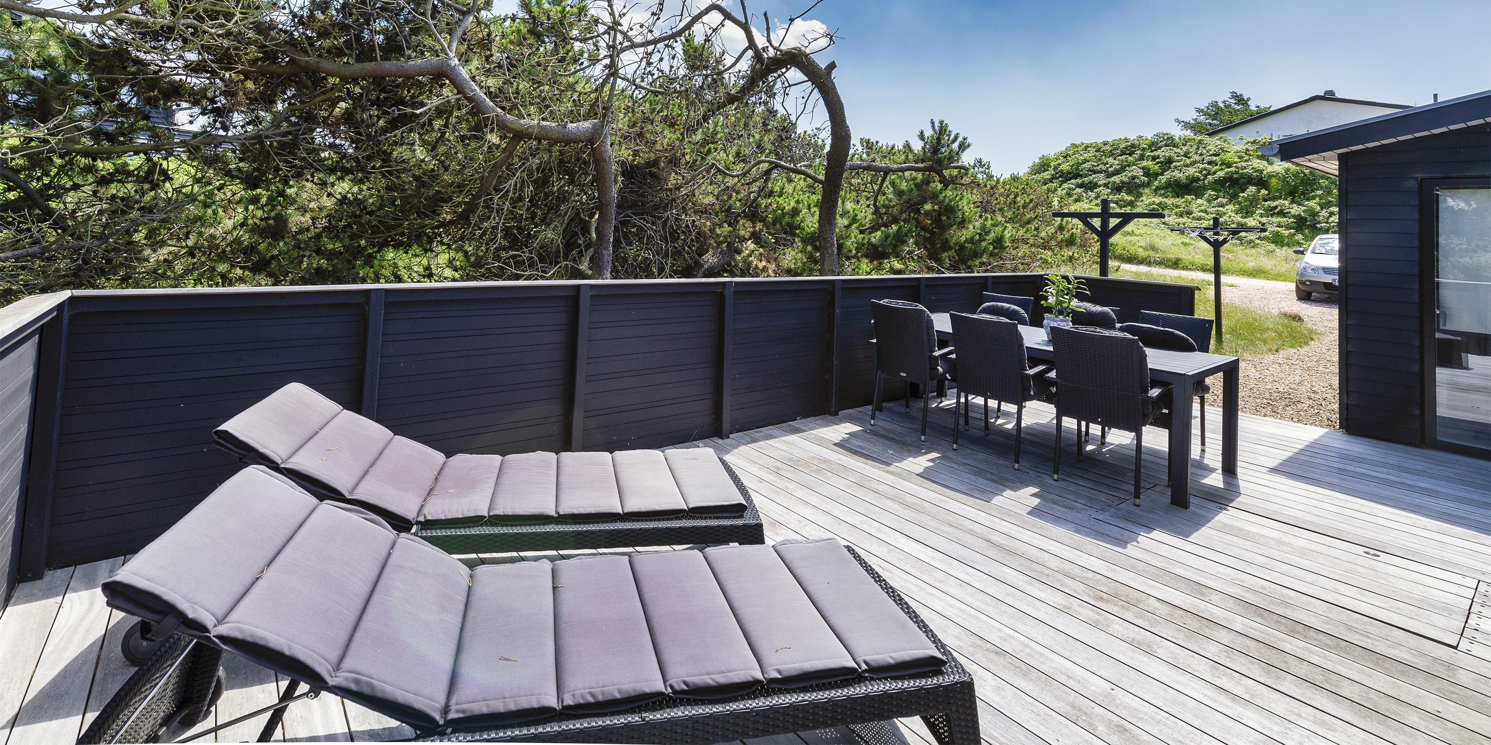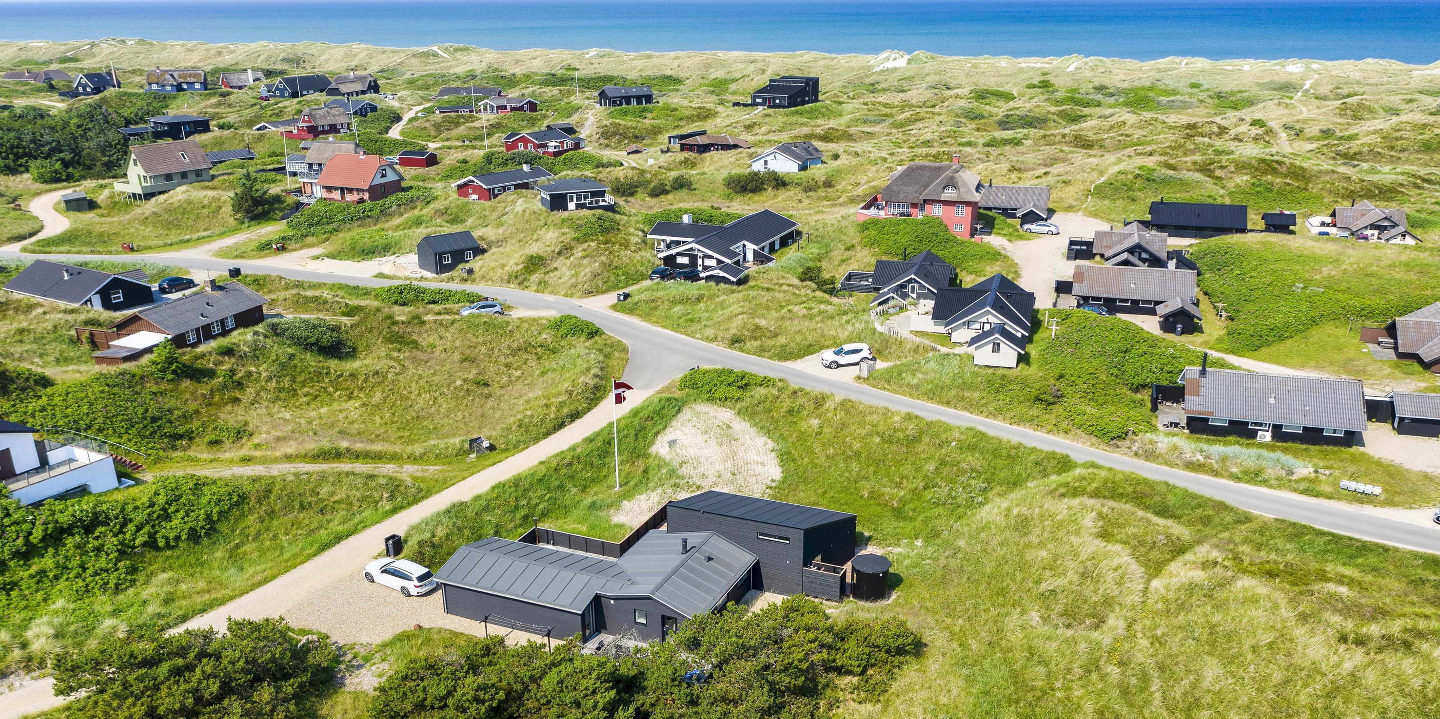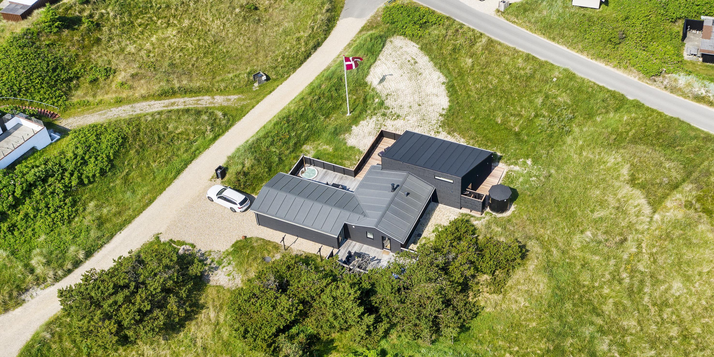 Spændende sommerhus til de kræsne lejere i Vejers. Et moderne sommerhus med en stilrent design, som nærmest smelter sammen med omgivelserne.