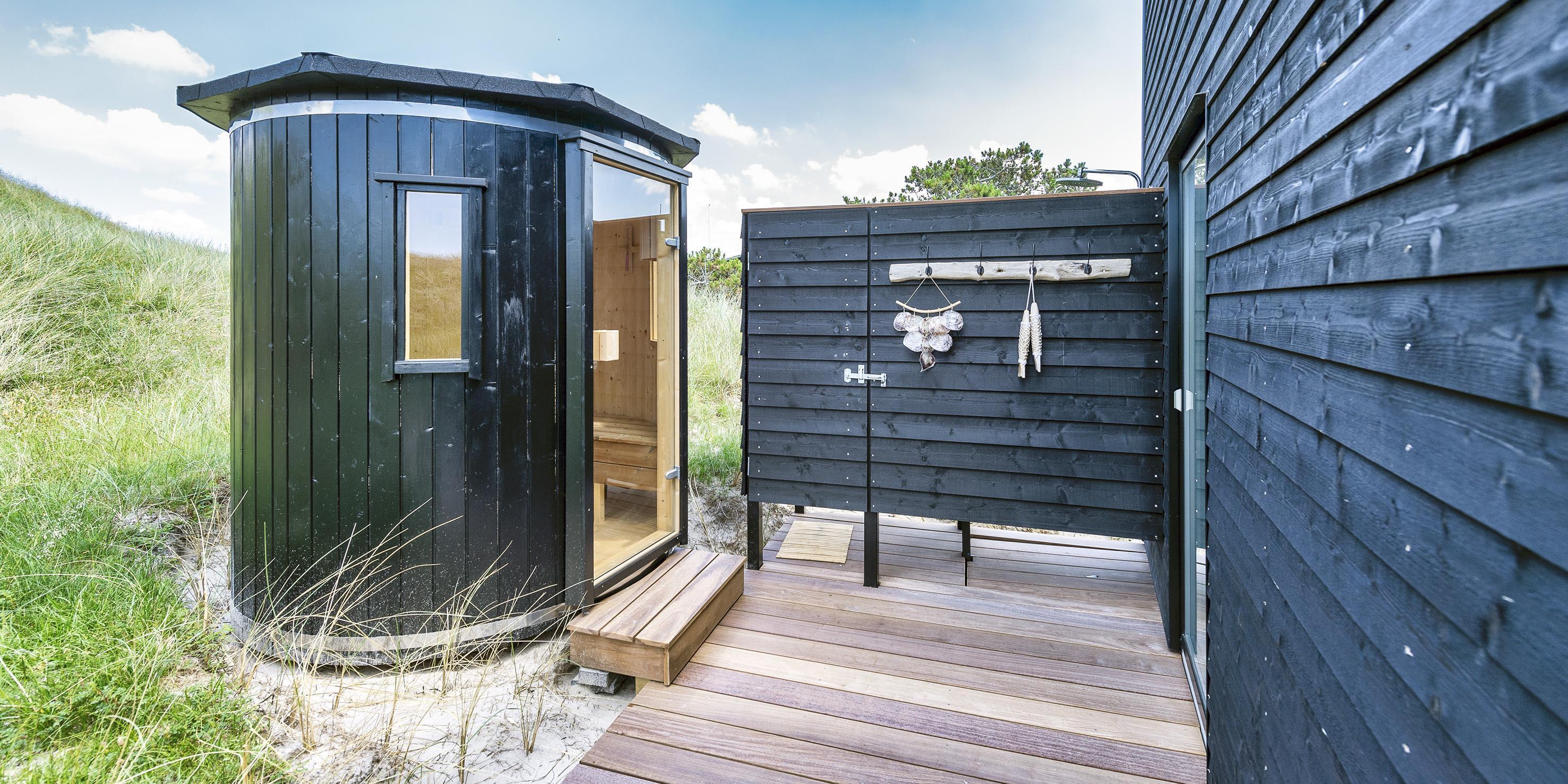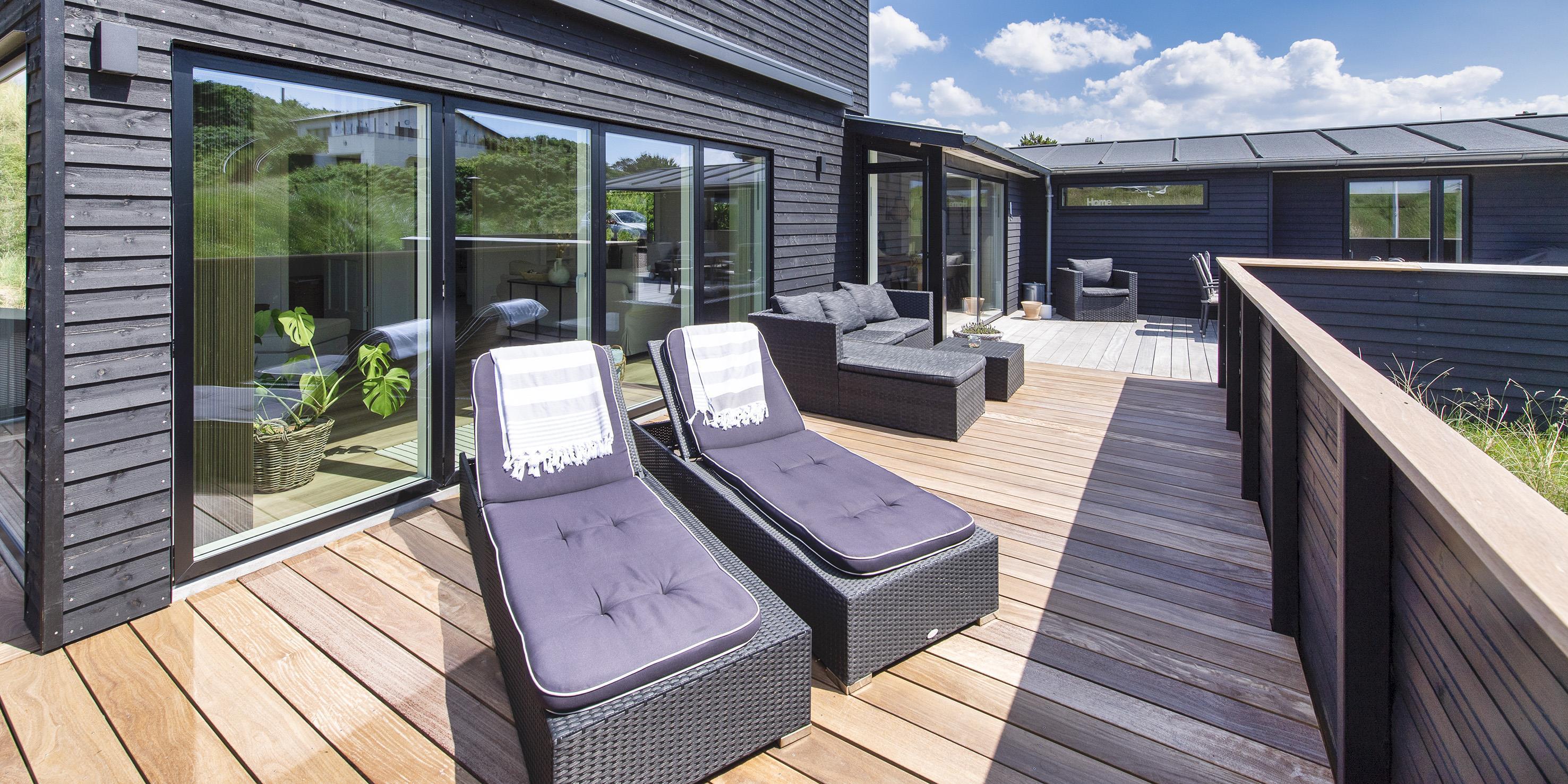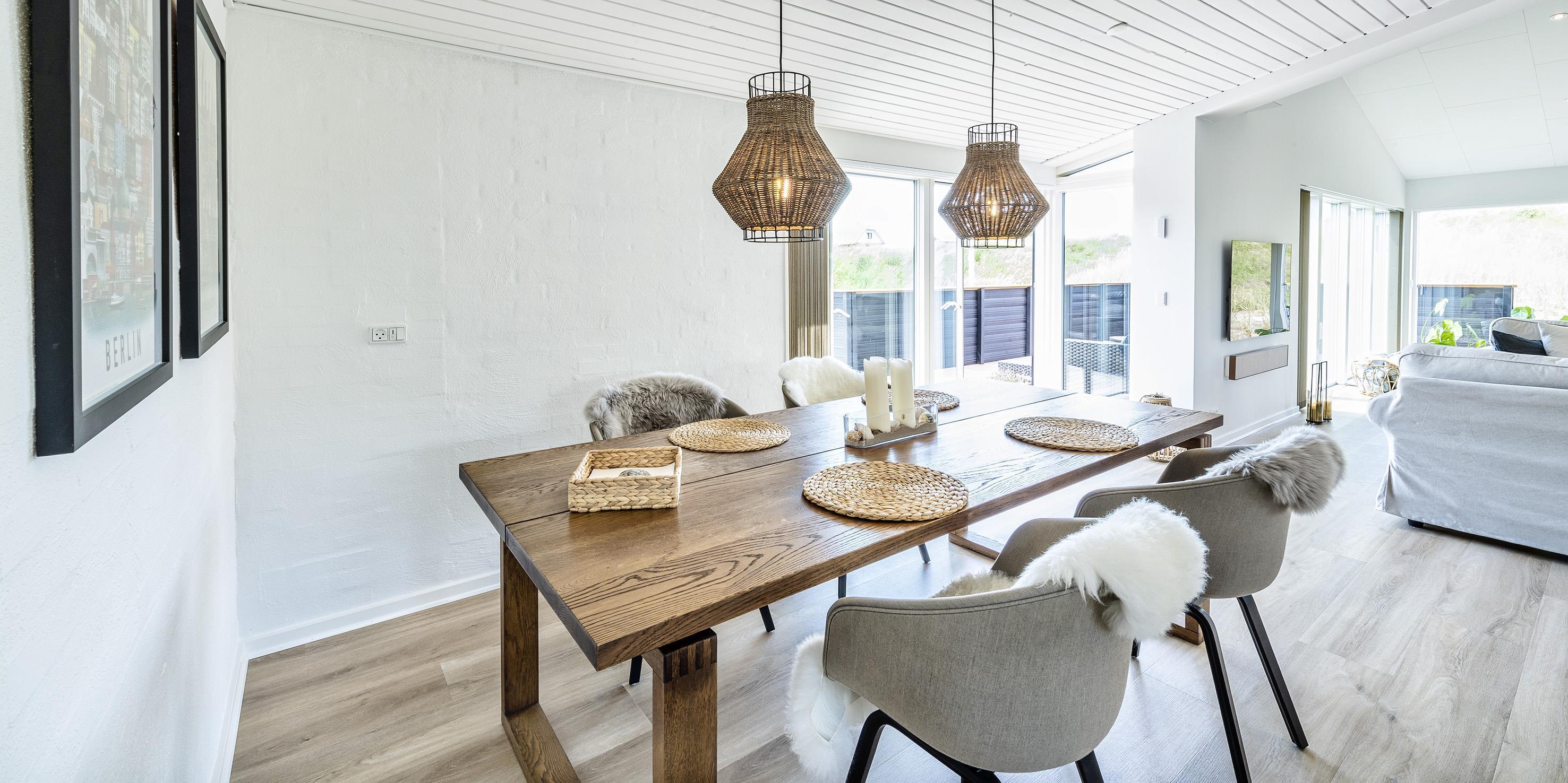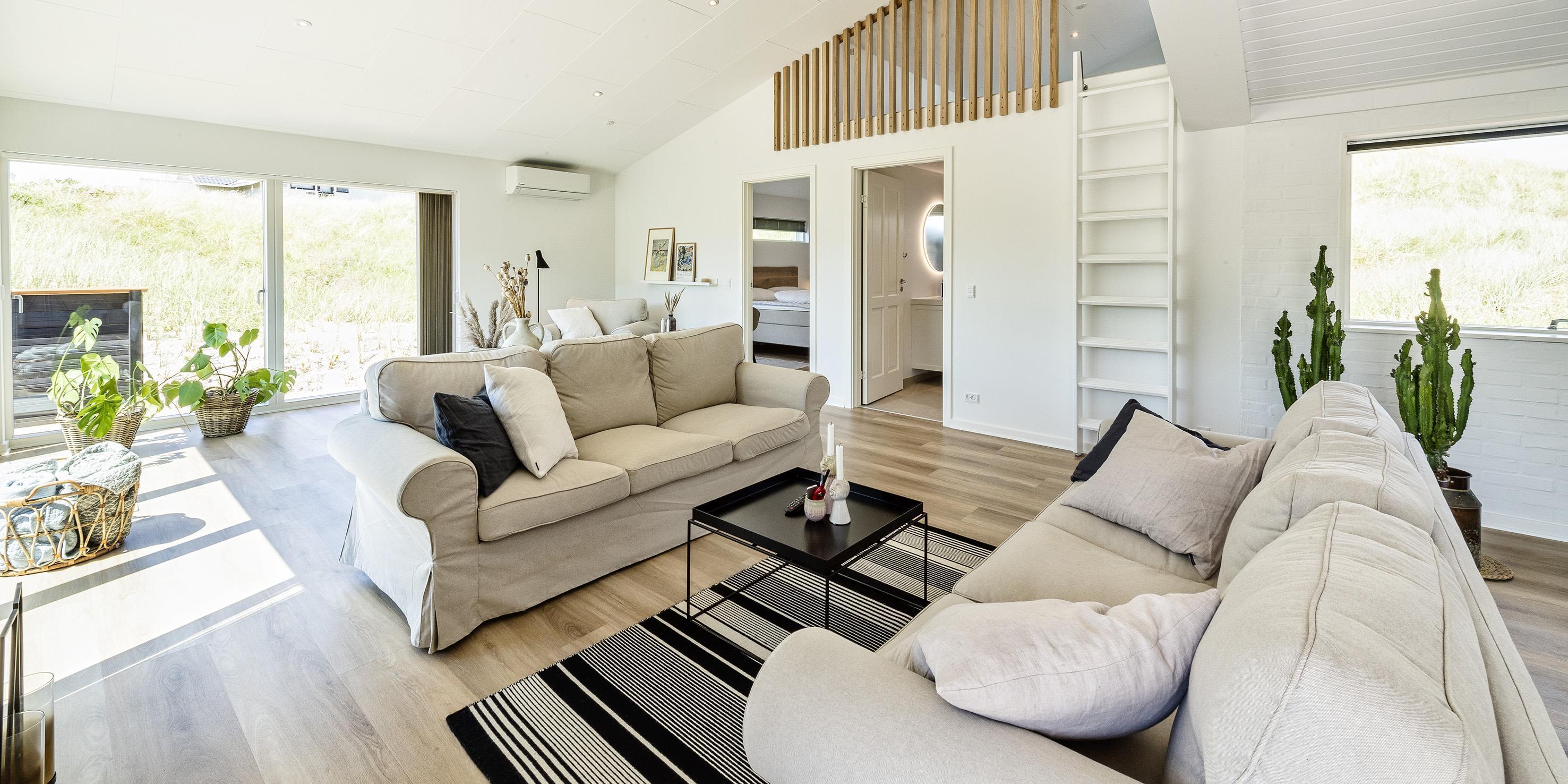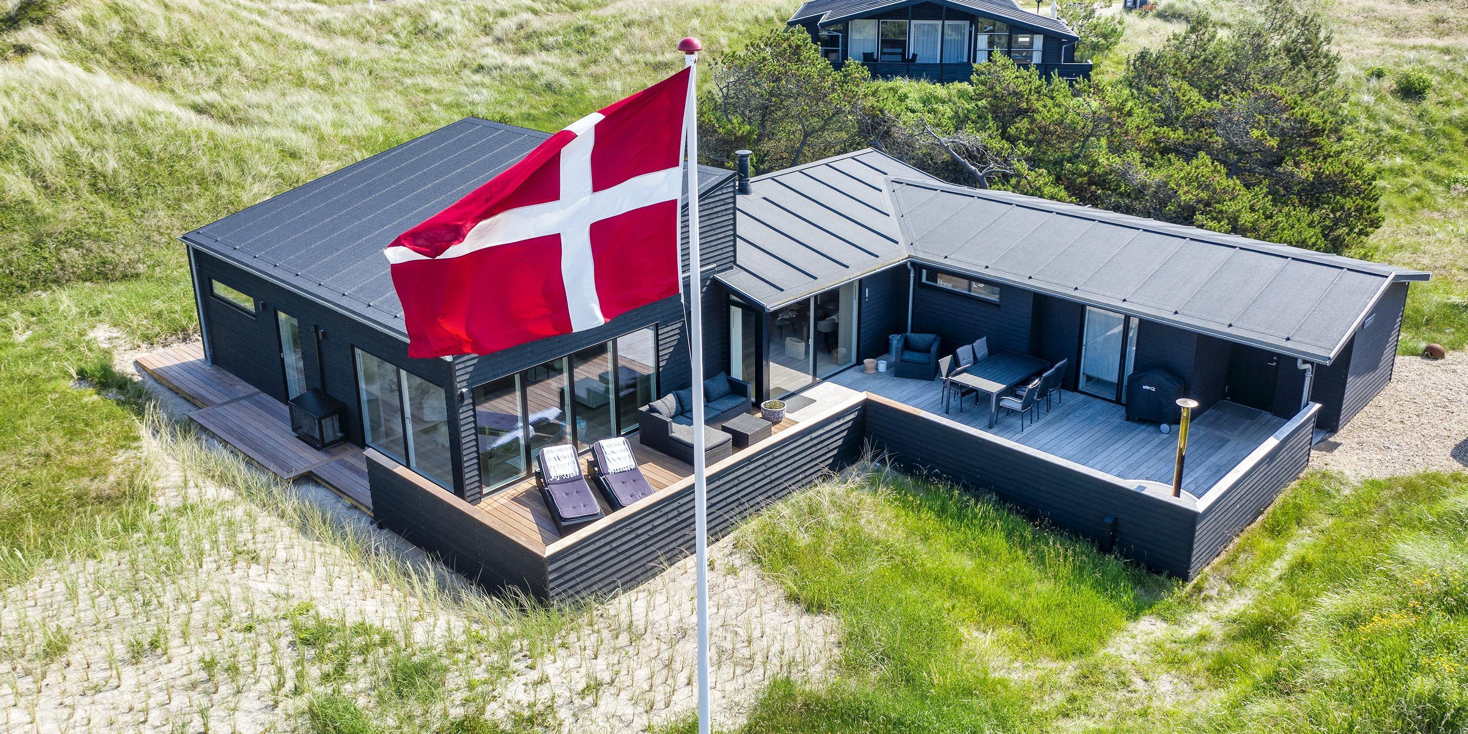 Spændende sommerhus til de kræsne lejere i Vejers. Et moderne sommerhus med en stilrent design, som nærmest smelter sammen med omgivelserne.