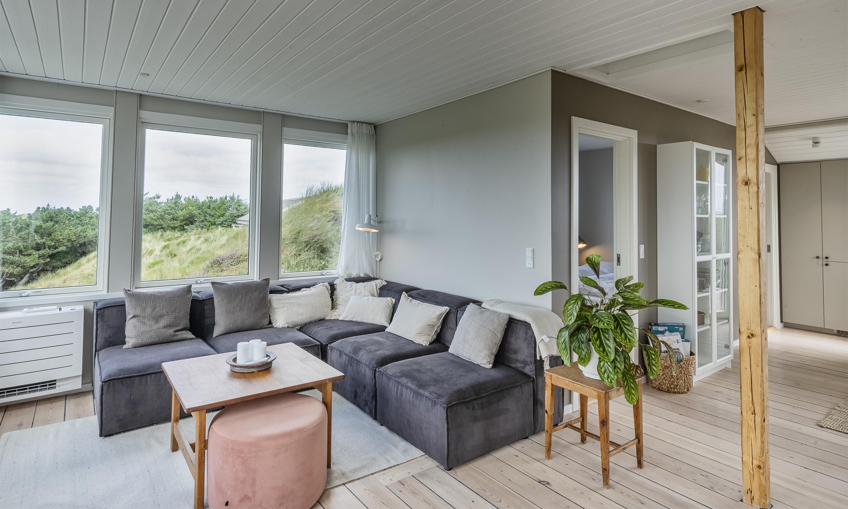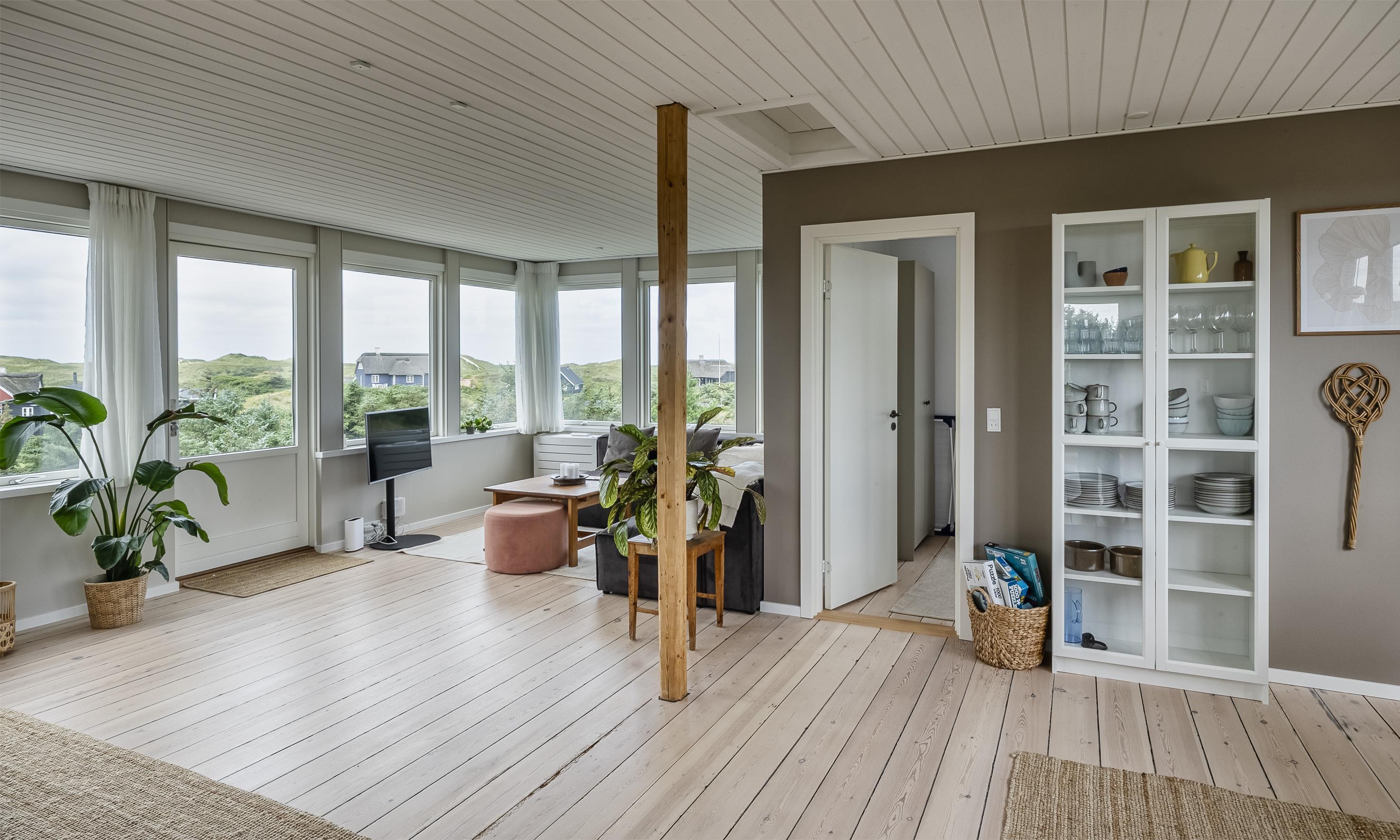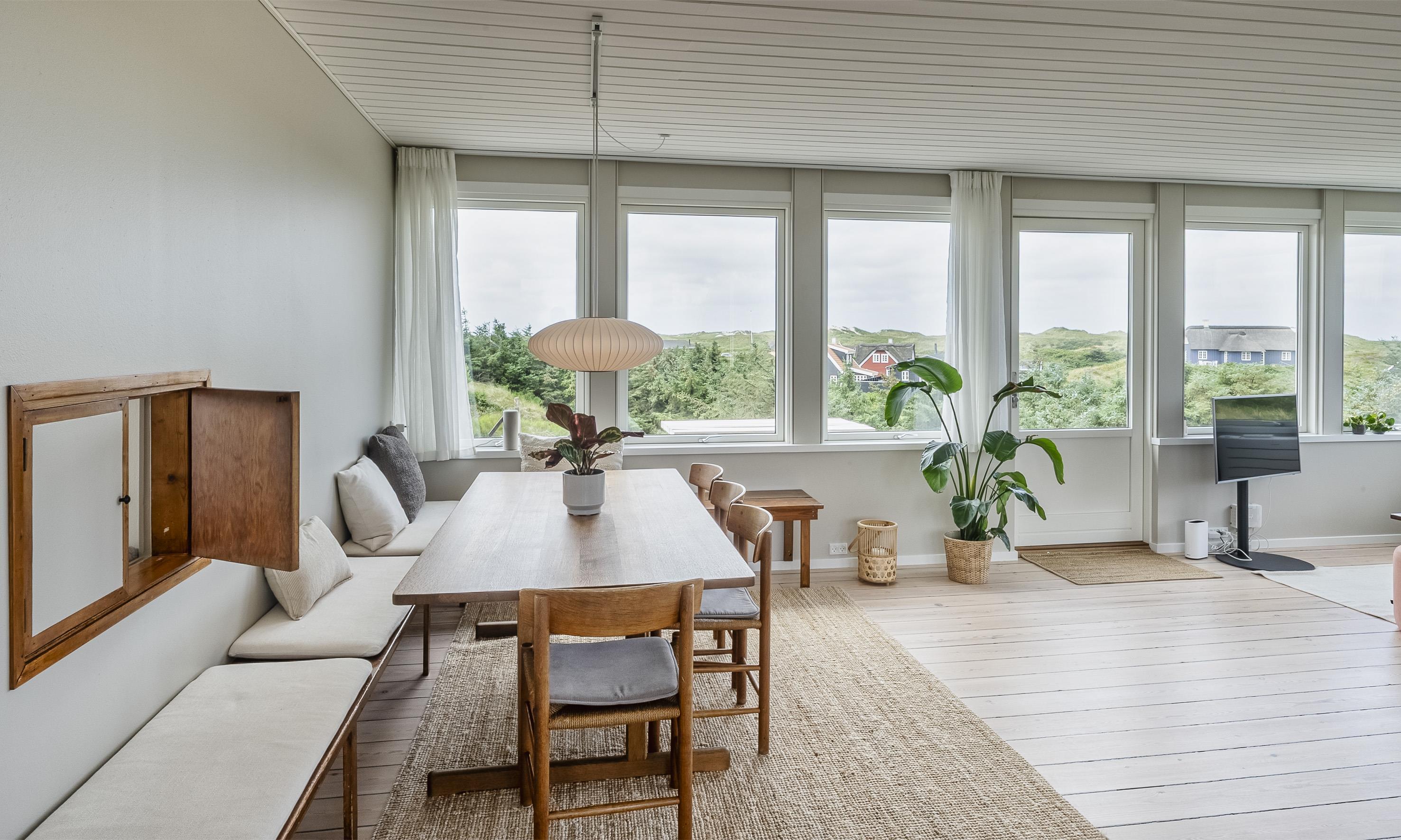 Hvem vil ikke gerne holde ferie her? Måske det højste beliggende sommerhus i Vejers, med ca. 250 meter til den skønne hvide sandstrand og Vesterhavet og med ca. 500 meter til indkøb og restaurant. Nyd morgenkaffen på øst terrassen og aften rødvinen sammen med solnedgangen på vest terrassen.