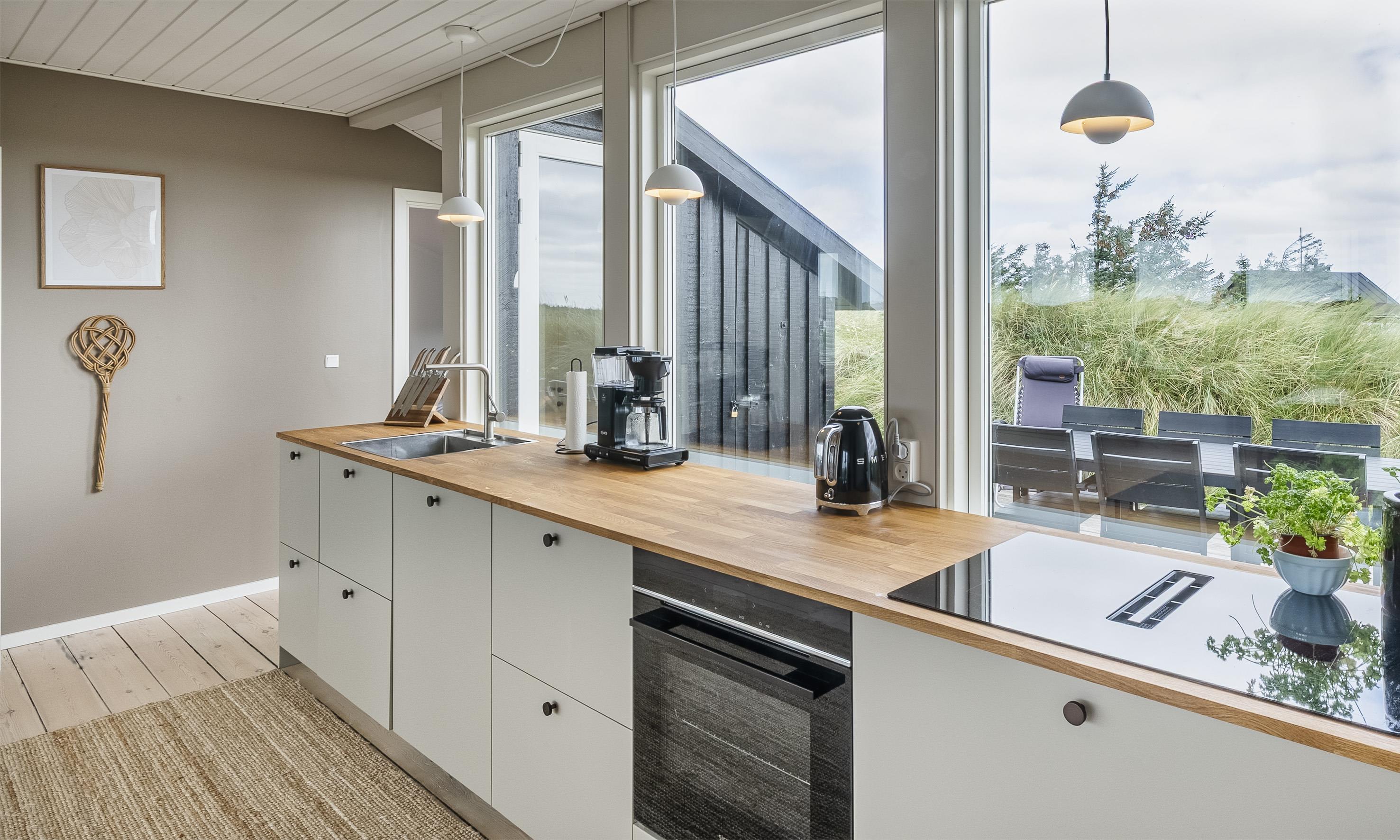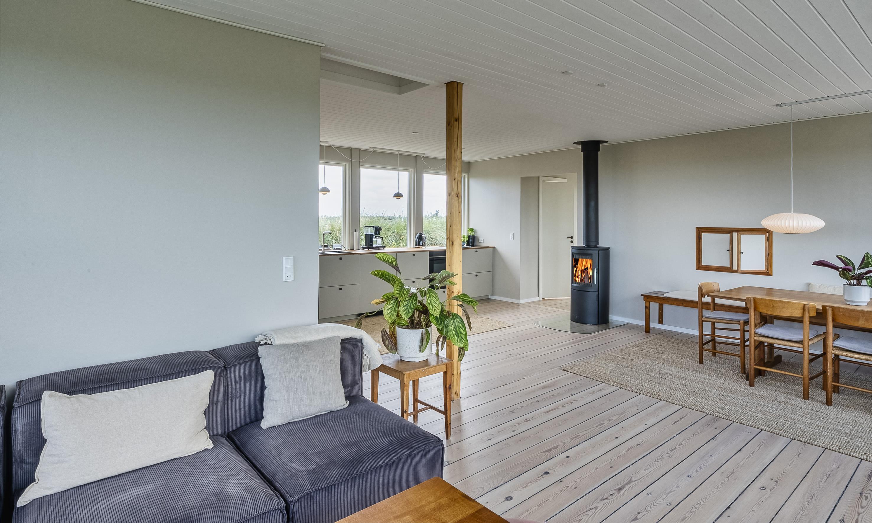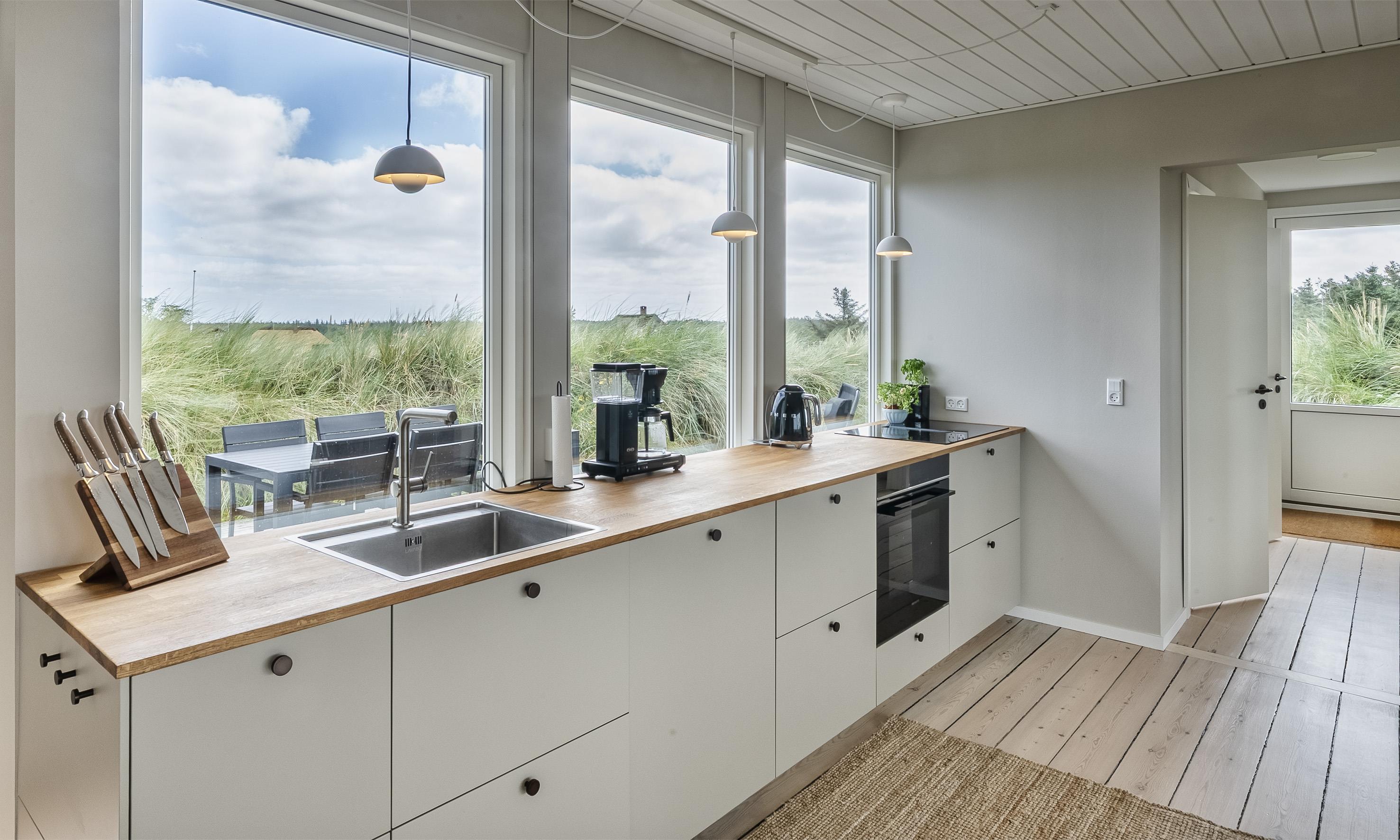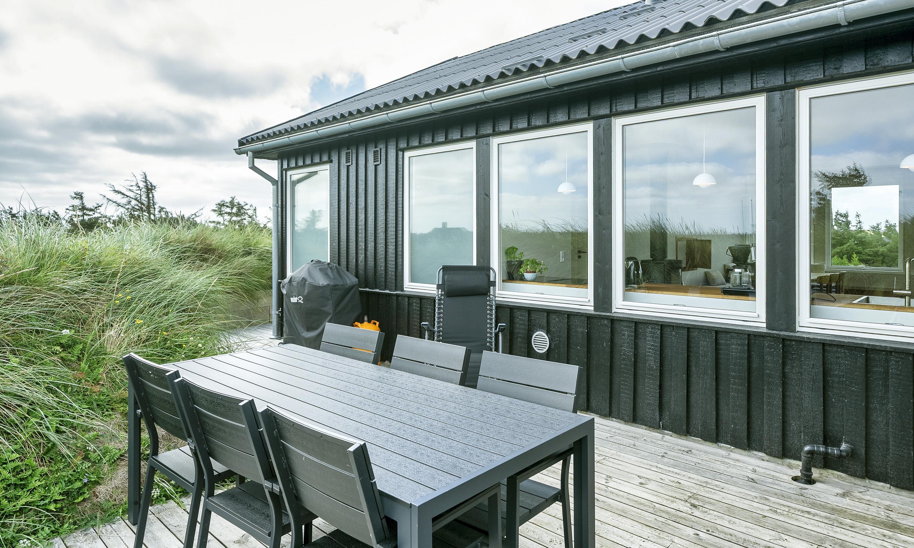 Hvem vil ikke gerne holde ferie her? Måske det højste beliggende sommerhus i Vejers, med ca. 250 meter til den skønne hvide sandstrand og Vesterhavet og med ca. 500 meter til indkøb og restaurant. Nyd morgenkaffen på øst terrassen og aften rødvinen sammen med solnedgangen på vest terrassen.