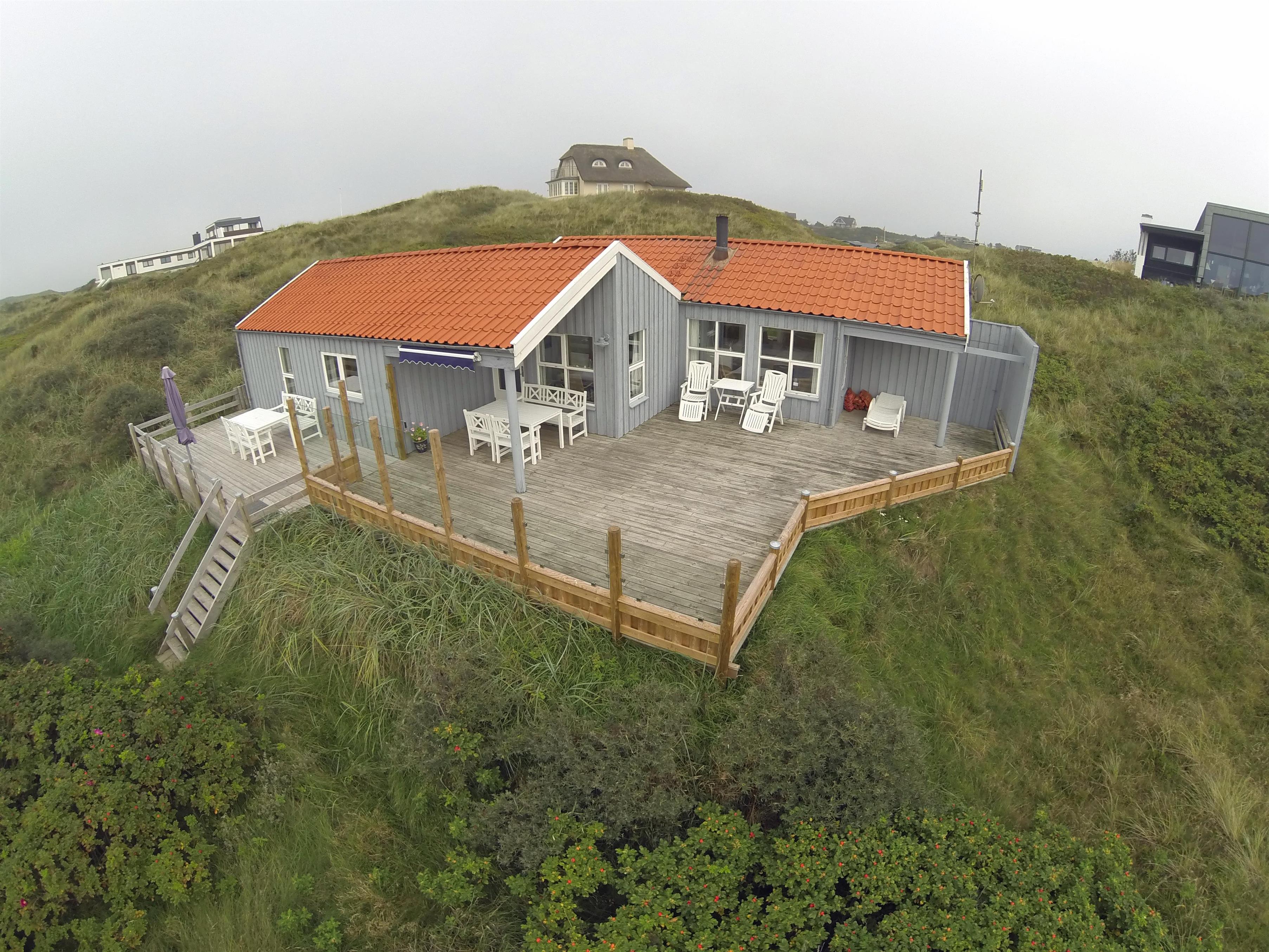 Smagfuldt sommerhus til 5 personer, beliggende på pragtfuld klitgrund, ca. 100 meter fra stranden. Stort køkken med køle-/fryseskab, spisehjørne og opvaskemaskine. Stue med brændeovn, fjernsyn med Stofa-programmer. Varmepumpe. Badeværelse med bruser/wc, vaskemaskine og sauna. 3 soveværelser: DS + DS + S. Stor lukket terrasse. Kun 1 lille Hund er tilladt! Rygning er ikke tilladt indendøre. Trådløs internet. Byggeår 1987.