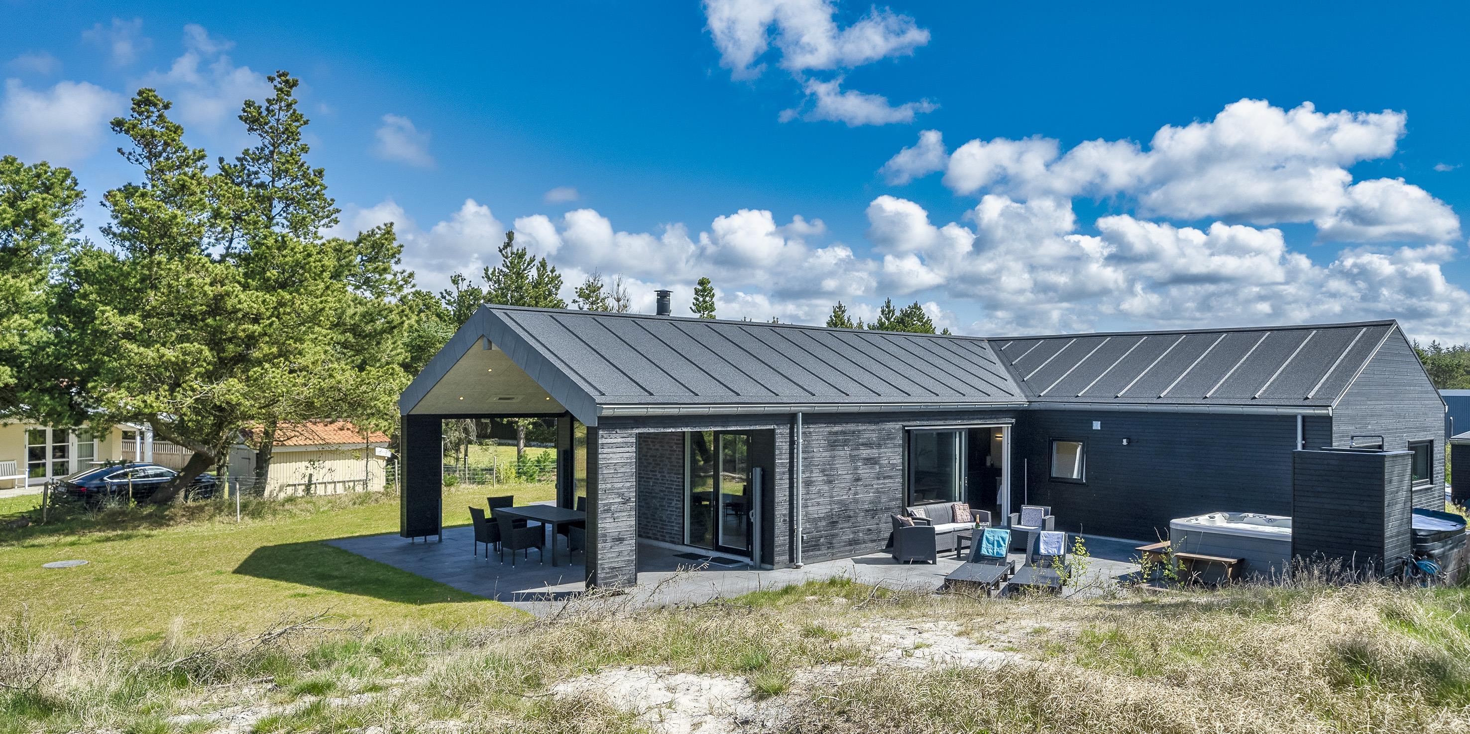 Nyere spændende aktivitets sommerhus i Vejers Strand. Sommerhuset er opbygget i de bedste kvalitetsmaterialer i et moderne og stilrent design. Huset er beliggende på en stor delvis lukket naturgrund ca. 850 meter fra stranden.