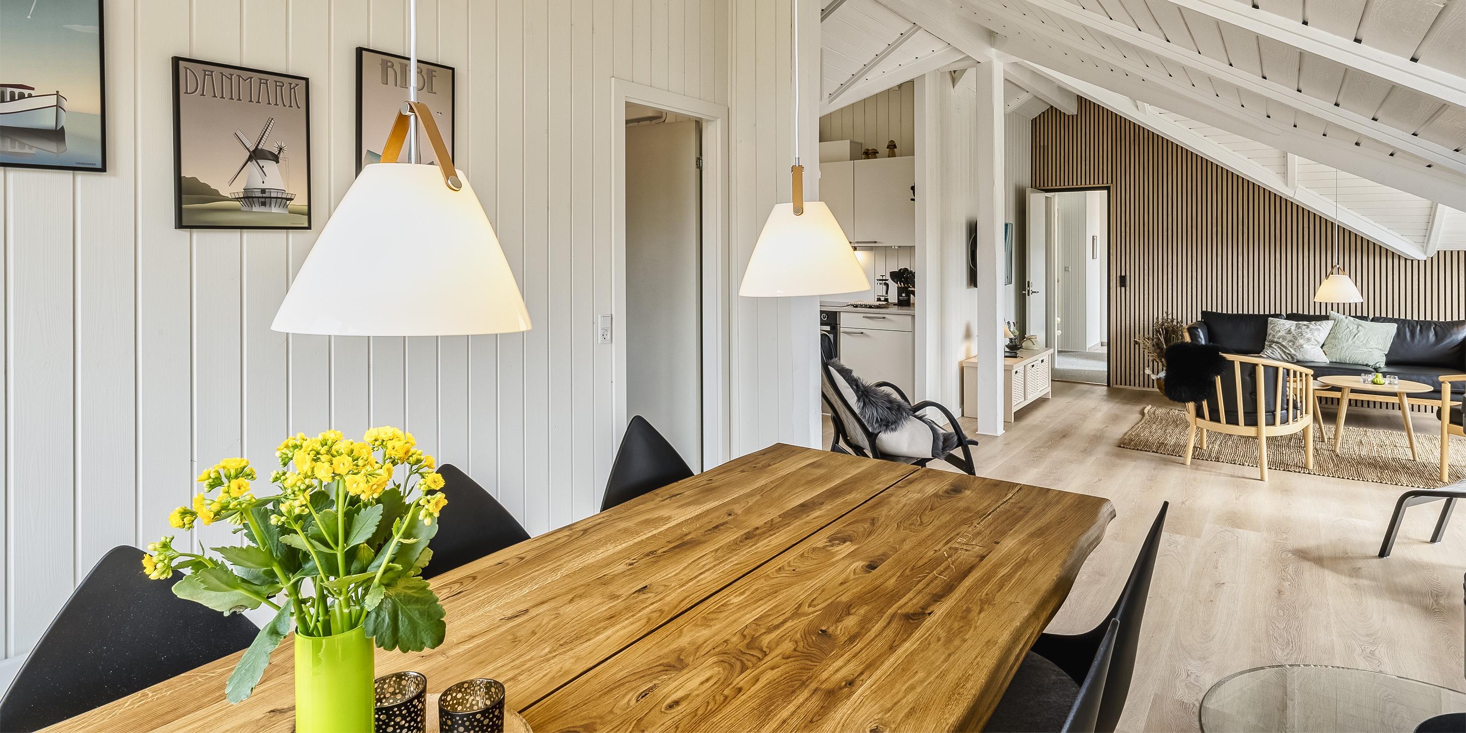 3 soveværelser. 1 med dobbeltseng 180x200 cm. 1 med 2 enkeltsenge (á 90x200 cm). 1 med køjeseng
