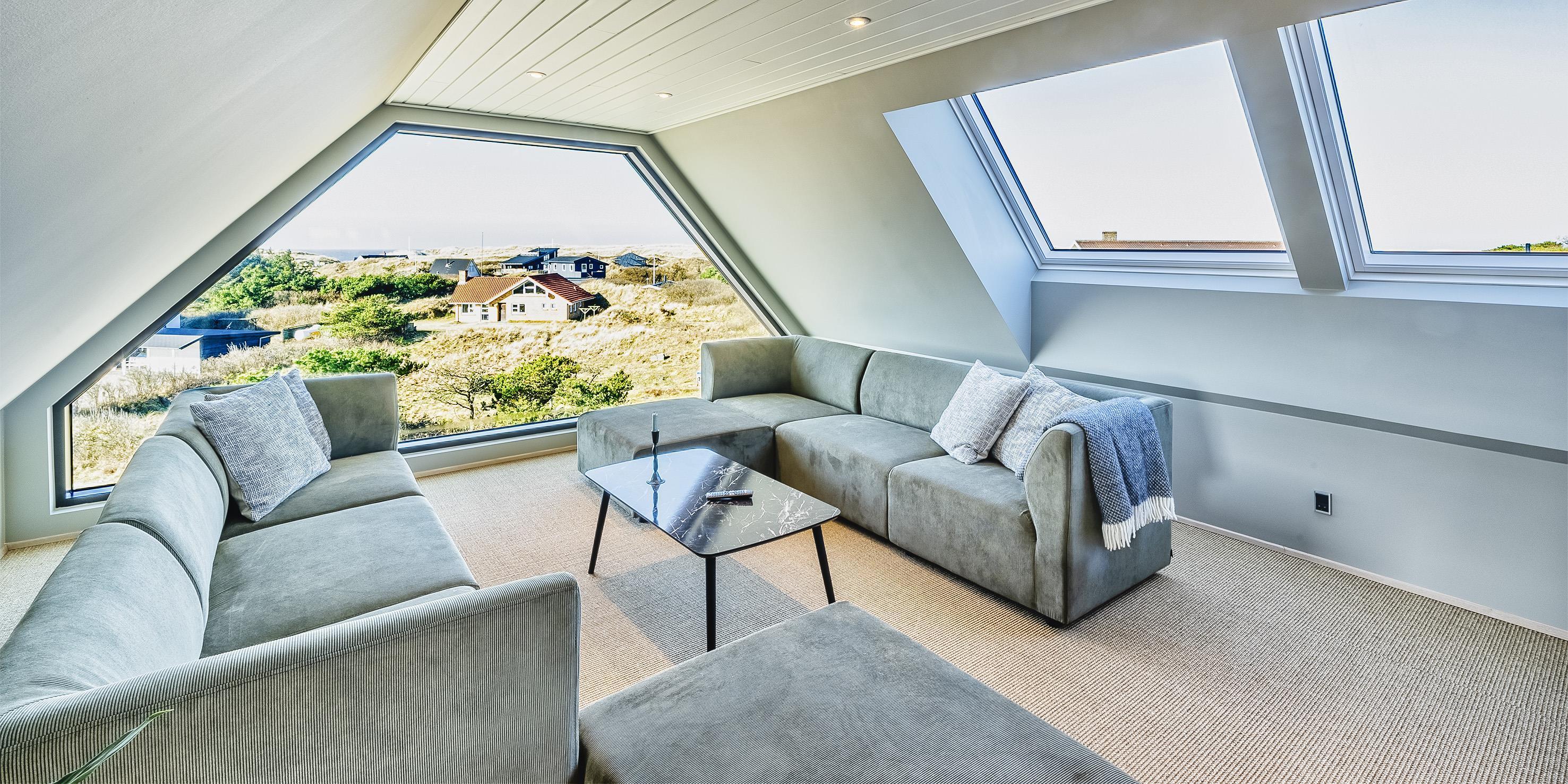 De udvendige faciliteter byder på flotte solnedgange, der kan nydes fra den store omkring liggende træterrasse. Sommerhuset ligger på en høj klitgrund, ca. 200 meter fra stranden samt kort afstand til indkøb og restaurant.