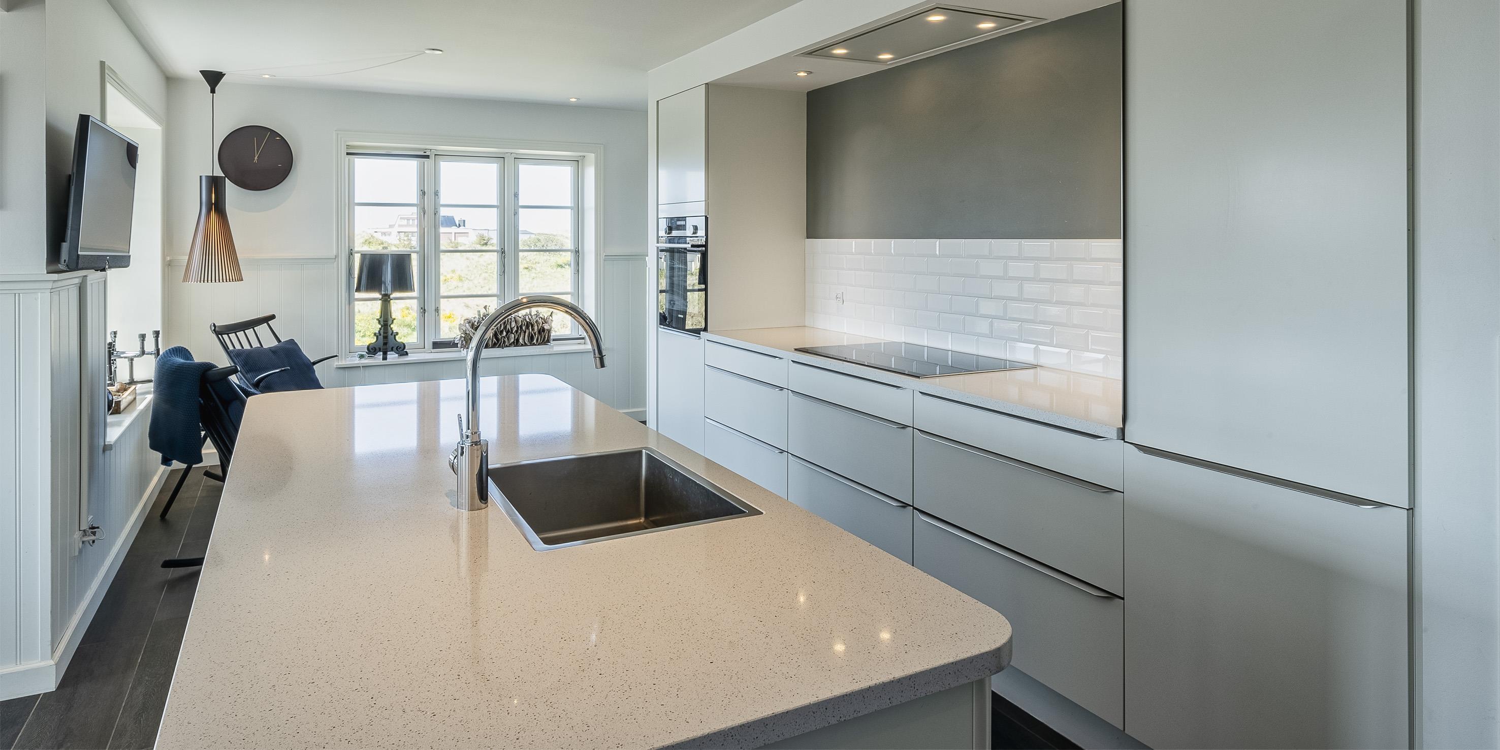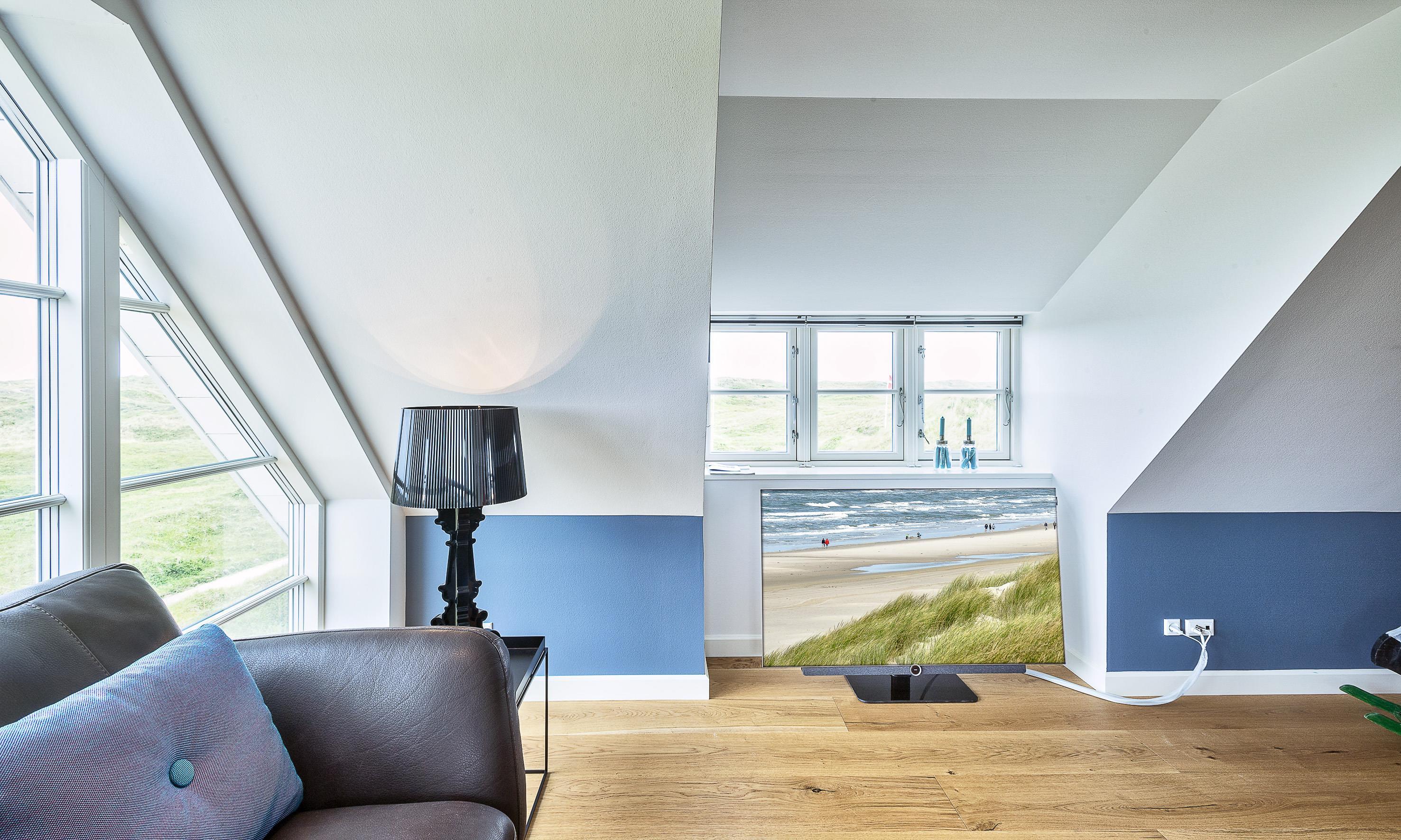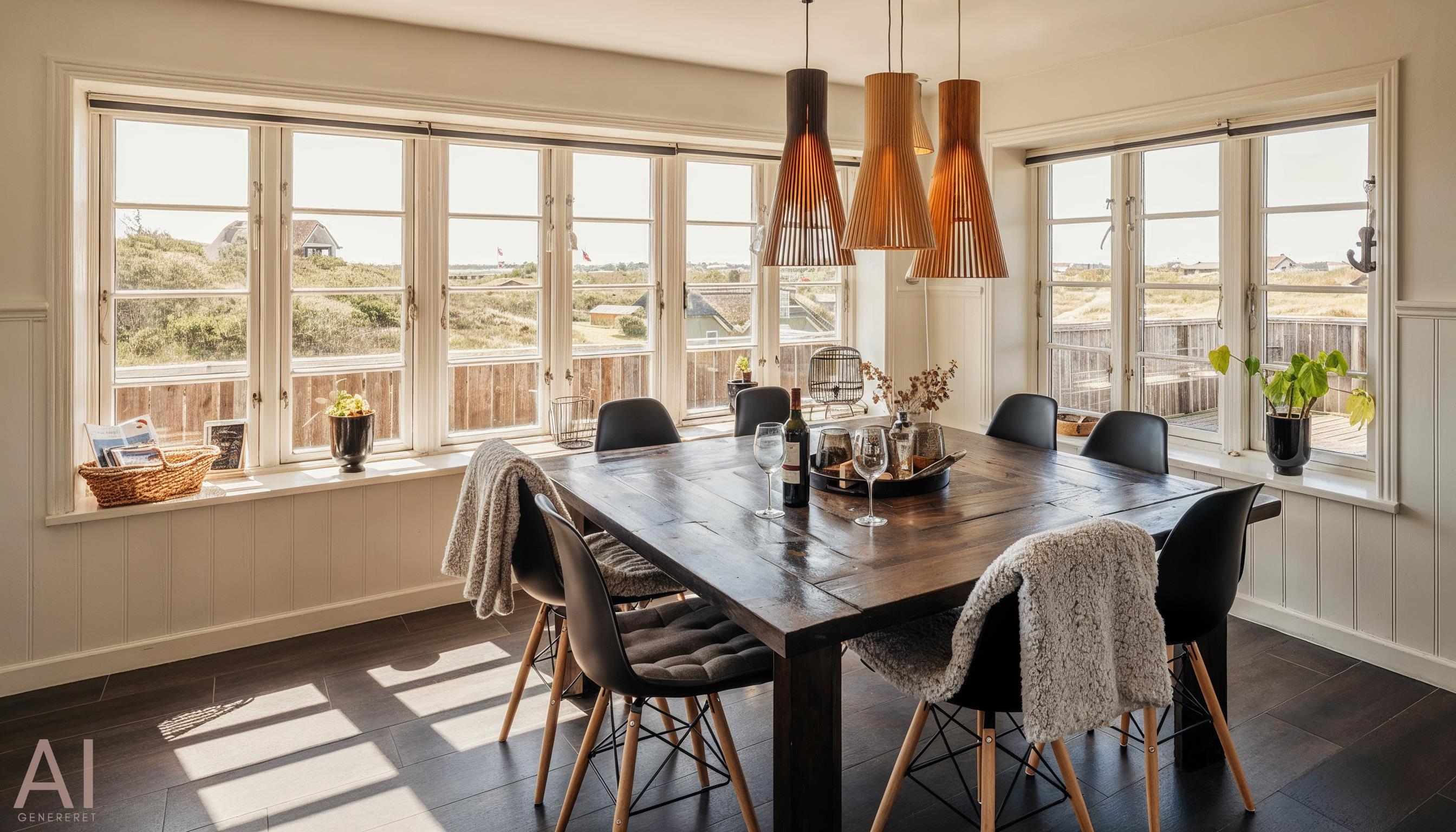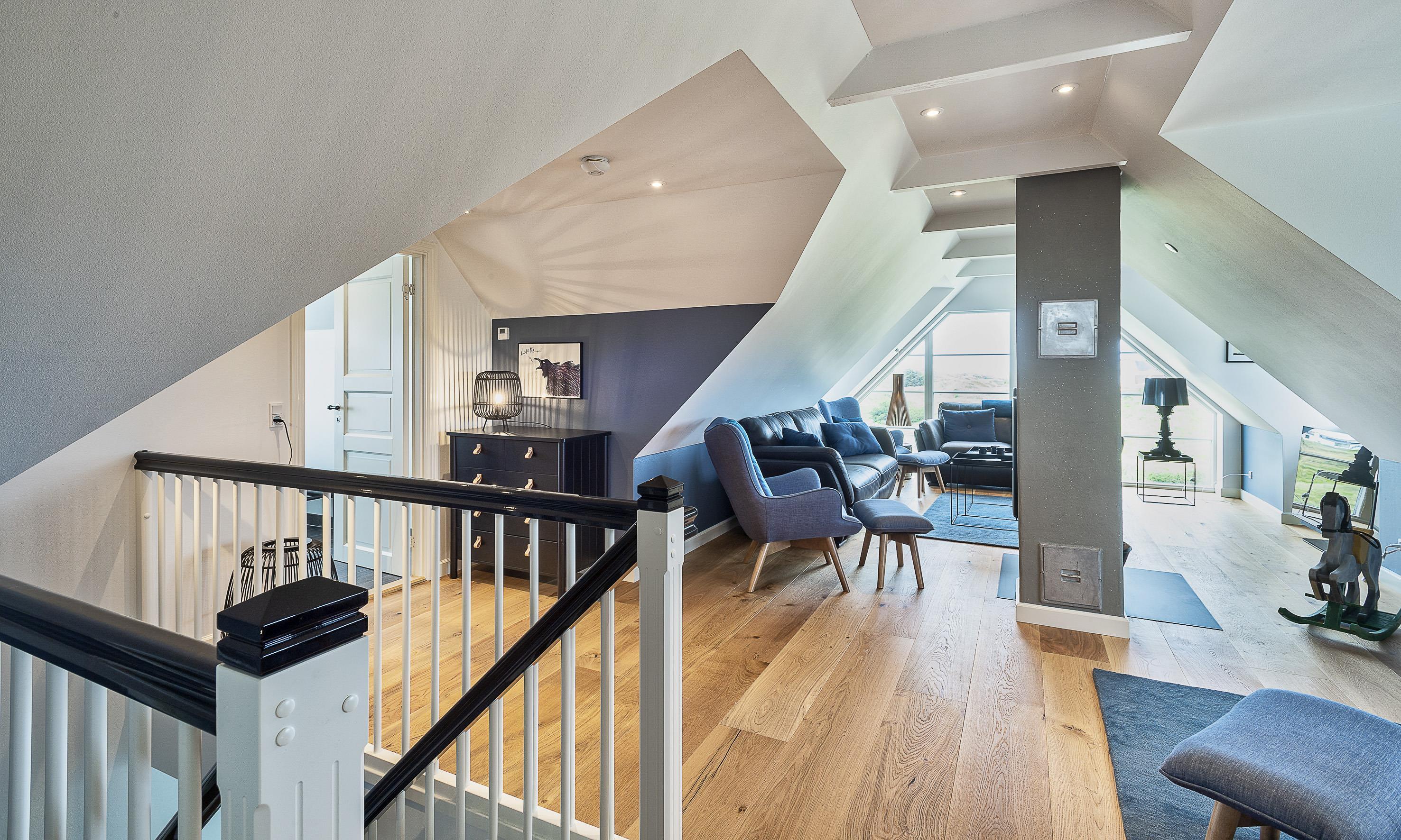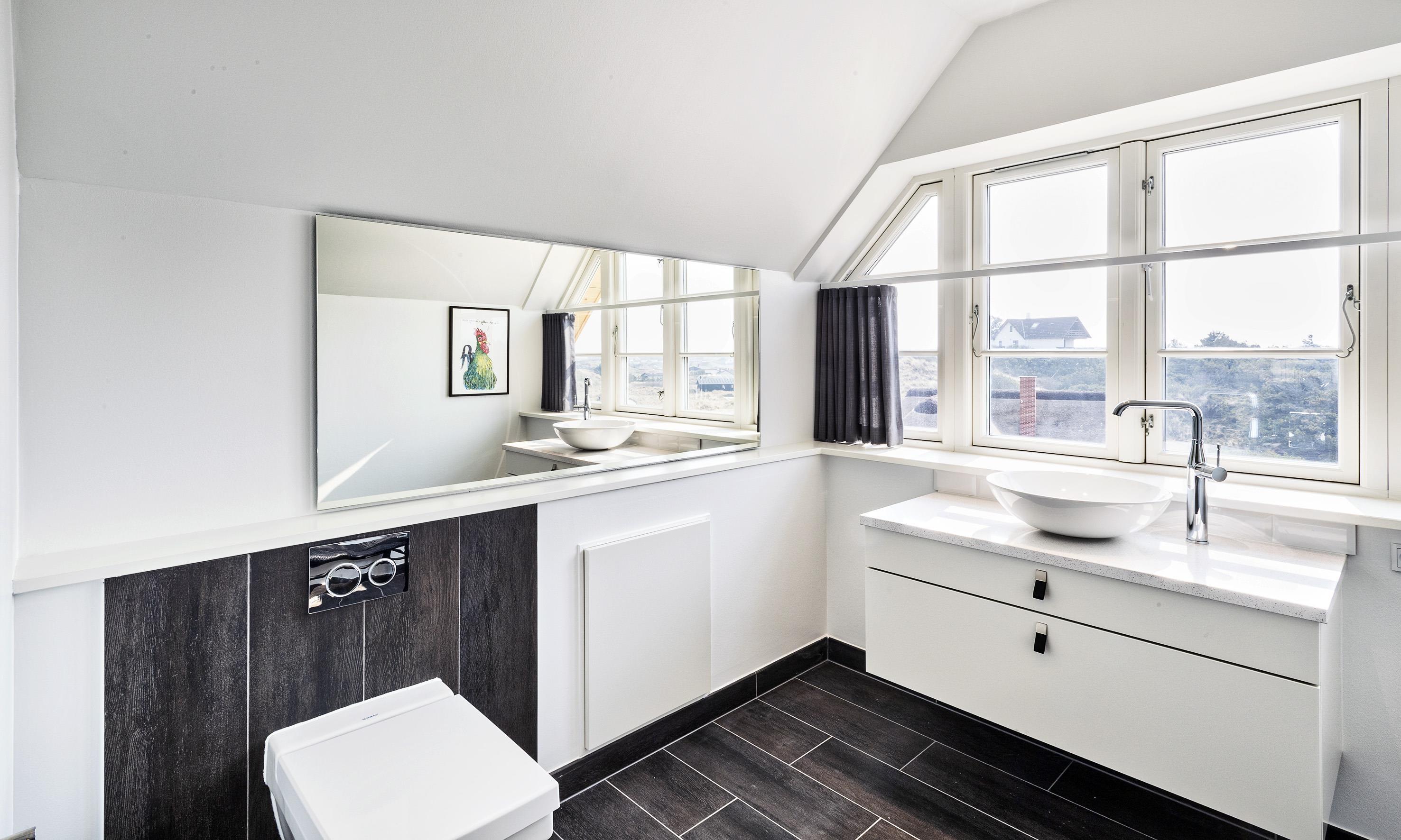Meget smagfuldt, stråtækt sommerhus i 3 plan til 8 personer, beliggende på klitgrund med panoramaudsigt, ca. 200 meter fra stranden. Huset indeholder i stueetagen: Indgang/entre herfra kommer man direkte ind i et lyst køkken-alrum, dejlig lyst køkken med opvaskemaskine, hævet bageovn og keramisk komfur. Køkkenet er i åben forbindelse med en havestue med brændeovn og spiseplads med panoramaudsigt. Udgang til den store terrasse. 4 soveværelser. DS + DS + DS + DS. 3 soveværelser med hver 1 dobbeltseng (2 senge af 90 x200 cm). Dejlig badeværelse med vaskearrangement, bruser og væghængt wc. 1. sal: en fantastisk opholdsstue med skøn panoramaudsigt fra de store gavlvinduer. Sofahjørne med kig til brændeovn og fjernsyn med parabolprogrammer (ingen danske kanaler). 1 stort Masterbedroom med 1 dobbeltseng (2 senge af 105 x200 cm). Badeværelse med vask, bruser og wc. Der forefindes trådløs Internetadgang i hele huset. Trappenedgang fra stueetagen til stor kælder med multirum med fjernsyn og parabolprogrammer, dart og en romaskine. Endvidere bryggers med kombineret vaske-/tørretumbler. Stort master badeværelse med vaskearrangement, bruser og spa, ekstra rum med sauna og et ekstra rum med væghængt toilet og vask. Rundt om huset forefindes der en stor lukket træterrasse. Huset har en gas Weber grill, som må benyttes. Gas til grillen skal selv medbringes, samt skal grillen stilles rengjort tilbage efter brug. Elbiler kan oplades ved huset. Rygning er ikke tilladt. Byggeår 2019