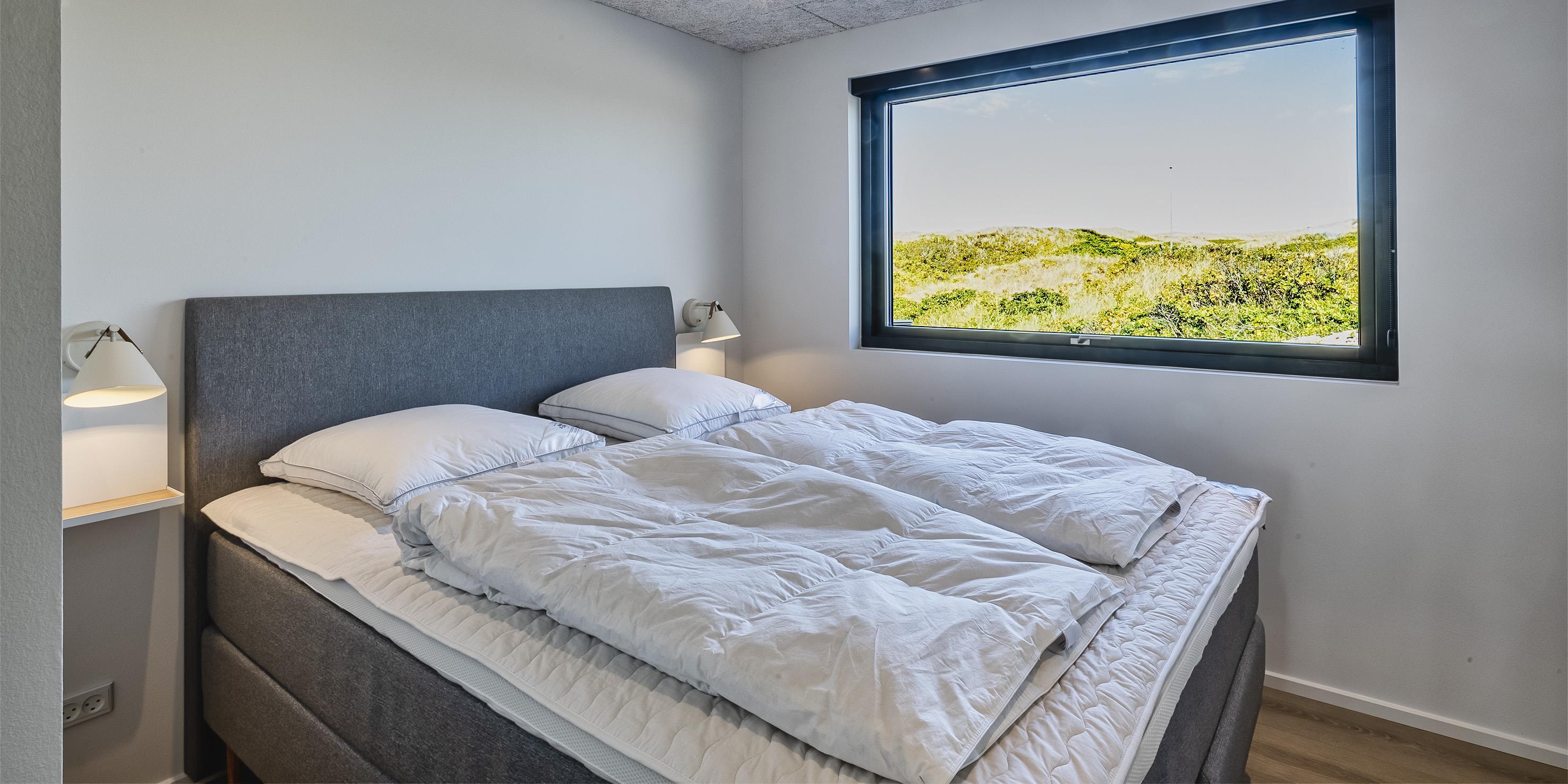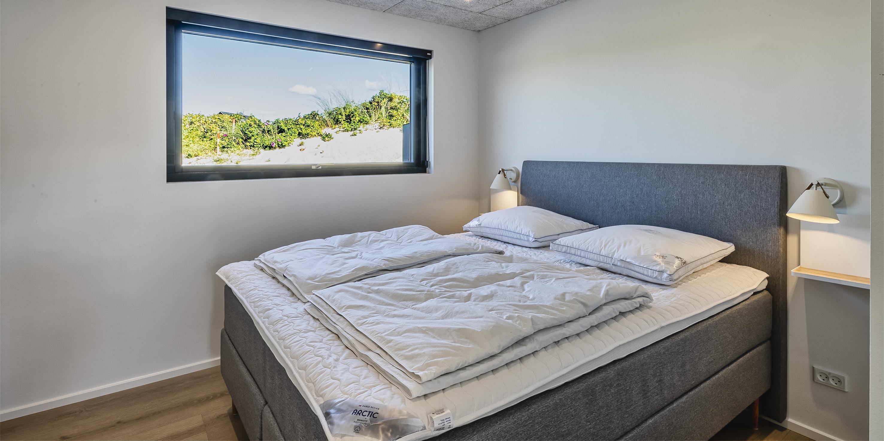 3 soveværelser med dobbeltseng 180x200 cm. 1 dobbeltmadras i alkove i stue