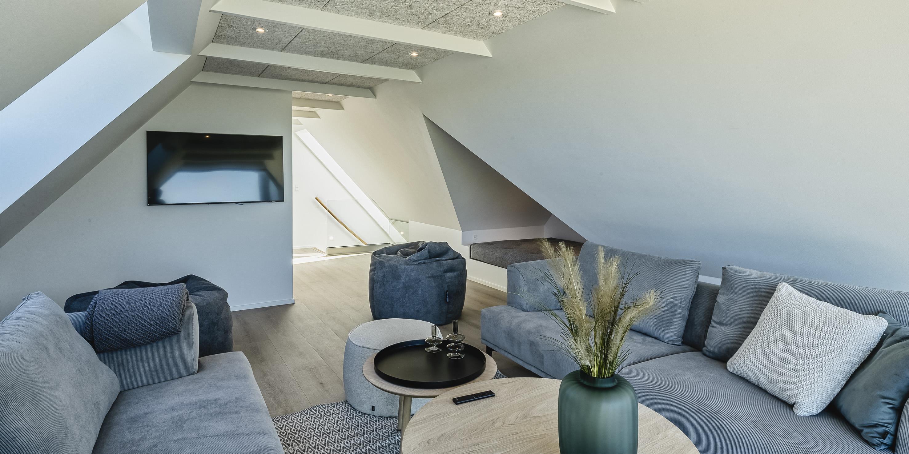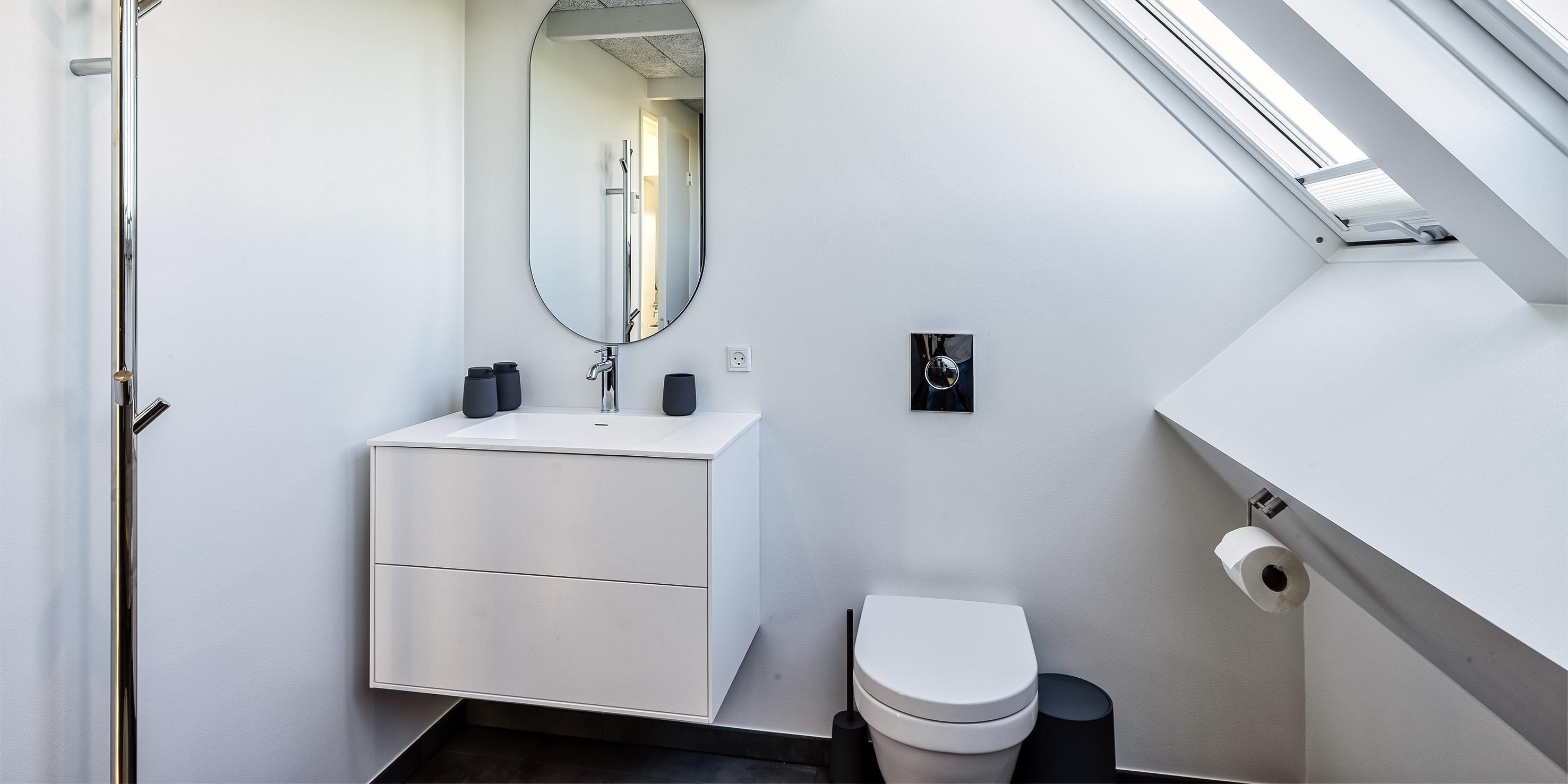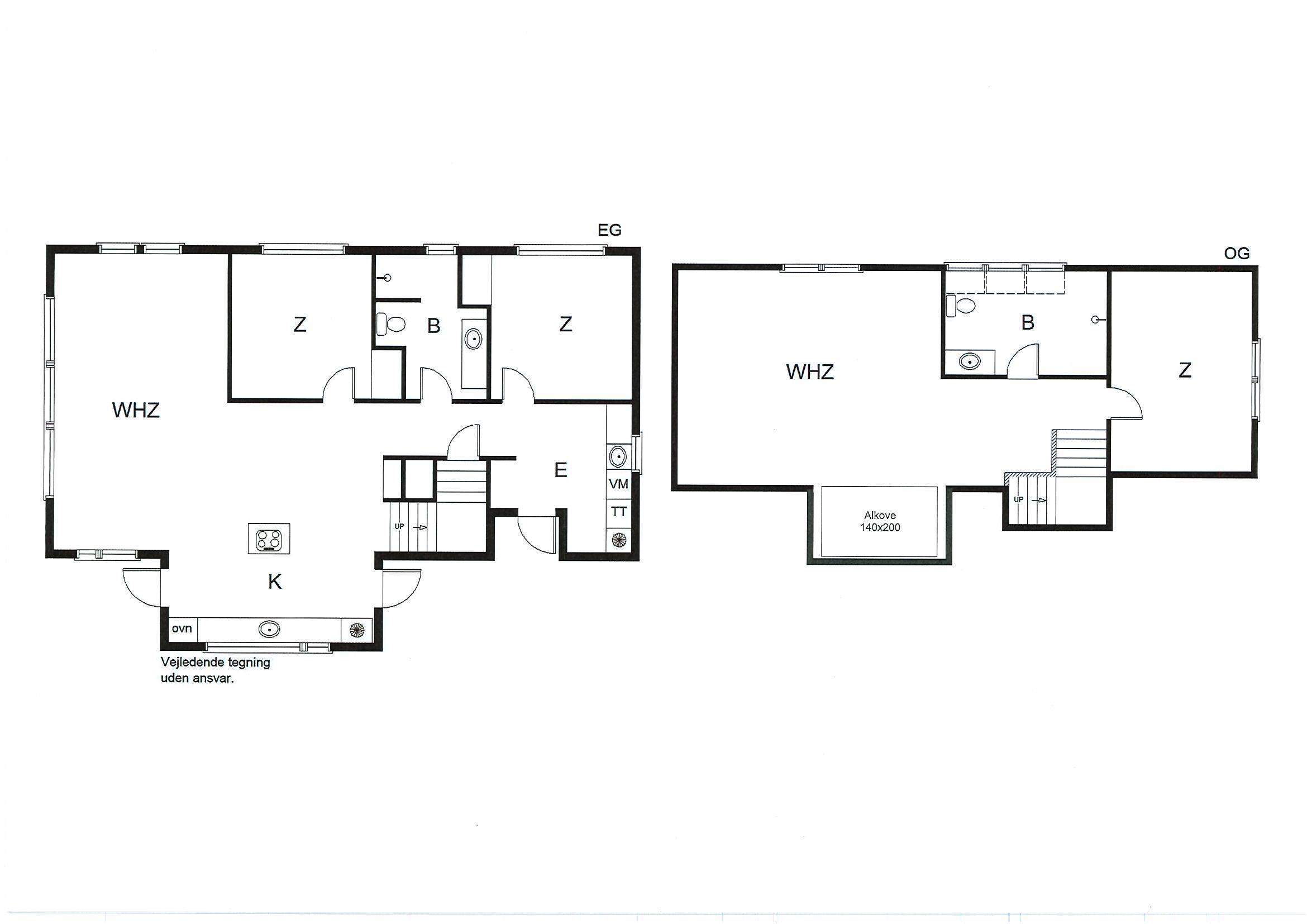 Huset er over to etager og indeholder: entre med god garderobeplads. 3 rummelige soveværelser : DS + DS +DS. Der befinder sig 2 ekstra sovepladser ( 140 x200 cm) i alkoven på 1. sal. Huset rummer to dejlige badeværelser, som begge er med vaskearrangement, toilet og bruser. Vaskemaskine og tørretumbler i forbindelse med bagindgangen. Køkkenet fremstår med alt komfort som bageovn, induktionskomfur, mikroovn, køle-fryseskab og opvaskemaskine. I stueetagen befinder sig spiseafdelingen og på første sal sofa/tv-hjørne samt læse og hyggekroge. Fra første sal er der kig til havet. Der er en stor træterrasse delvis lukket halvvejs rundt om huset med tilhørende gas gril med gasflaske samt ude spa og ude bruser. Foran huset er der mulighed for at parkere med 3 biler.