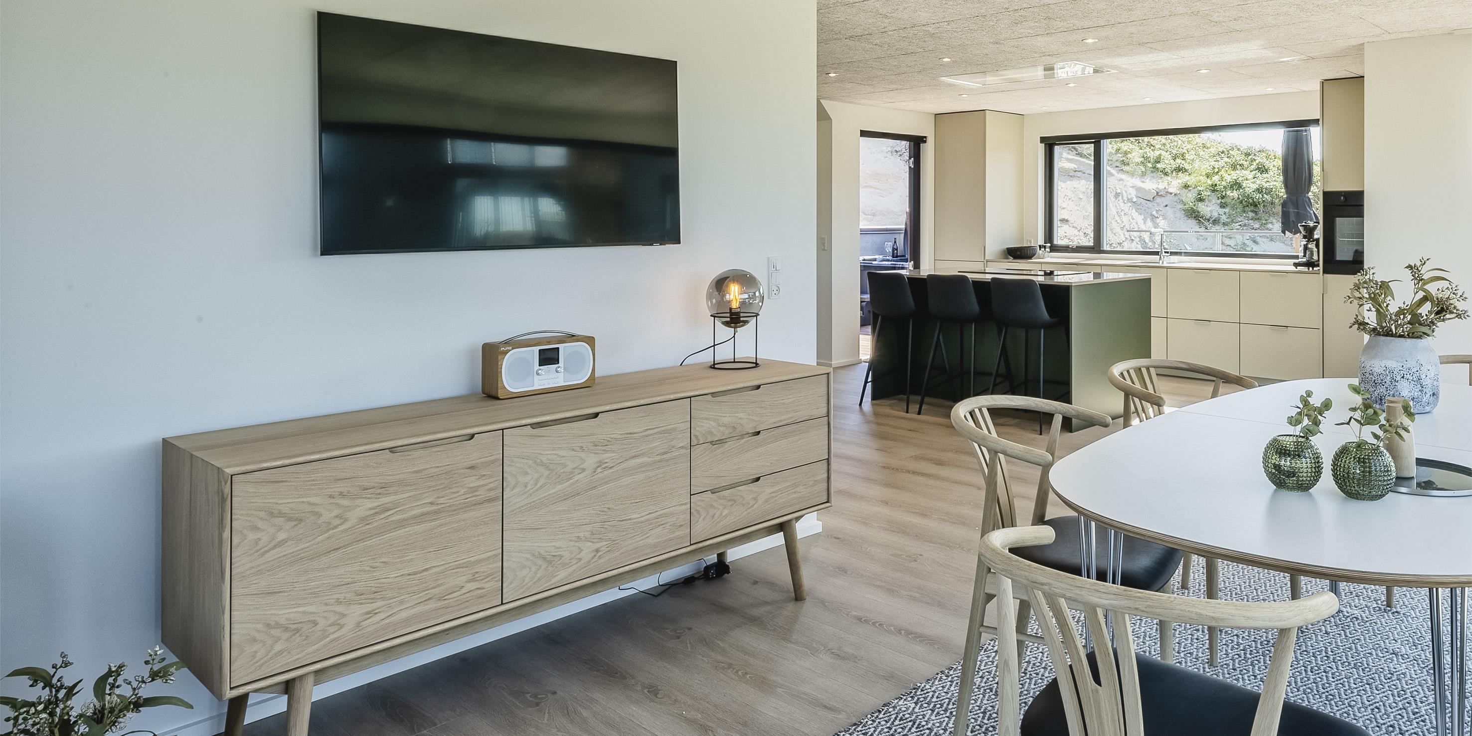 Smart Tv og Google Chrome Cast for modtagelse af danske- og udenlandske kanaler. Trådløs Internetadgang. Huset har en Bio Pejs hvor der kun må bruges Bio Ethanol. En flaske kan købes på kontor, den koster 40,- dkr.. Huset har en gas grill, som må benyttes. Gas til grillen skal selv medbringes, samt skal grillen stilles rengjort tilbage efter brug.